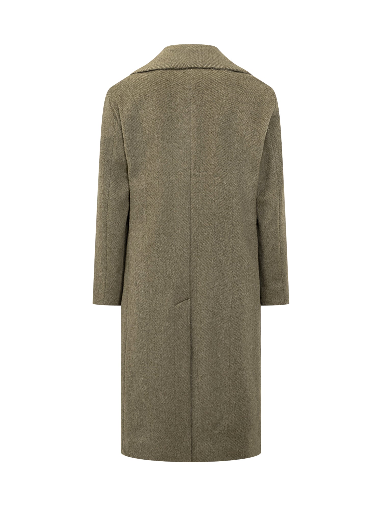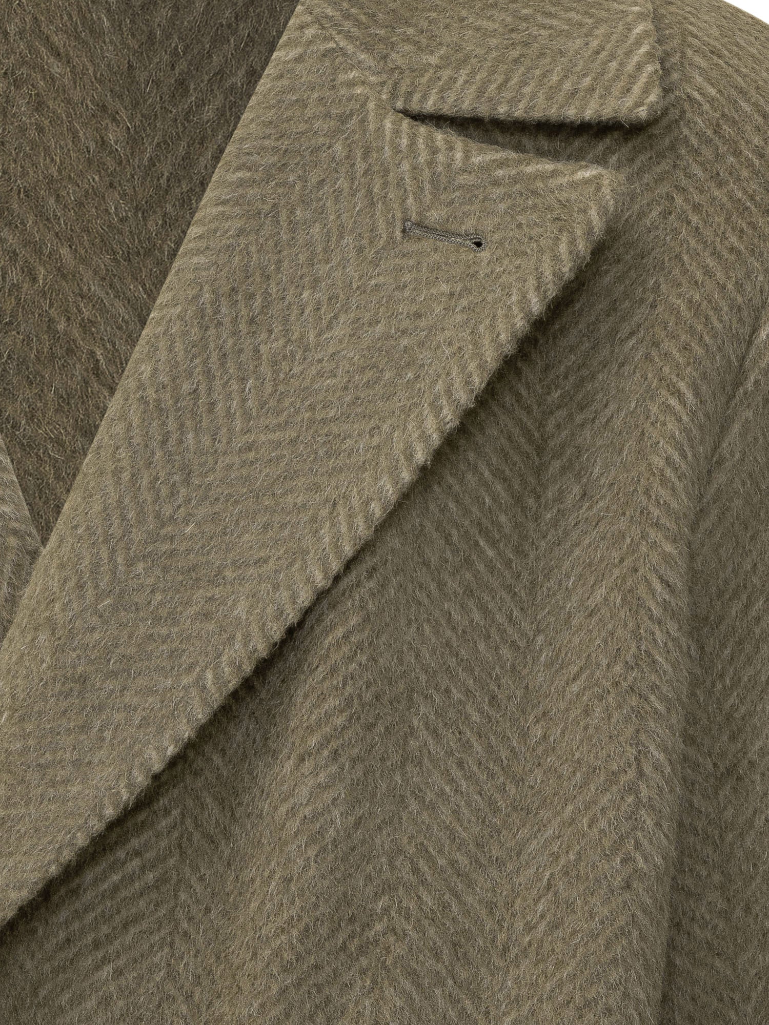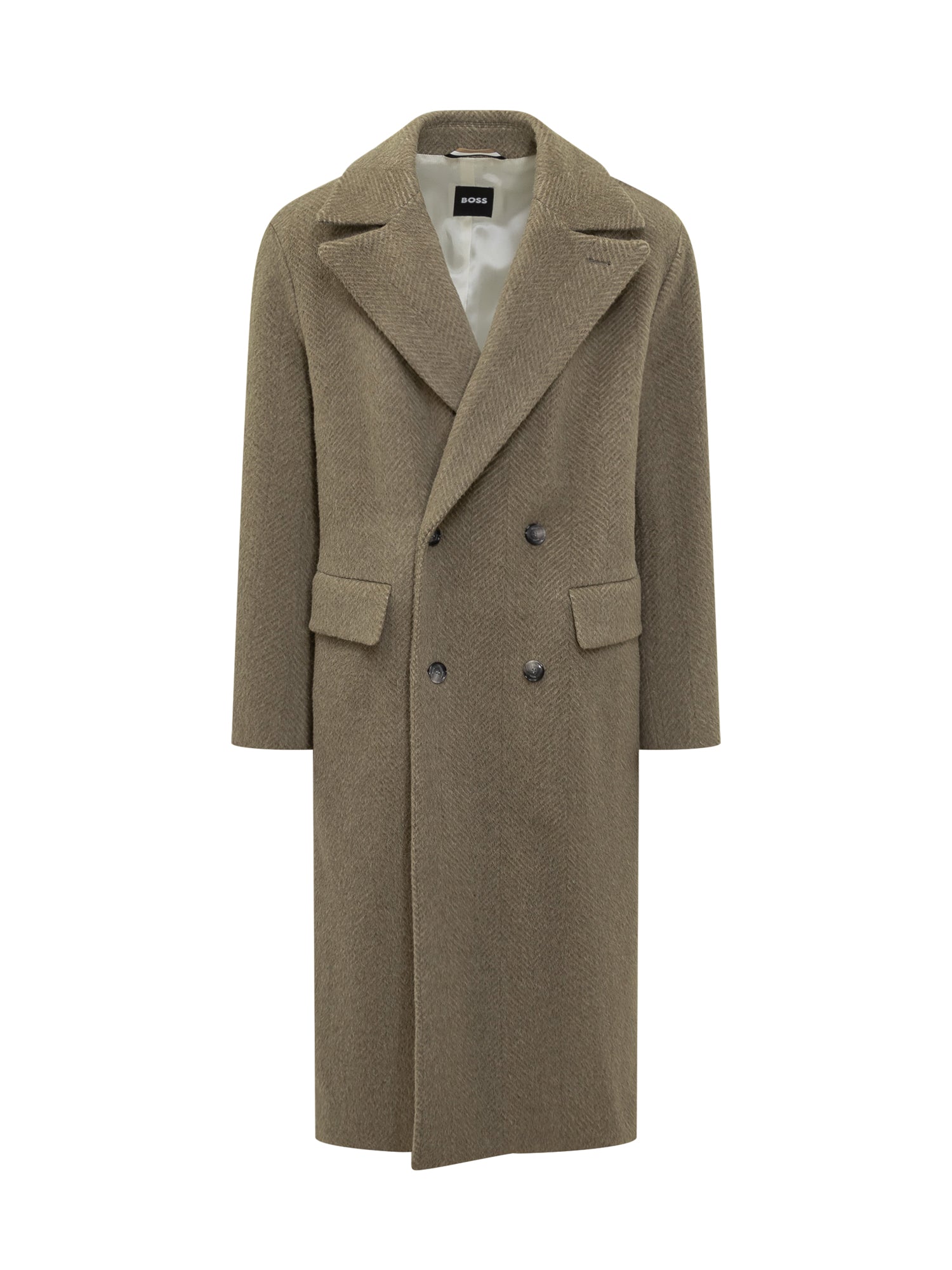 Cappotto Boss in lana con motivo a spina di pesce, design doppiopetto con revers classici e tasche con patta.