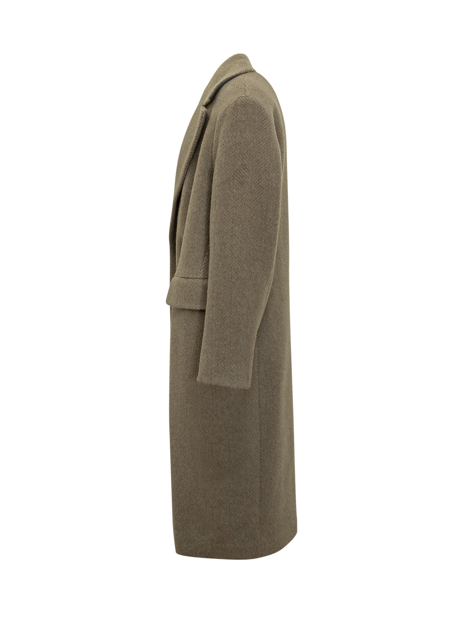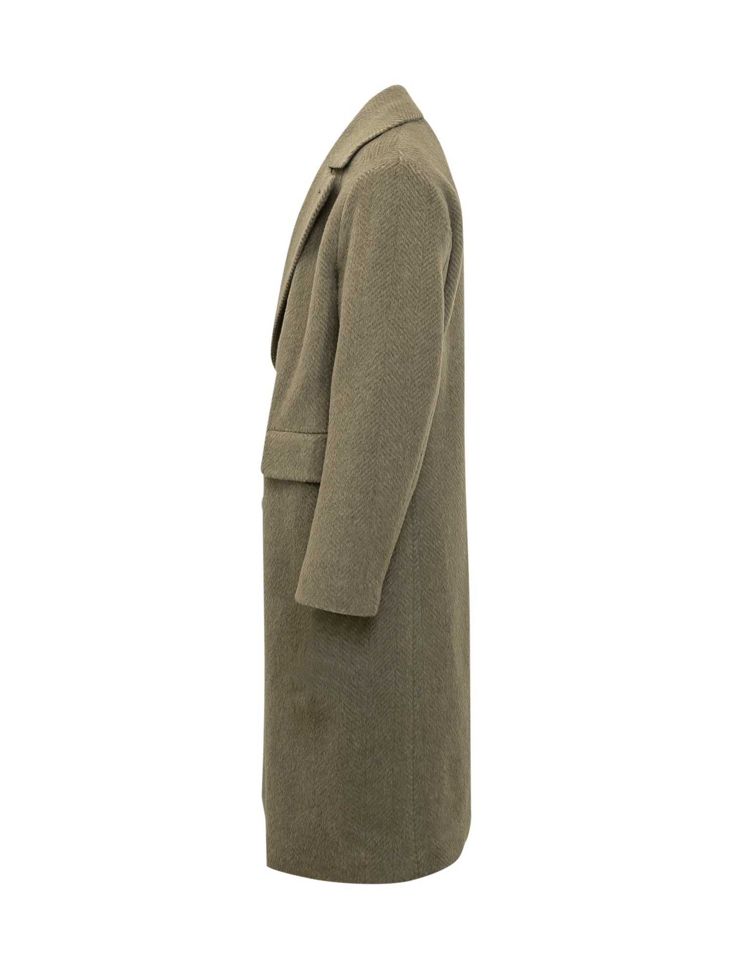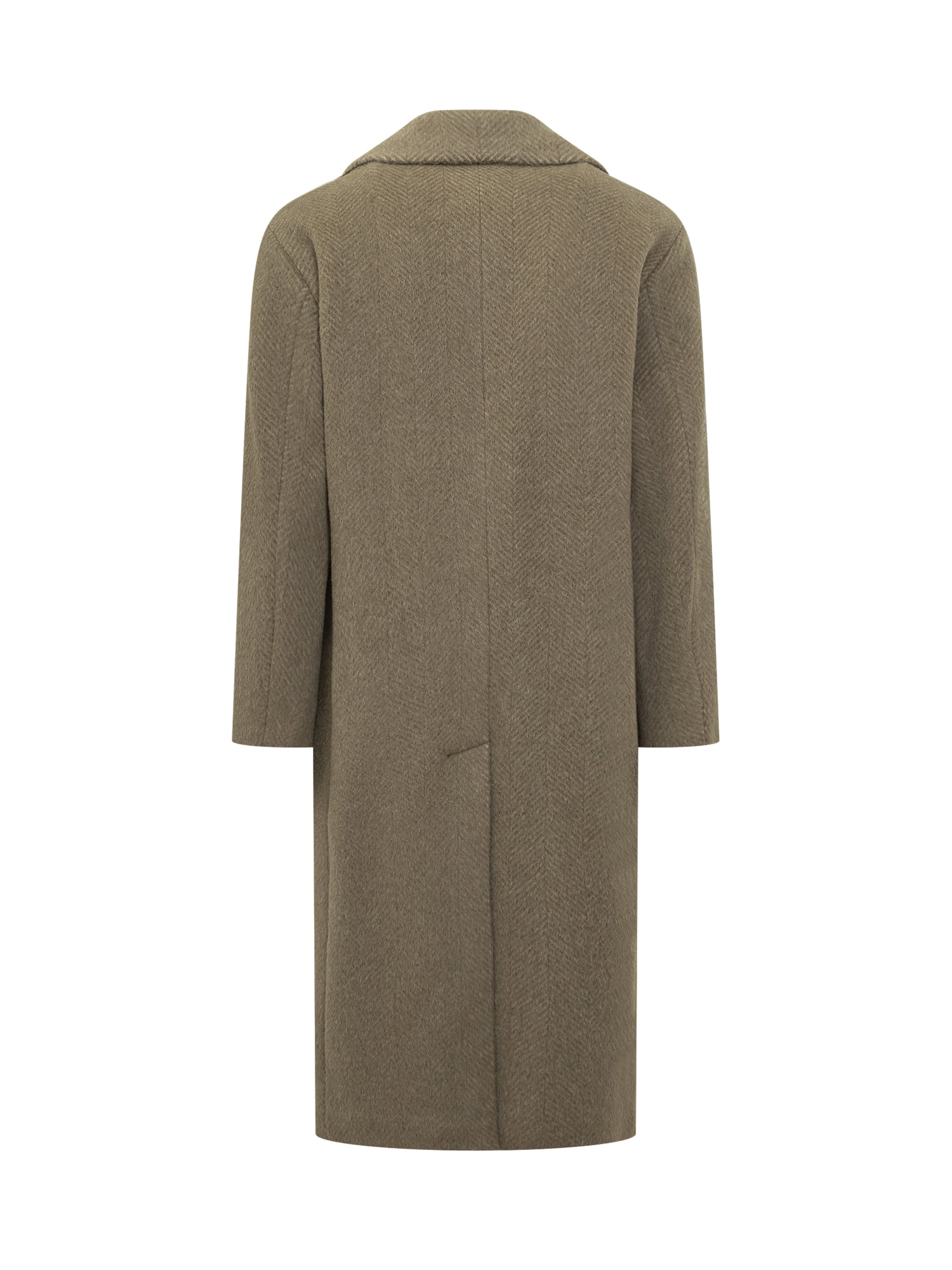 Cappotto Boss in lana con motivo a spina di pesce, design doppiopetto con revers classici e tasche con patta.