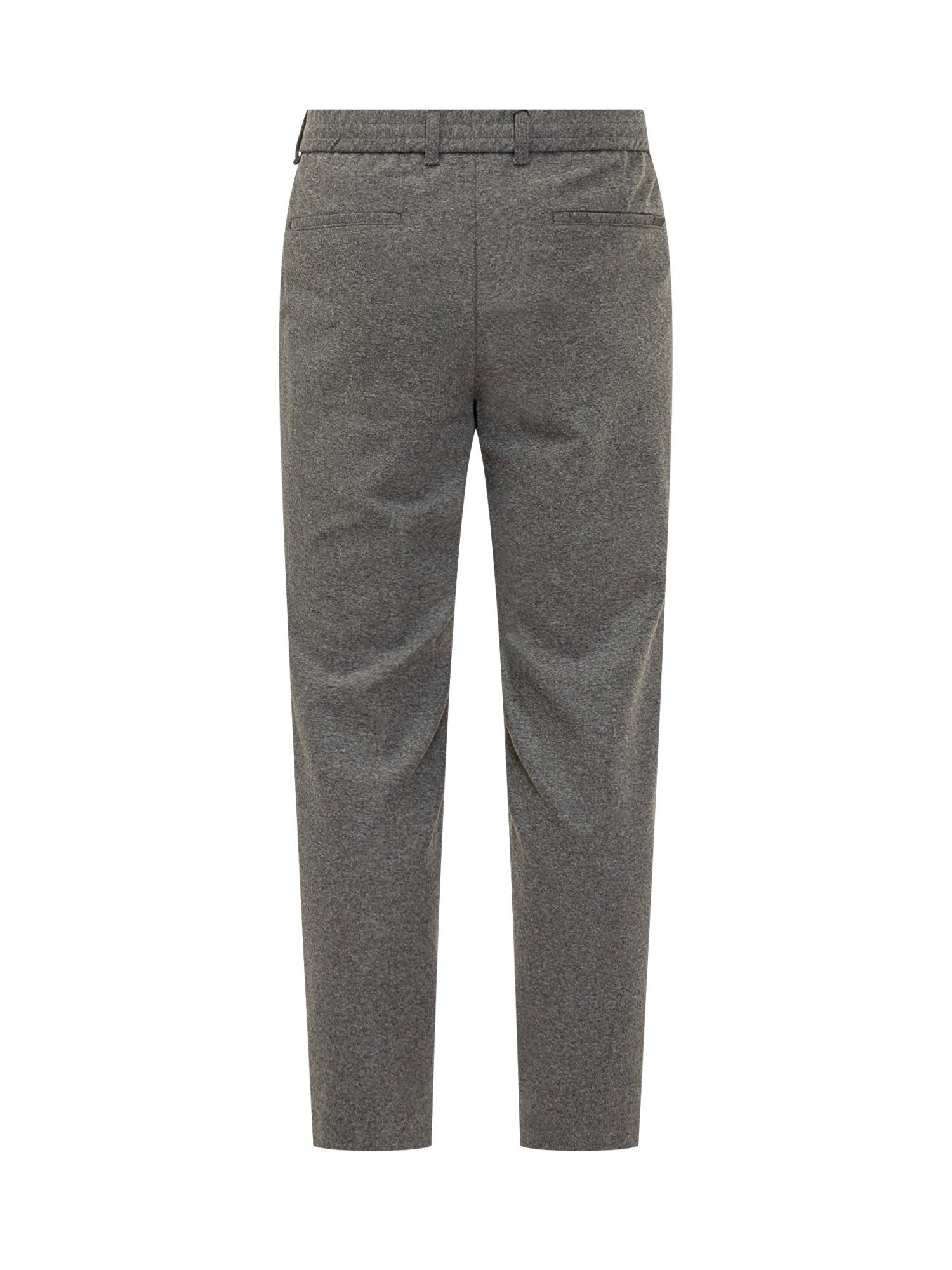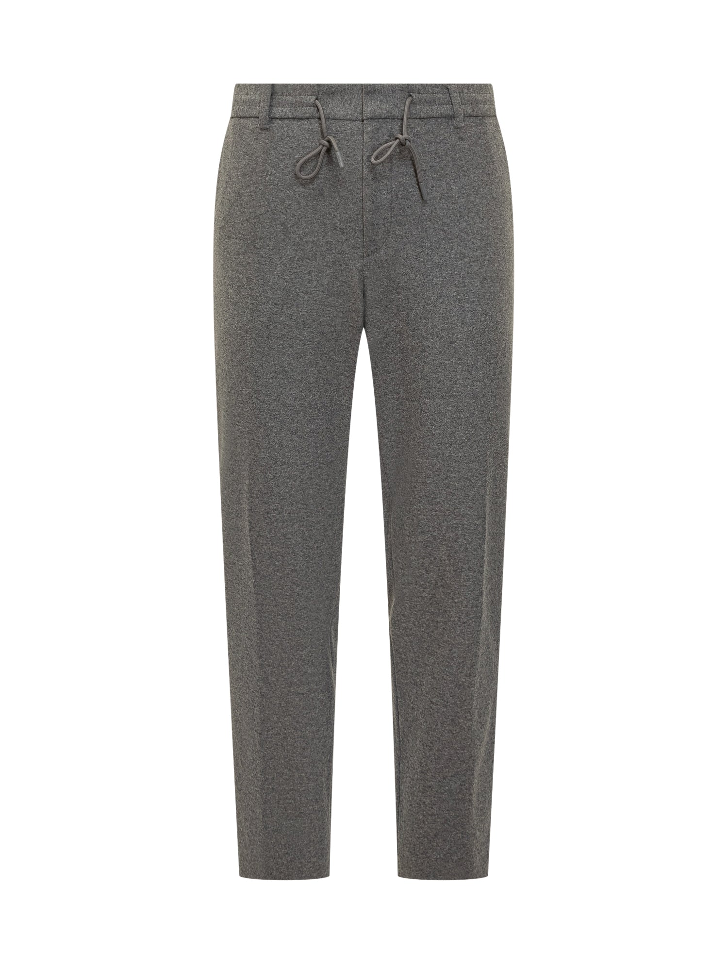 Pantaloni Boss in tessuto grigio con coulisse regolabile, chiusura a zip e bottone.
