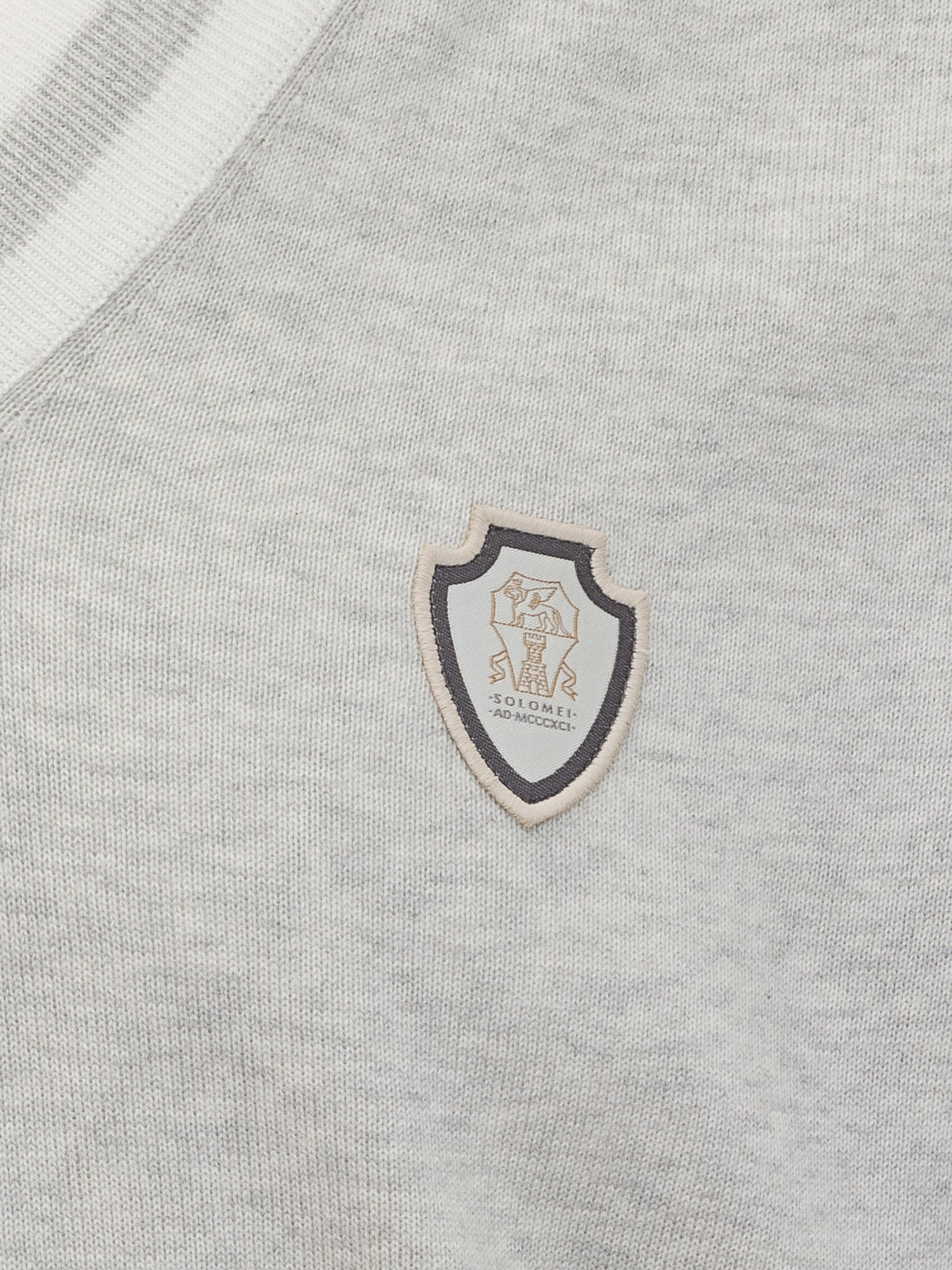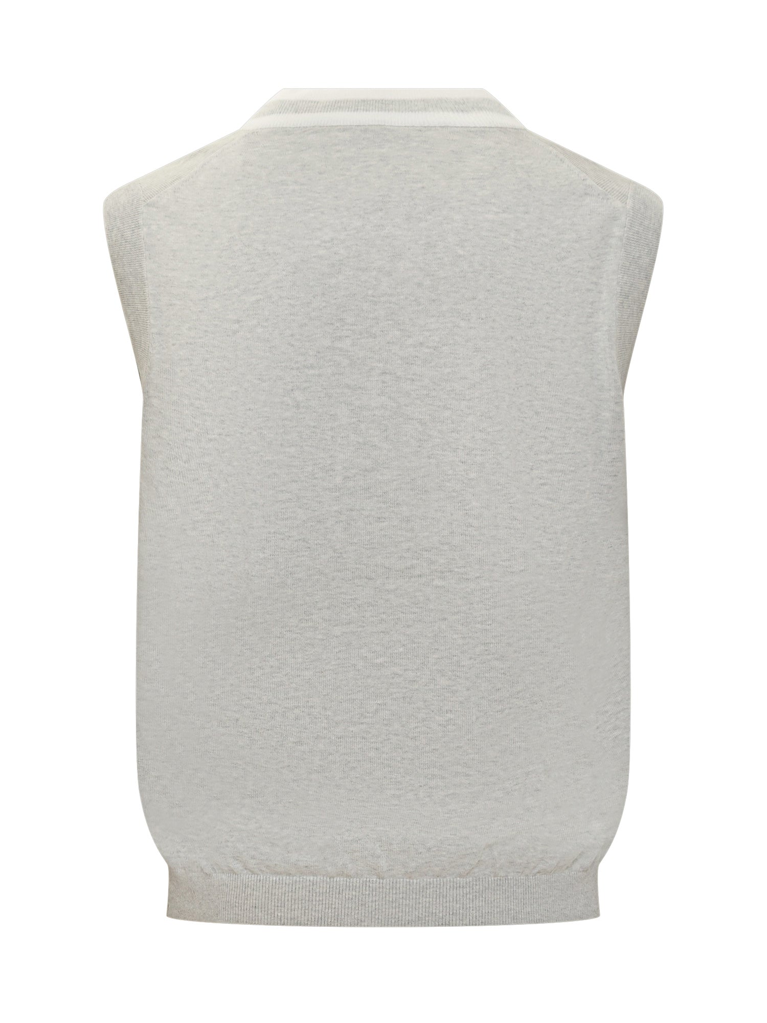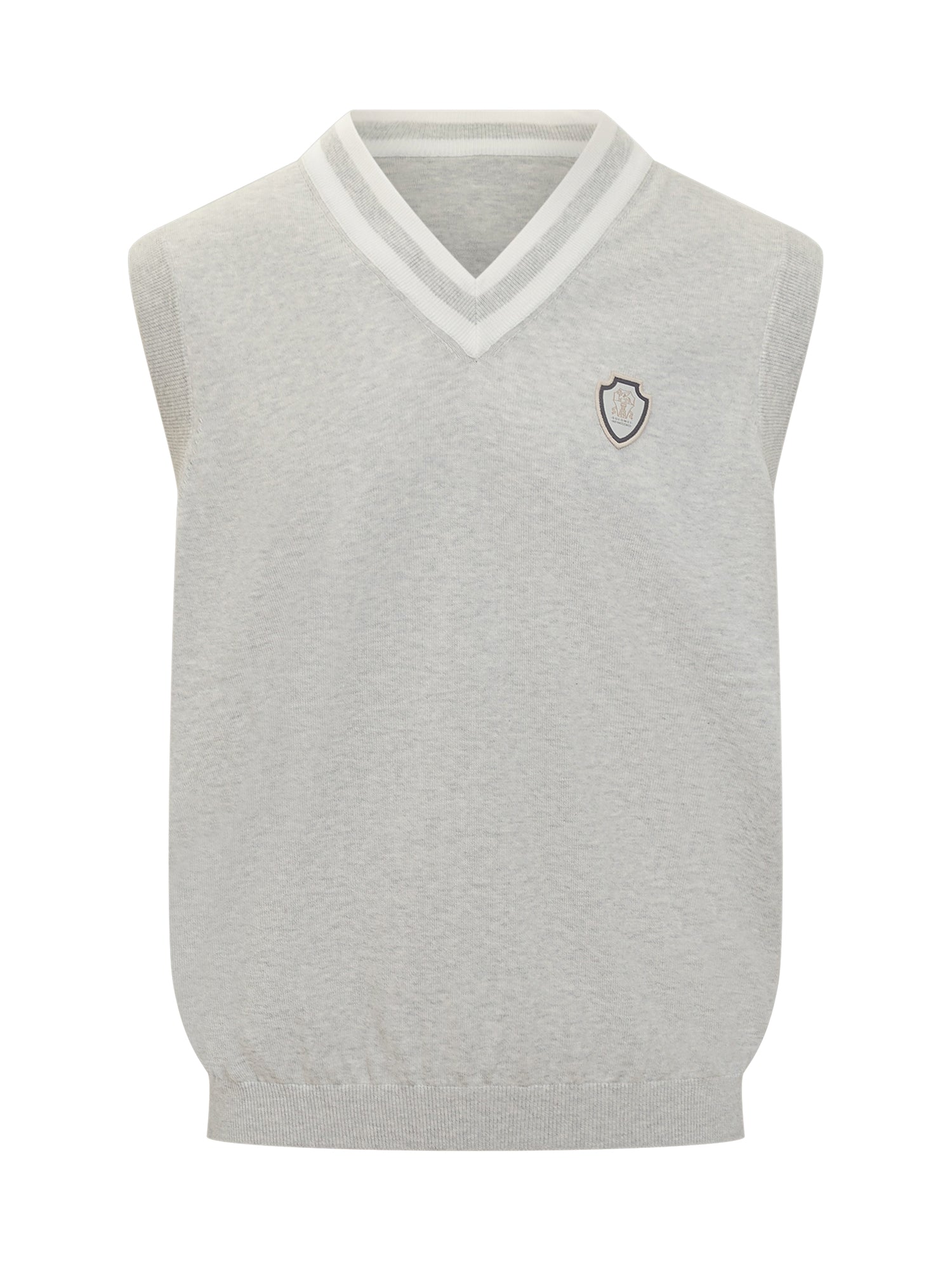 Gilet Brunello Cucinelli in cotone pregiato. Design elegante con scollo a V a costine e logo ricamato sul petto.
