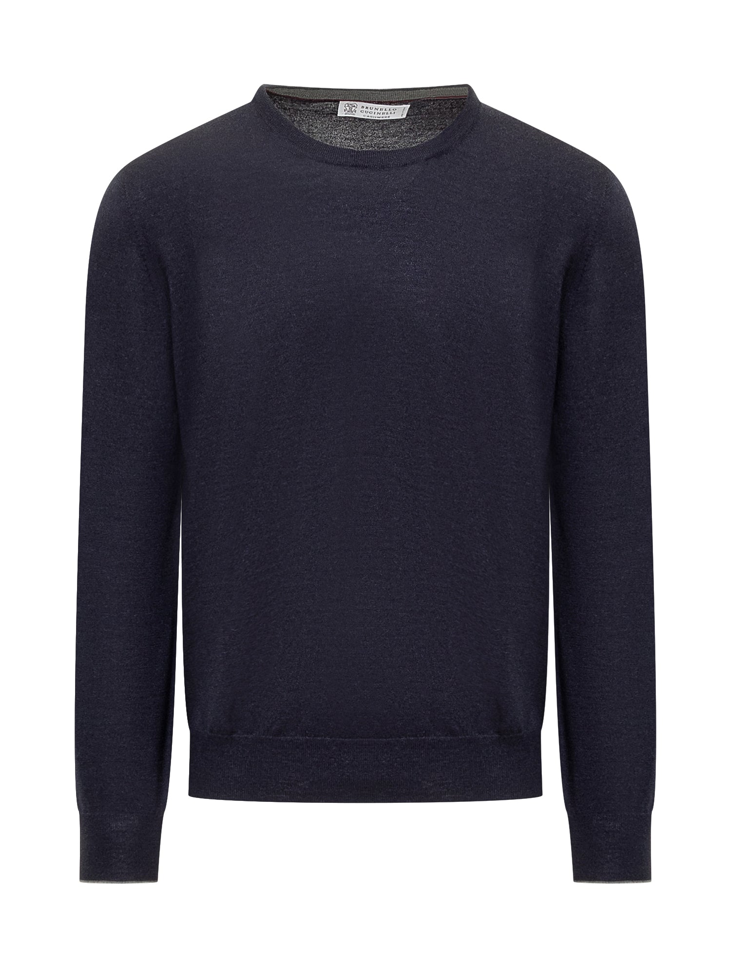 Maglia a maniche lunghe in lana vergine misto cashmere. Girocollo. Orli a costine.