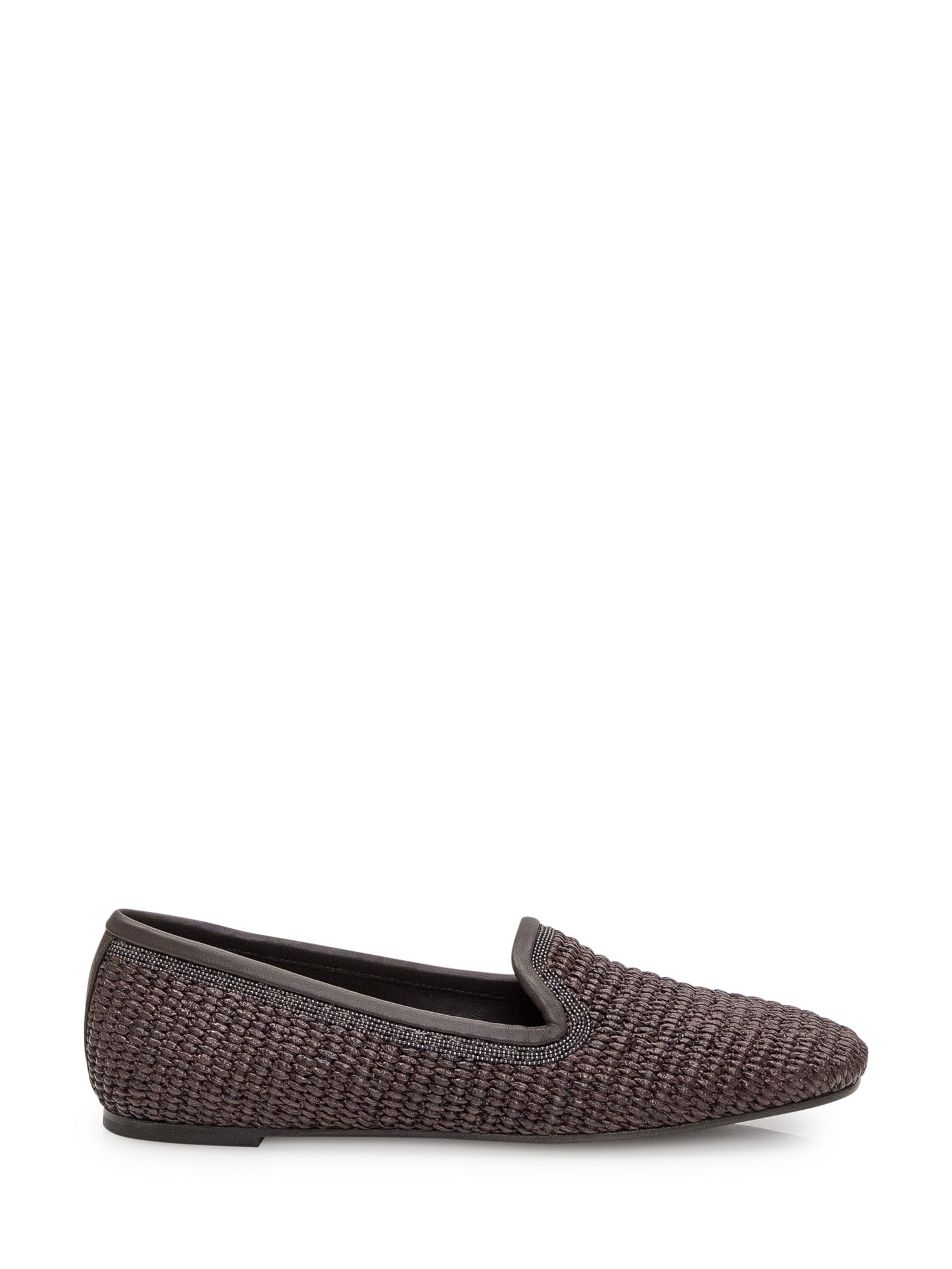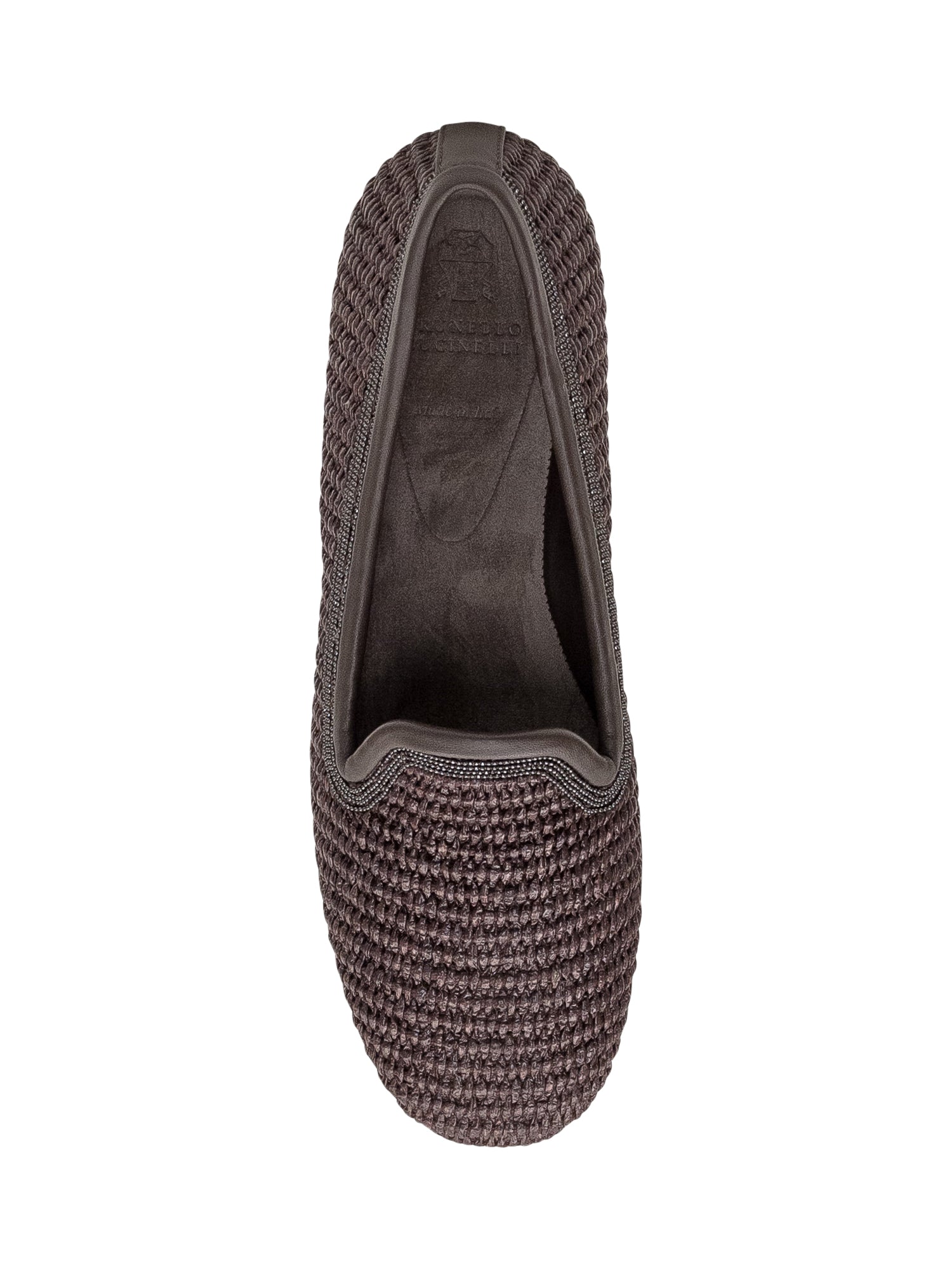 Mocassino in pelle marrone intrecciata. Tomaia in pelle. Suola in pelle.