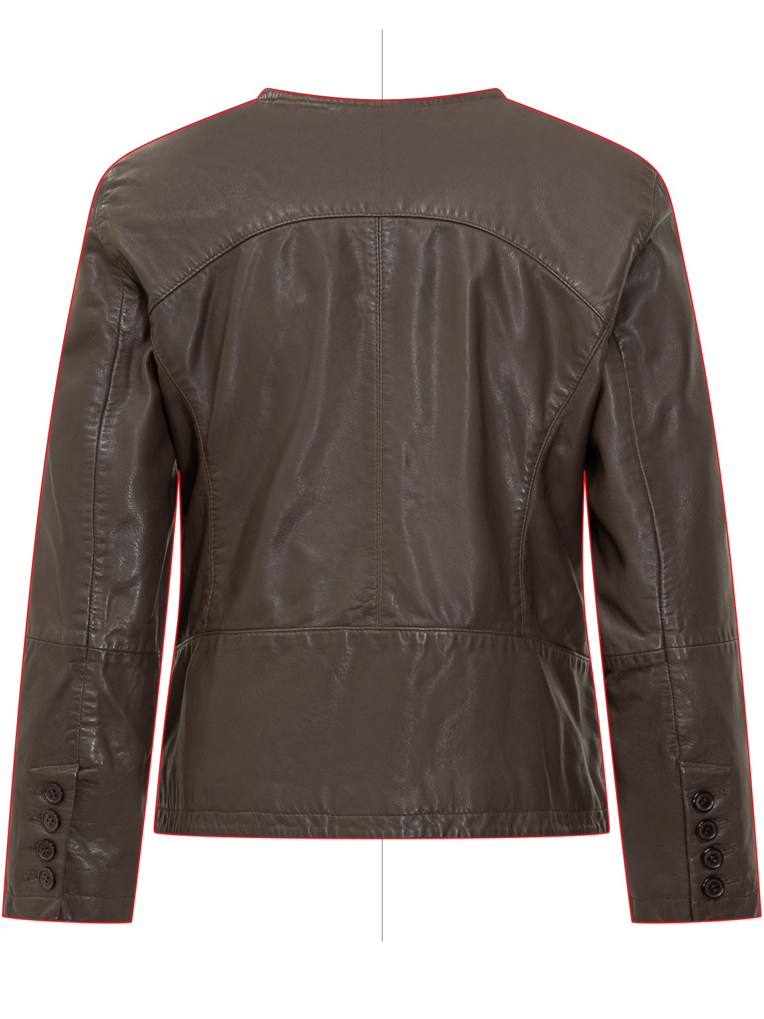 Giacca Bully in pelle marrone con chiusura a bottoni e taglio sartoriale.