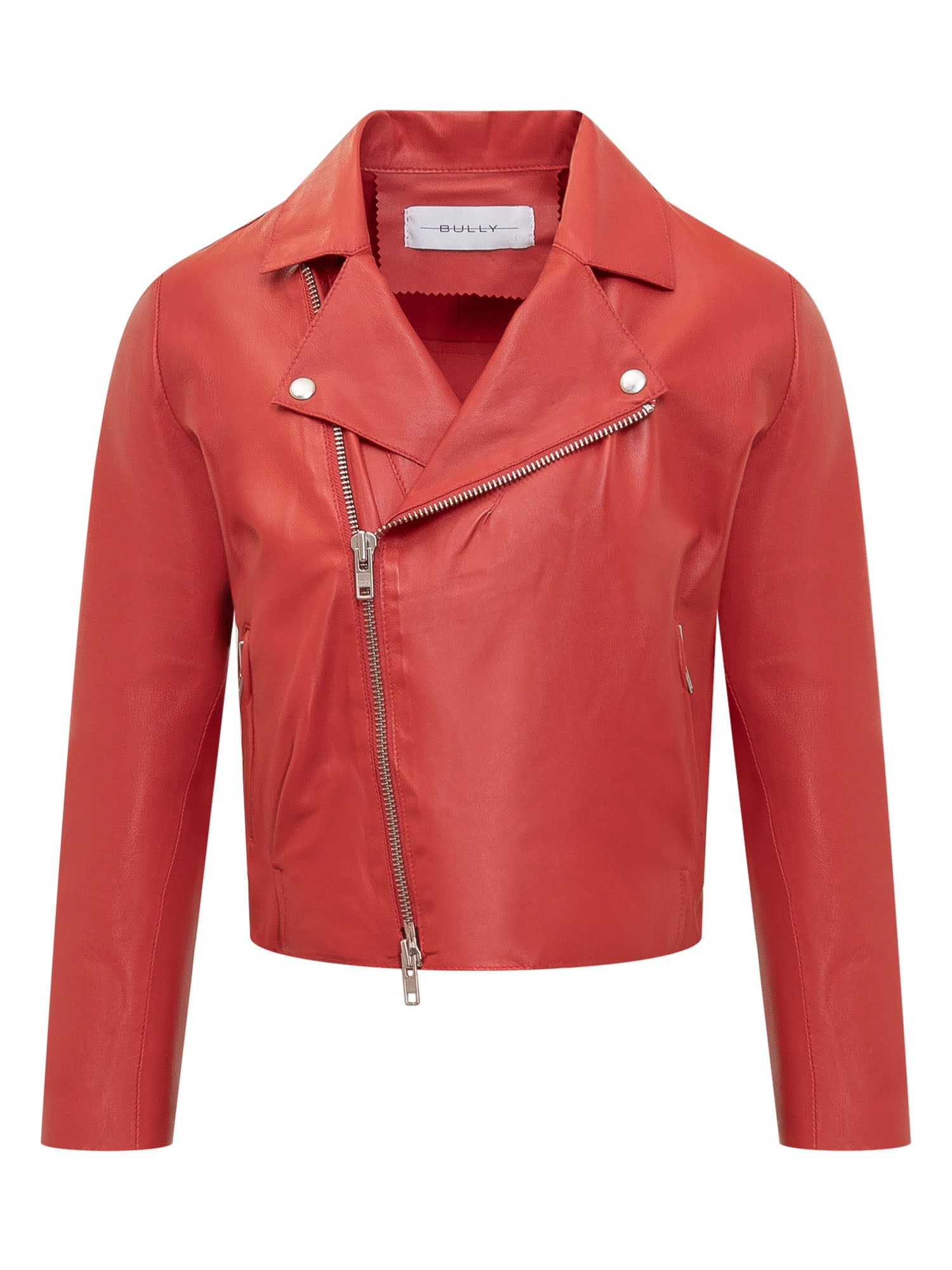 Giacca a maniche lunghe in pelle. Collo con revers e scollo a V. Chiusura con zip asimmetrica. Due tasche.
