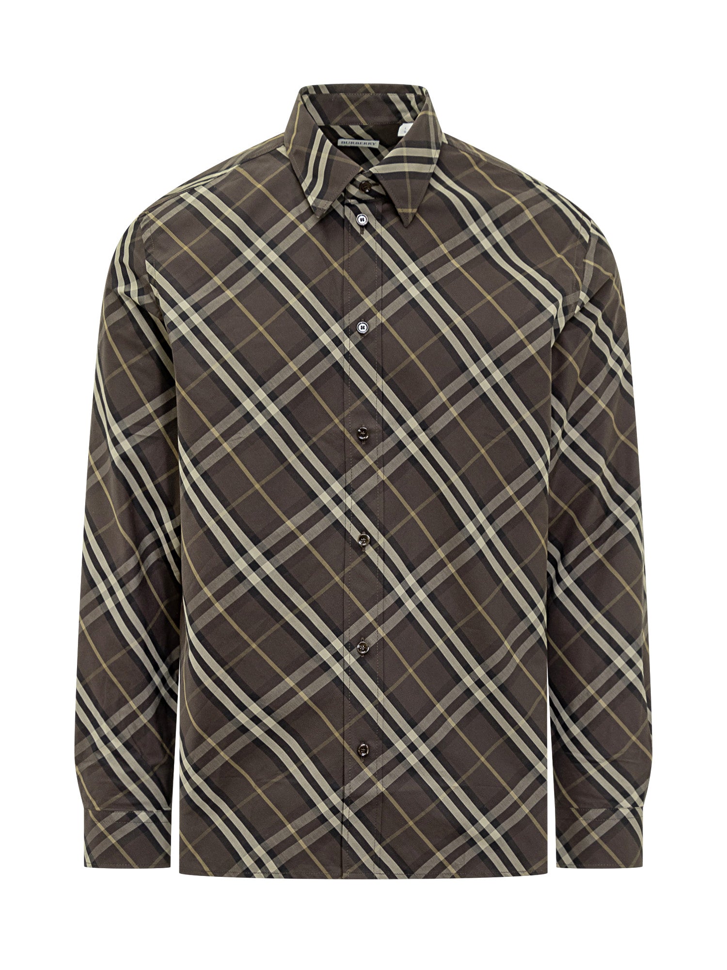 Camicia Burberry in puro cotone con iconica fantasia a quadri nelle tonalità scure.