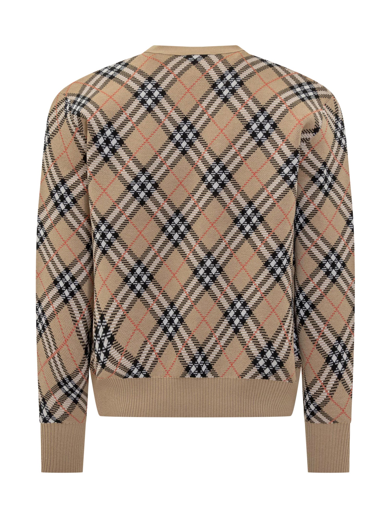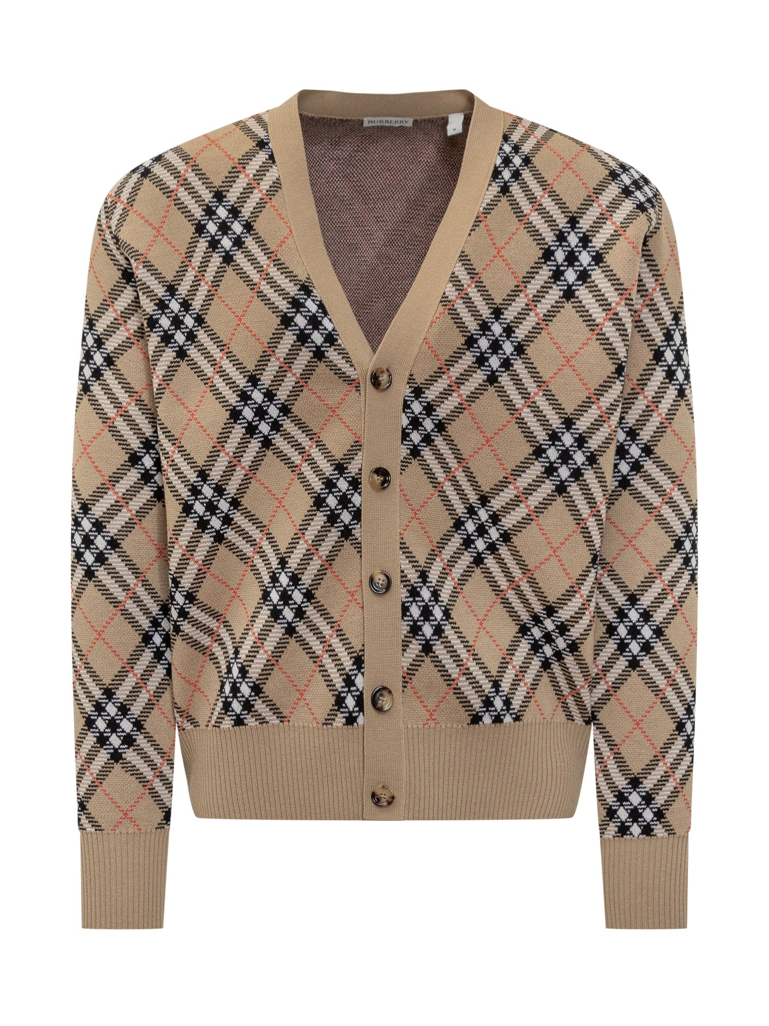 Cardigan Burberry in maglia con iconico motivo tartan. Chiusura frontale con bottoni, scollo a V.