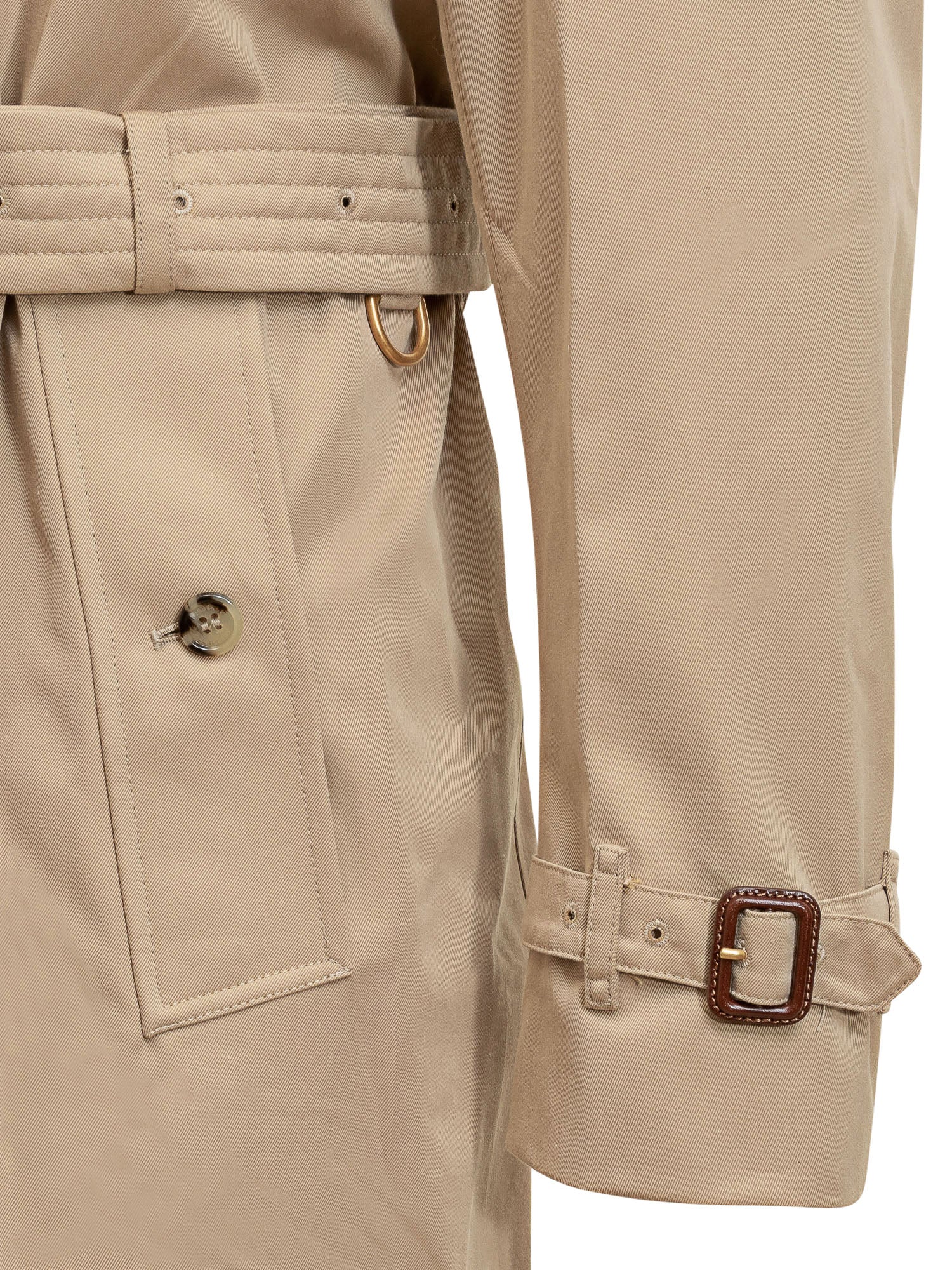AutomaticoTrench in cotone. Colletto classico. Chiusura doppiopetto con bottoni e cintura. Cinturini regolabili sui polsi. Due tasche con bottone sul davanti. Spacco sul retro.