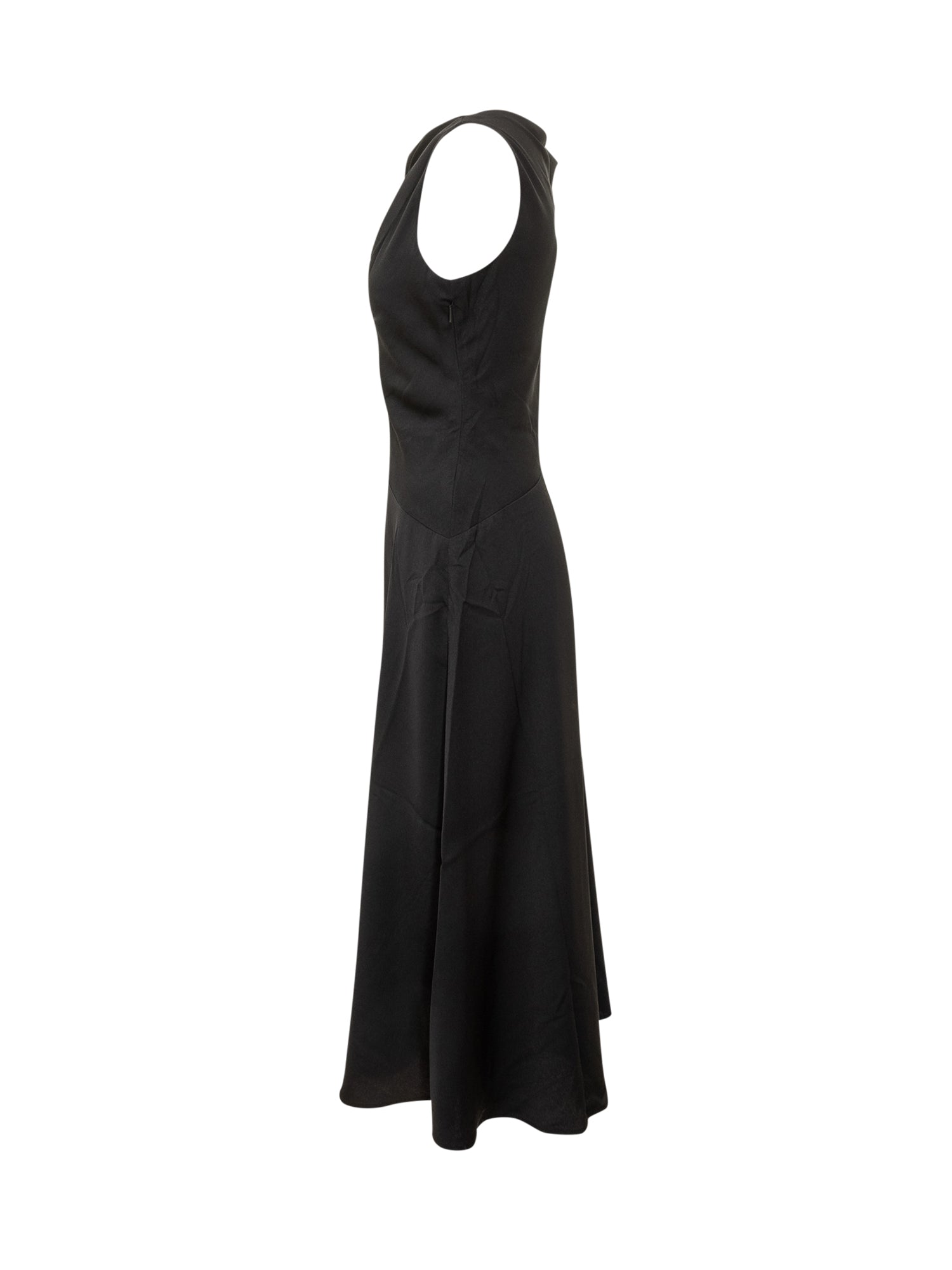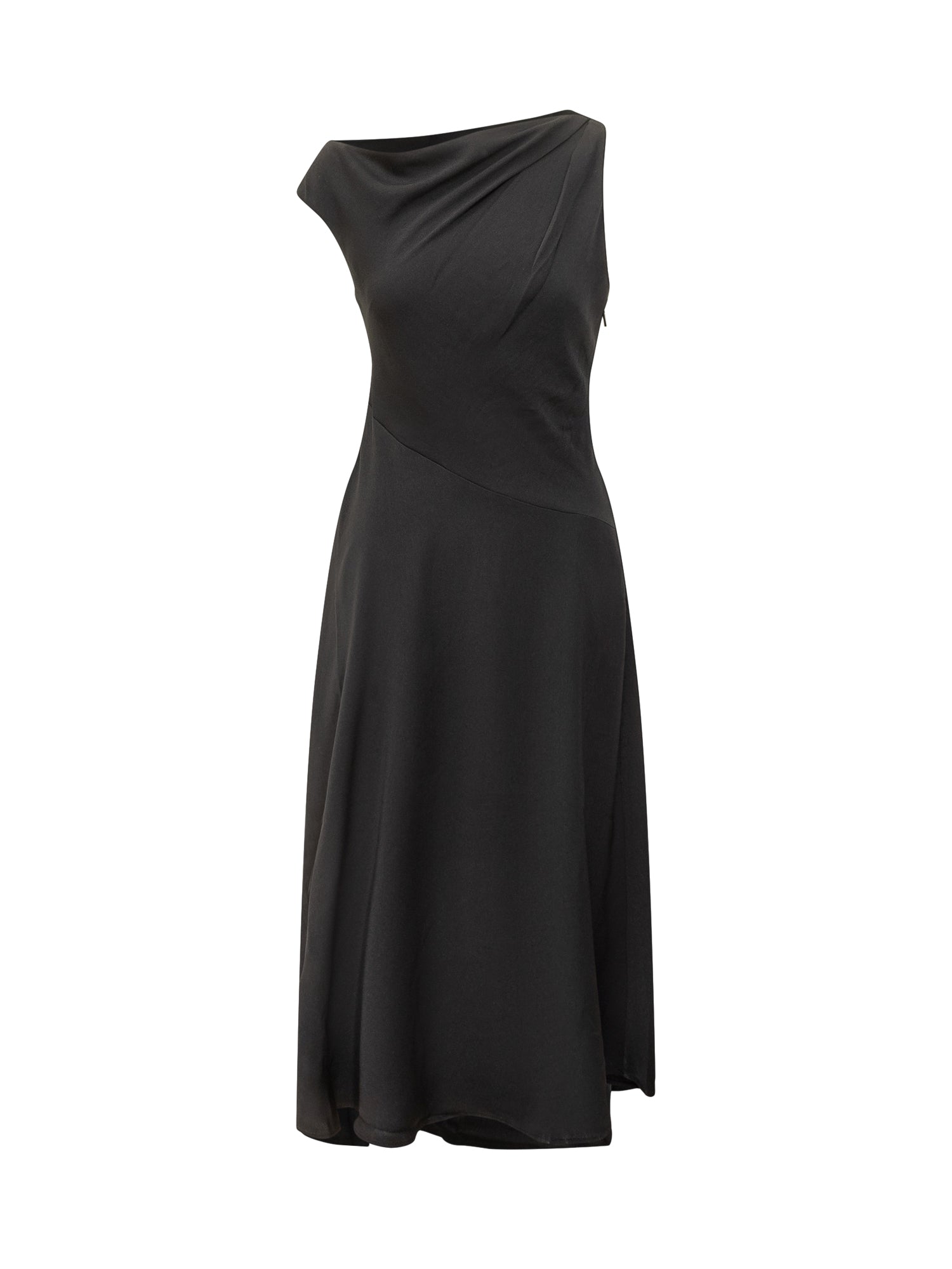 Abito Calvin Klein nero elegante monospalla, con drappeggio sul busto e linea svasata.