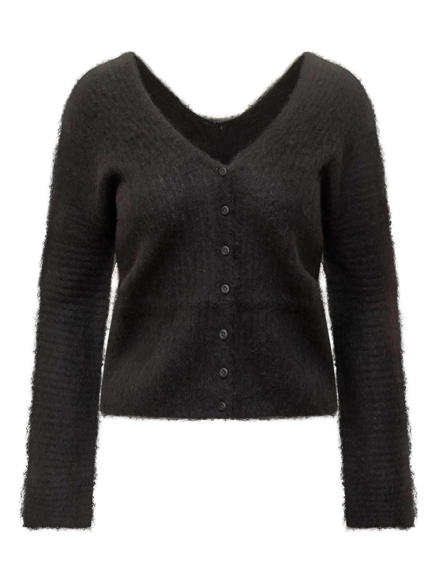 Cardigan Calvin Klein nero con scollo a V e chiusura a bottoni.