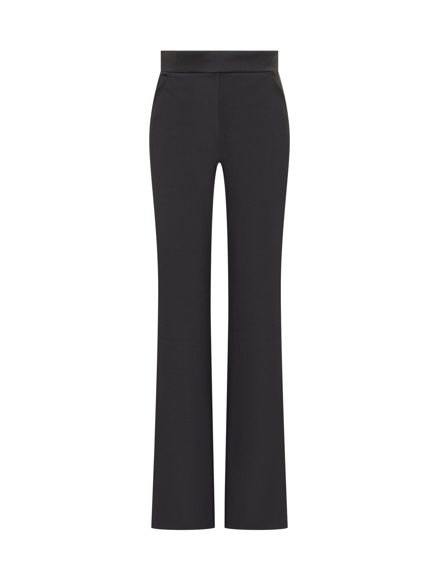 Pantaloni Venusette Chiara Boni in jersey stretch nero. Modello a vita alta con gamba svasata e linea essenziale.