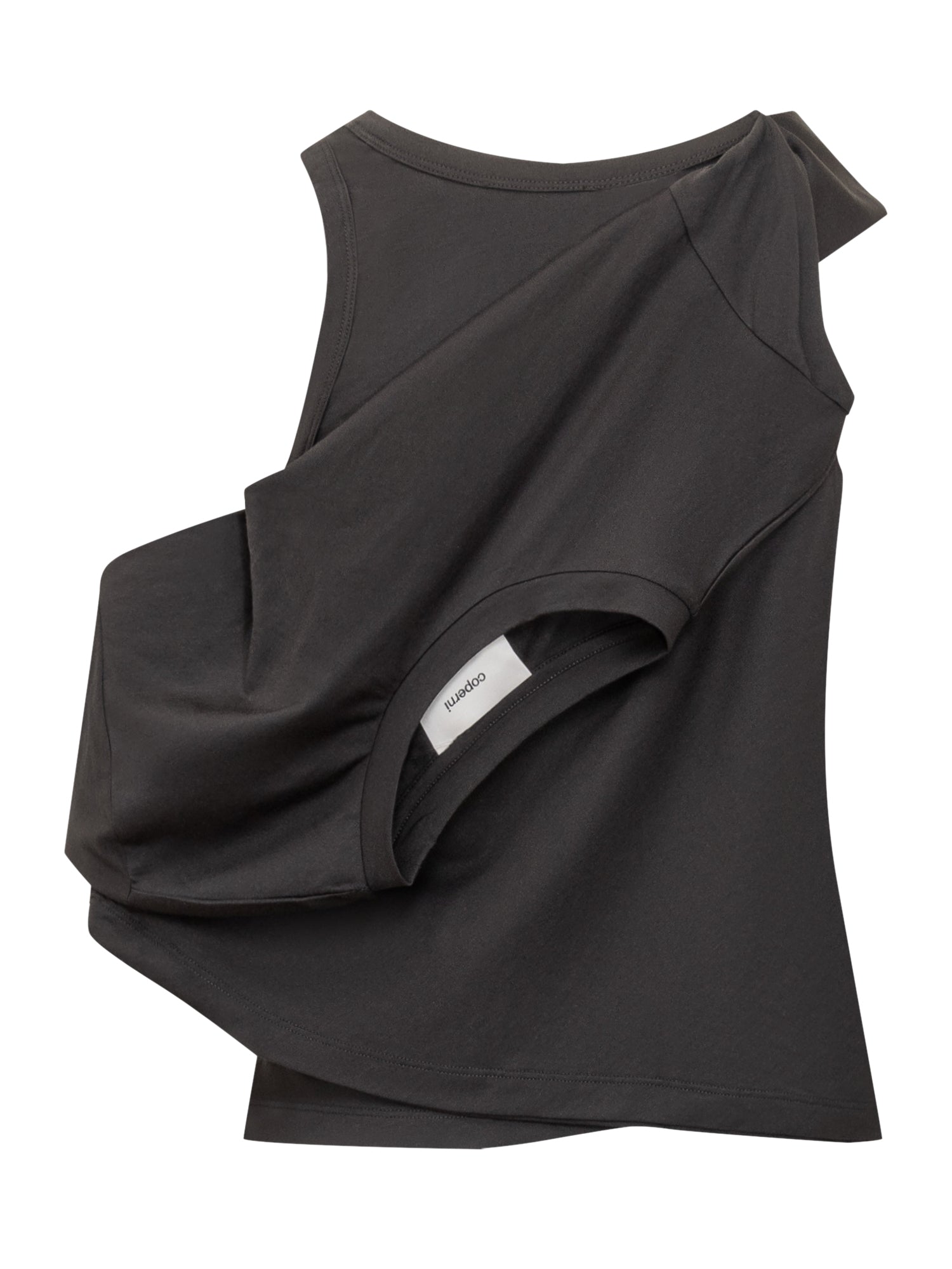 Top in jersey di cotone firmato Coperni, con dettaglio annodato sulla spalla per un look asimmetrico e contemporaneo.