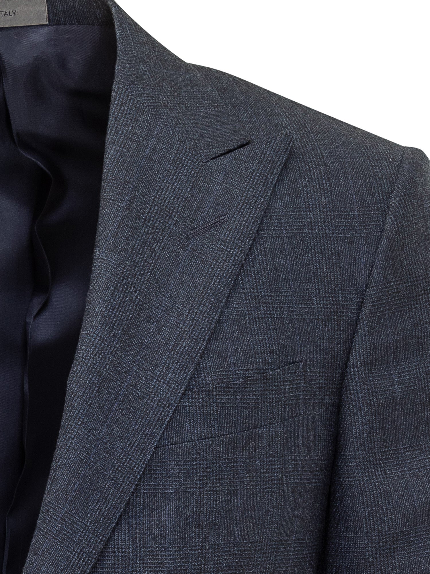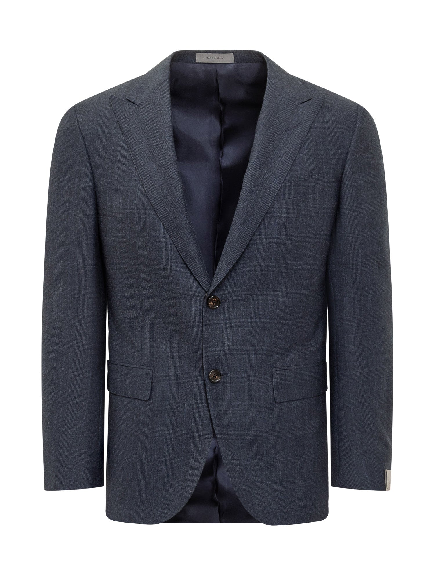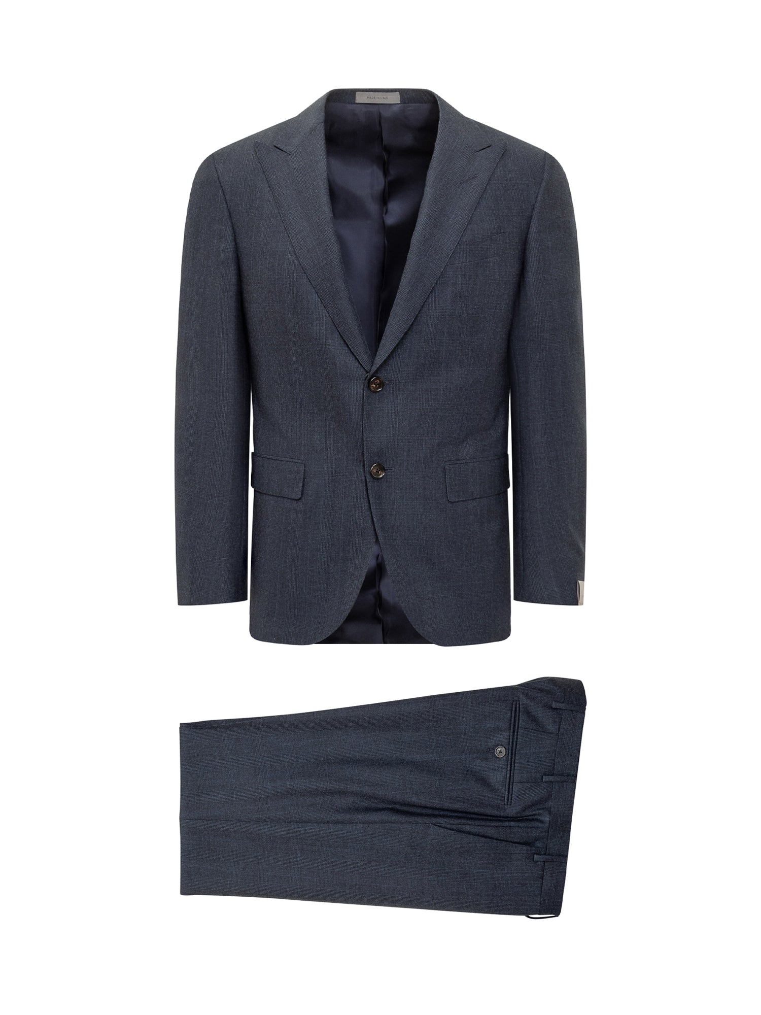 Abito Corneliani in pura lana blu con giacca a due bottoni e pantaloni coordinati.