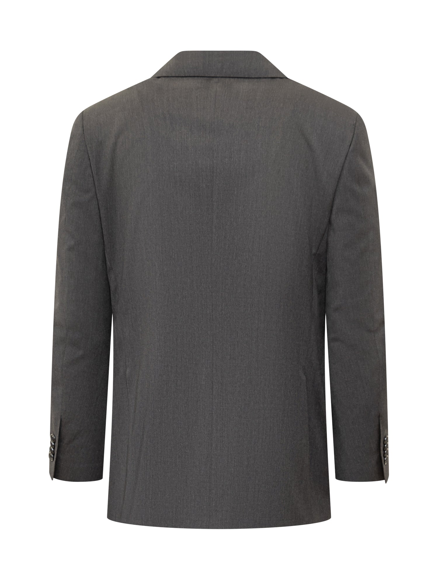Abito con giacca monopetto. Chiusura con bottoni. Due tasche laterali e una sul petto. Bottoni sui polsi. Pantaloni quattro tasche. Passanti per cintura.