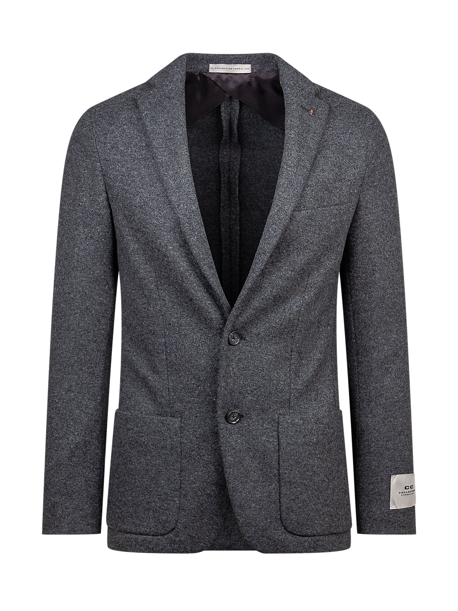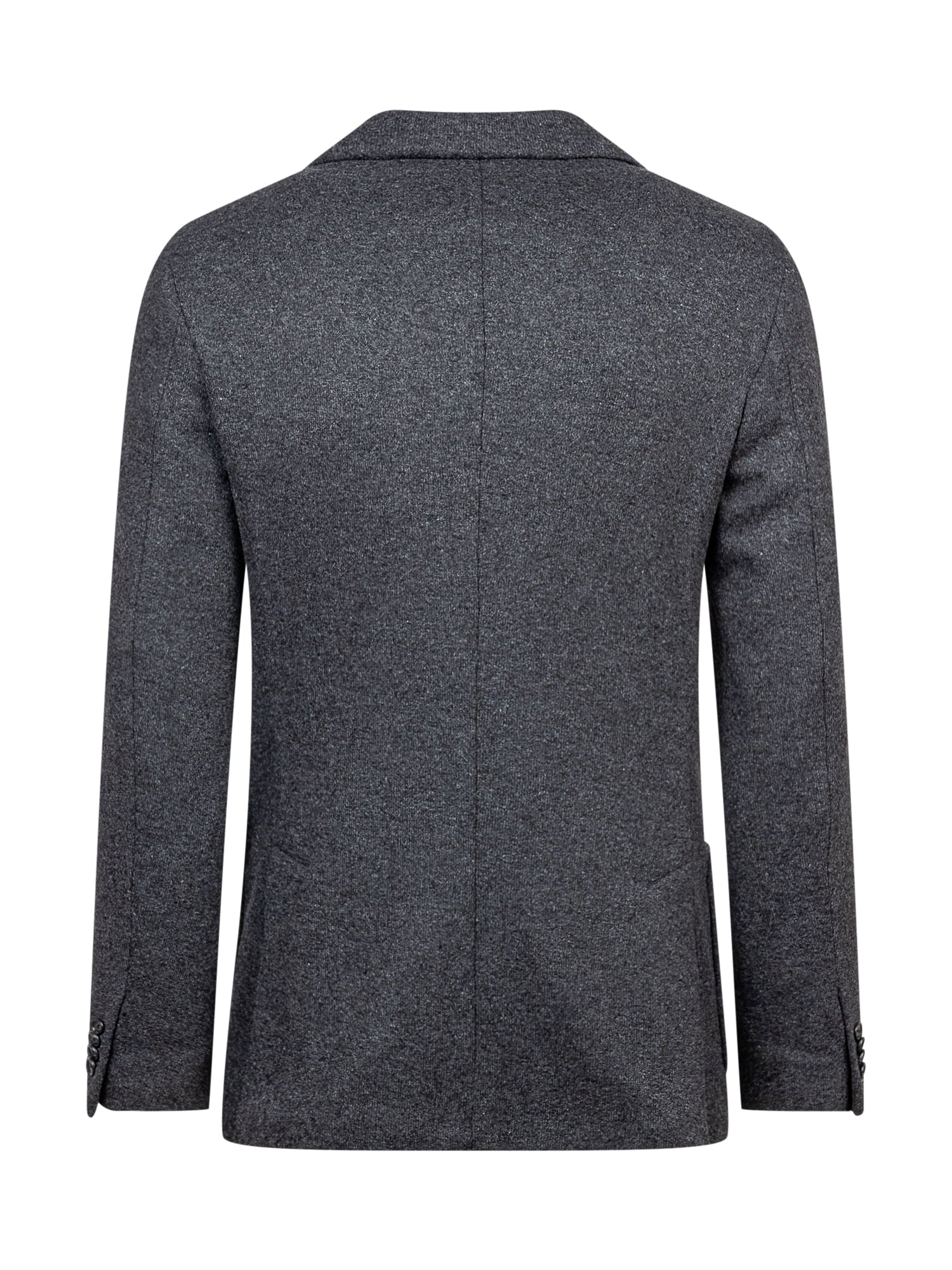 Blazer con scollo a V e revers. Chiusura con bottoni. Polsi con bottoni. Tre tasche.