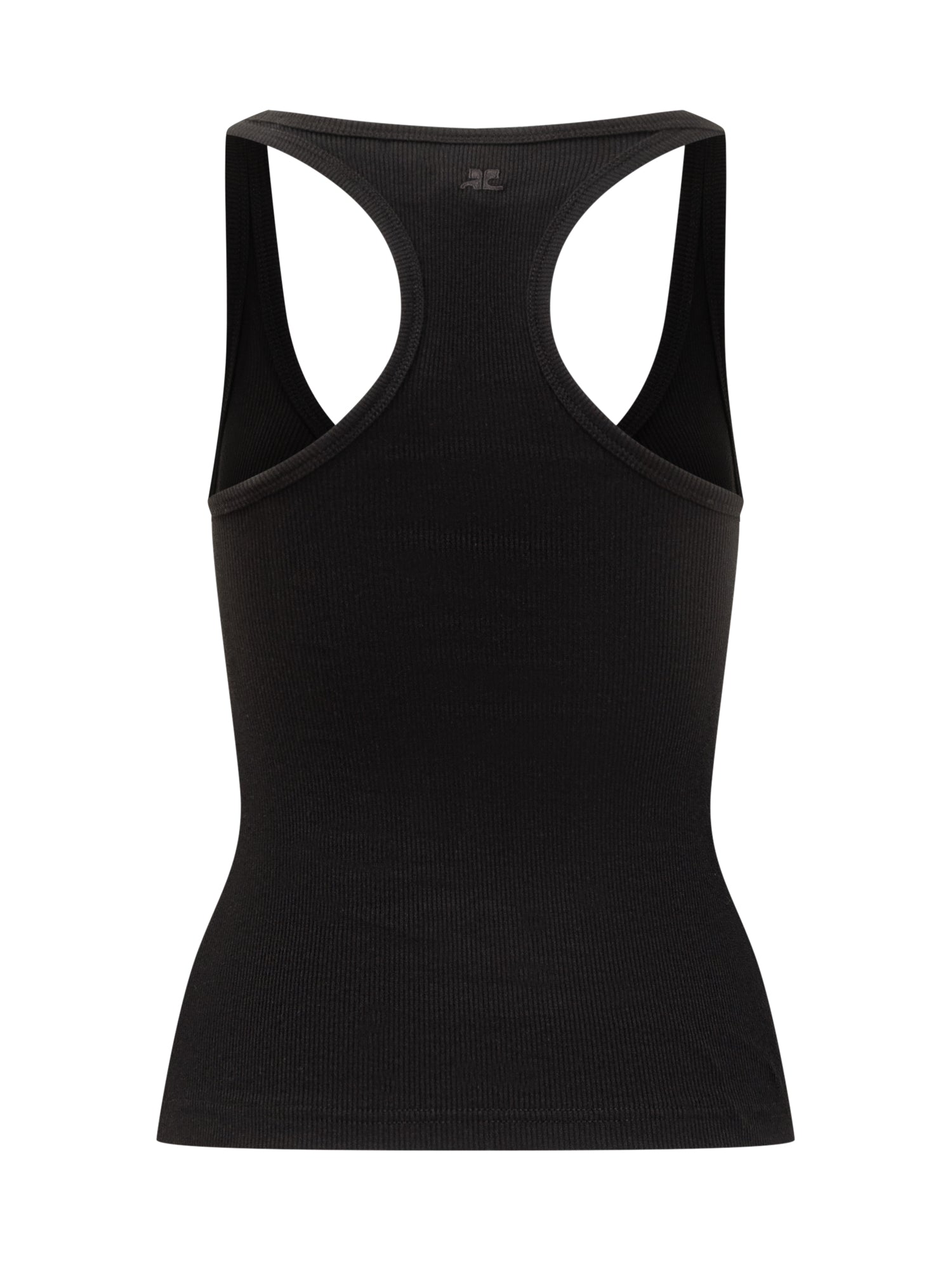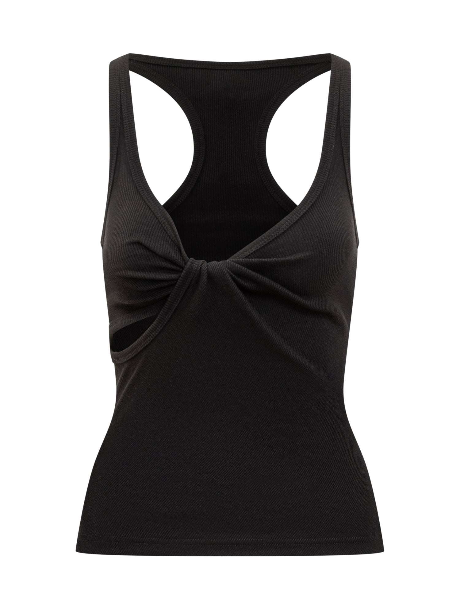 Top nero in cotone. Smanicato. Scollo ampio. Dettaglio twist.