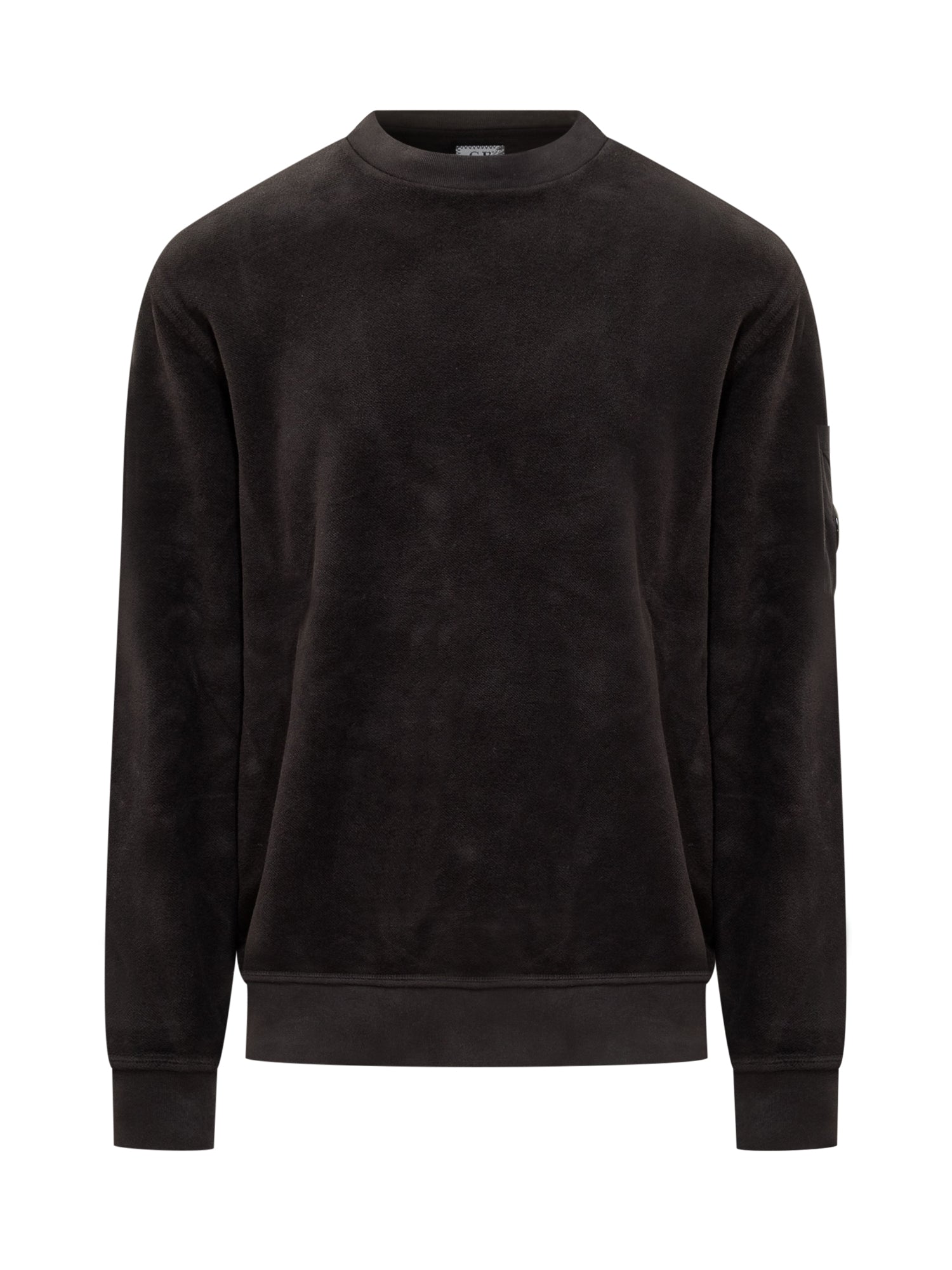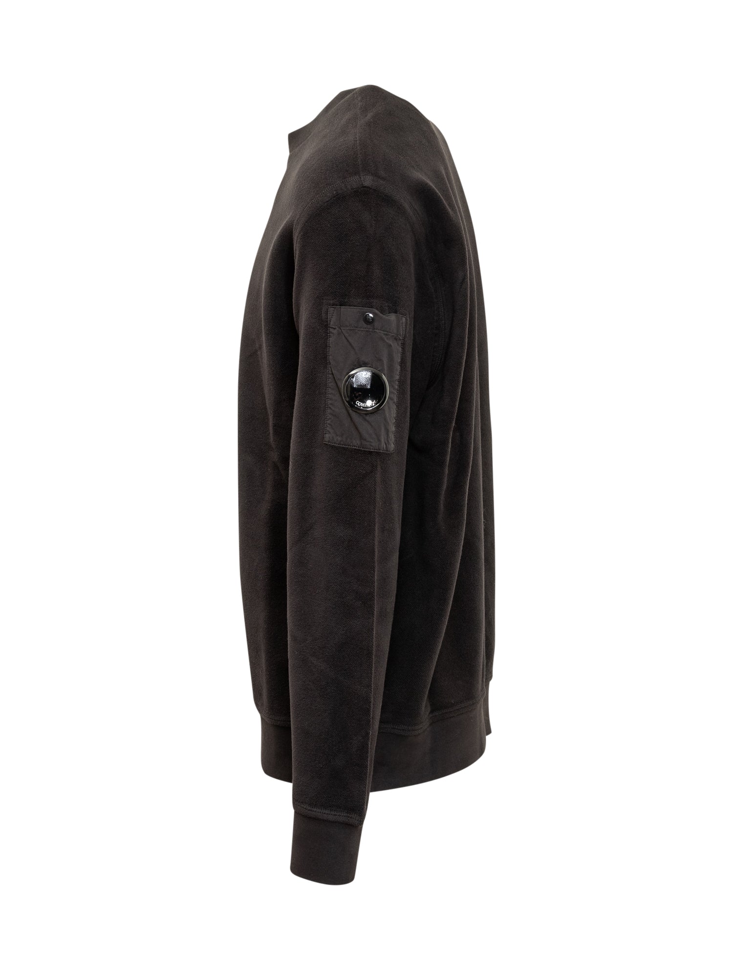Felpa C.P. Company in cotone nero con design essenziale a girocollo. Dettaglio distintivo del brand sulla manica e fit confortevole per un look casual e moderno.