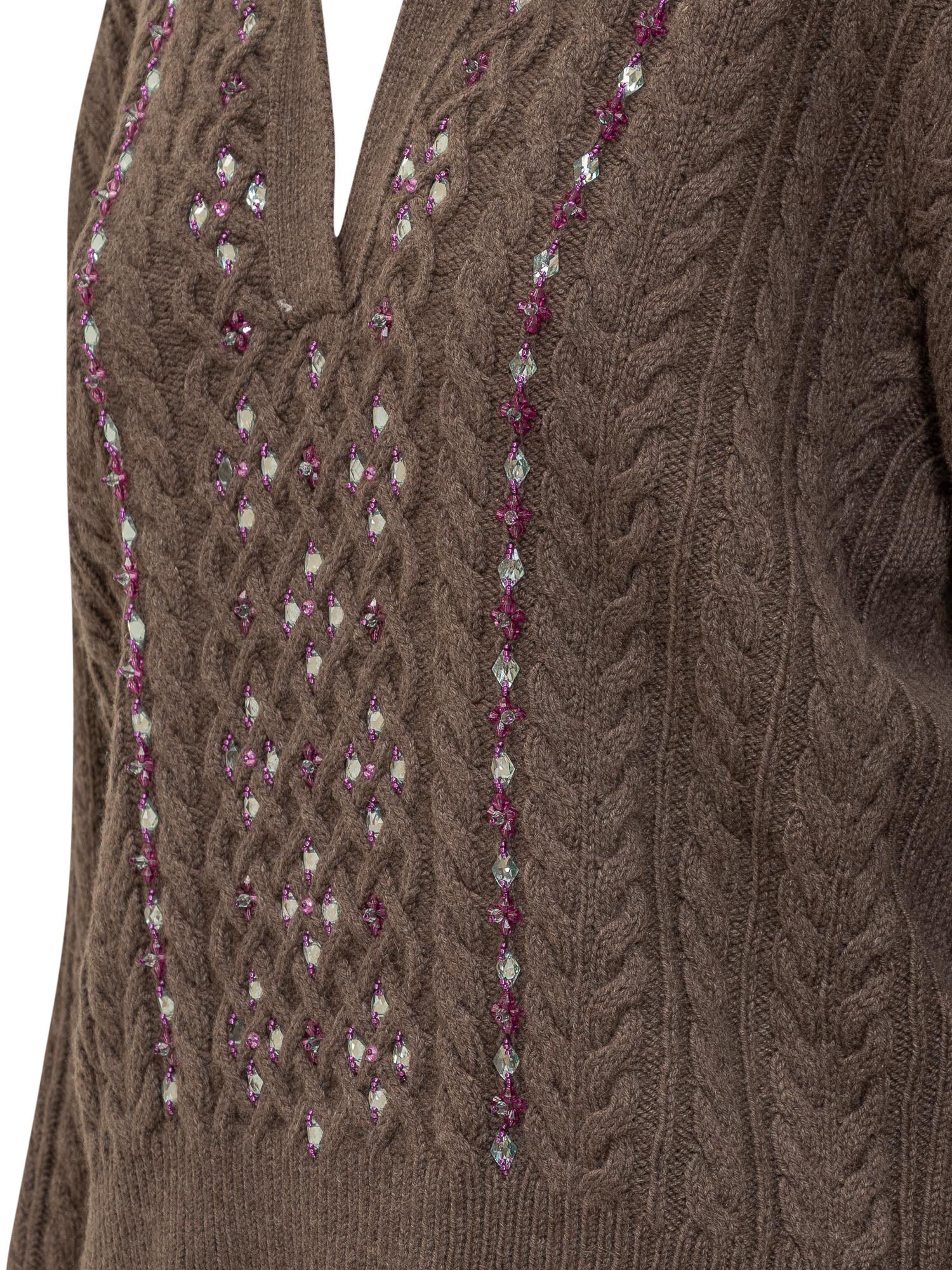 Maglione Des Phemmes in misto lana con trecce e dettagli gioiello sul davanti.