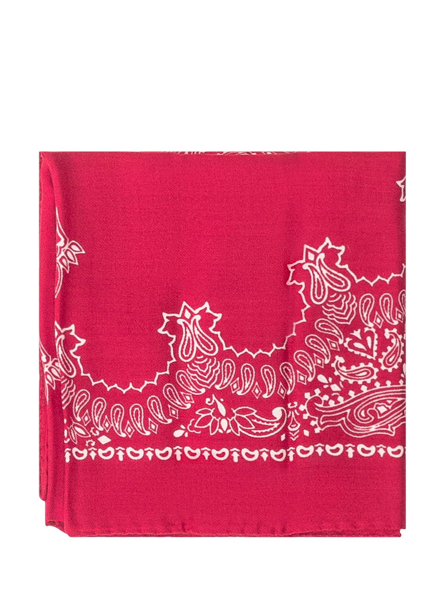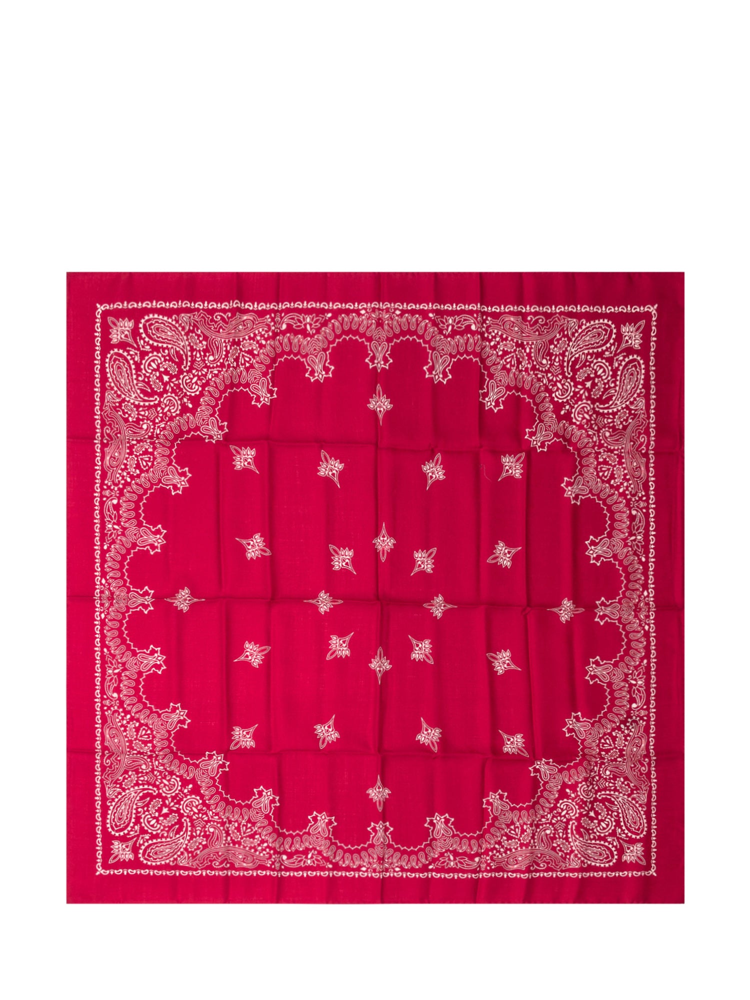 Foulard Destin in cotone rosso con stampa paisley bianca. Accessorio iconico e versatile, perfetto per donare un tocco di colore e stile ai tuoi look casual o eleganti.