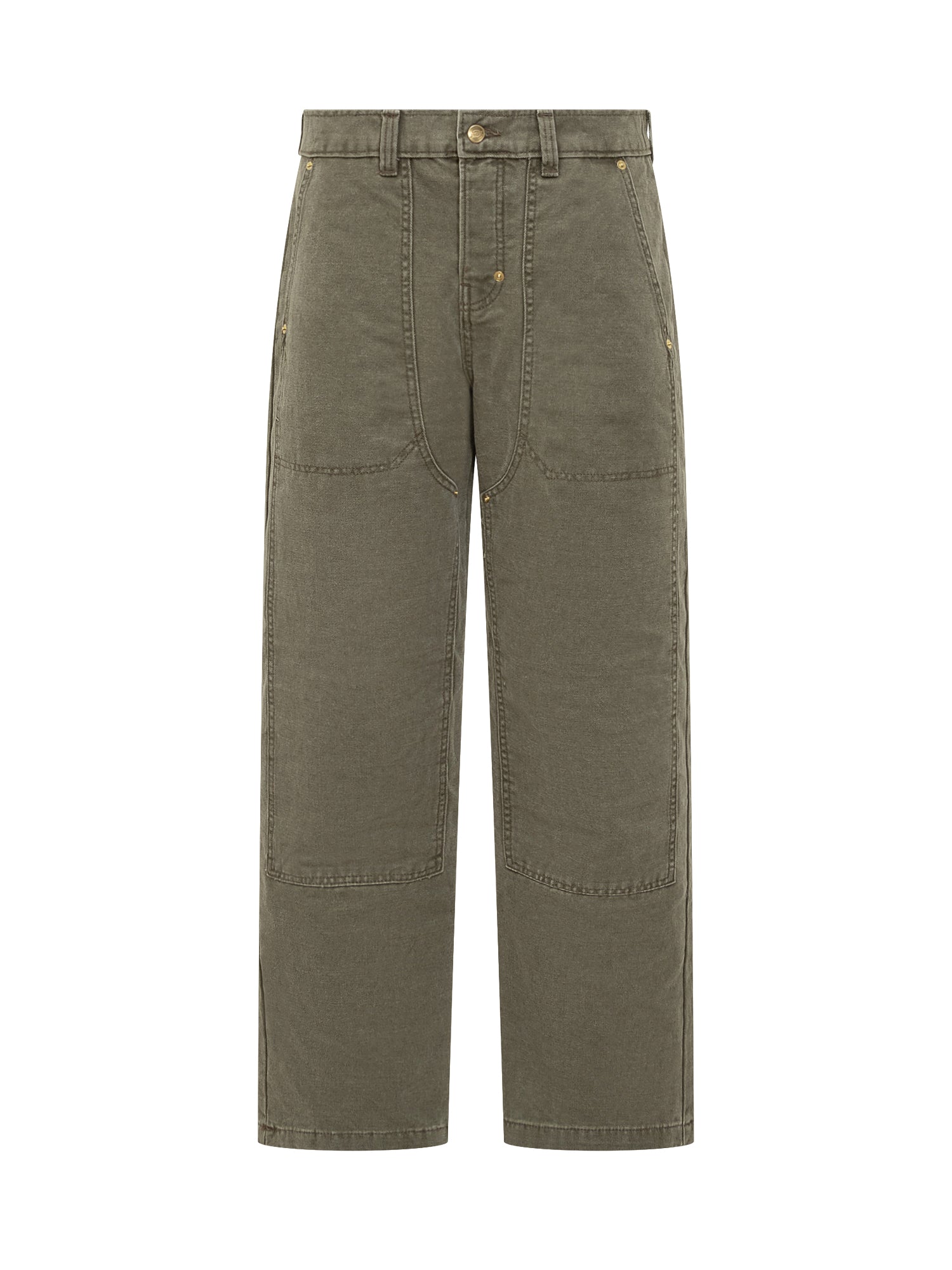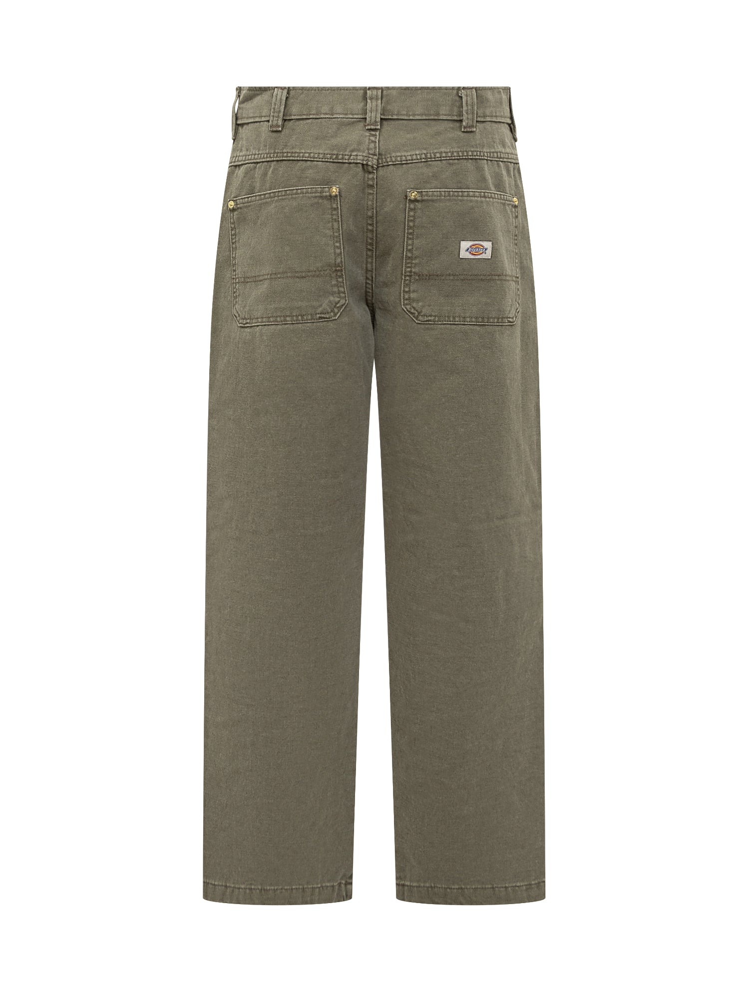 Pantaloni Dickies Threads in cotone verde militare con chiusura a bottoni, tasche frontali applicate, vita media e linea dritta.