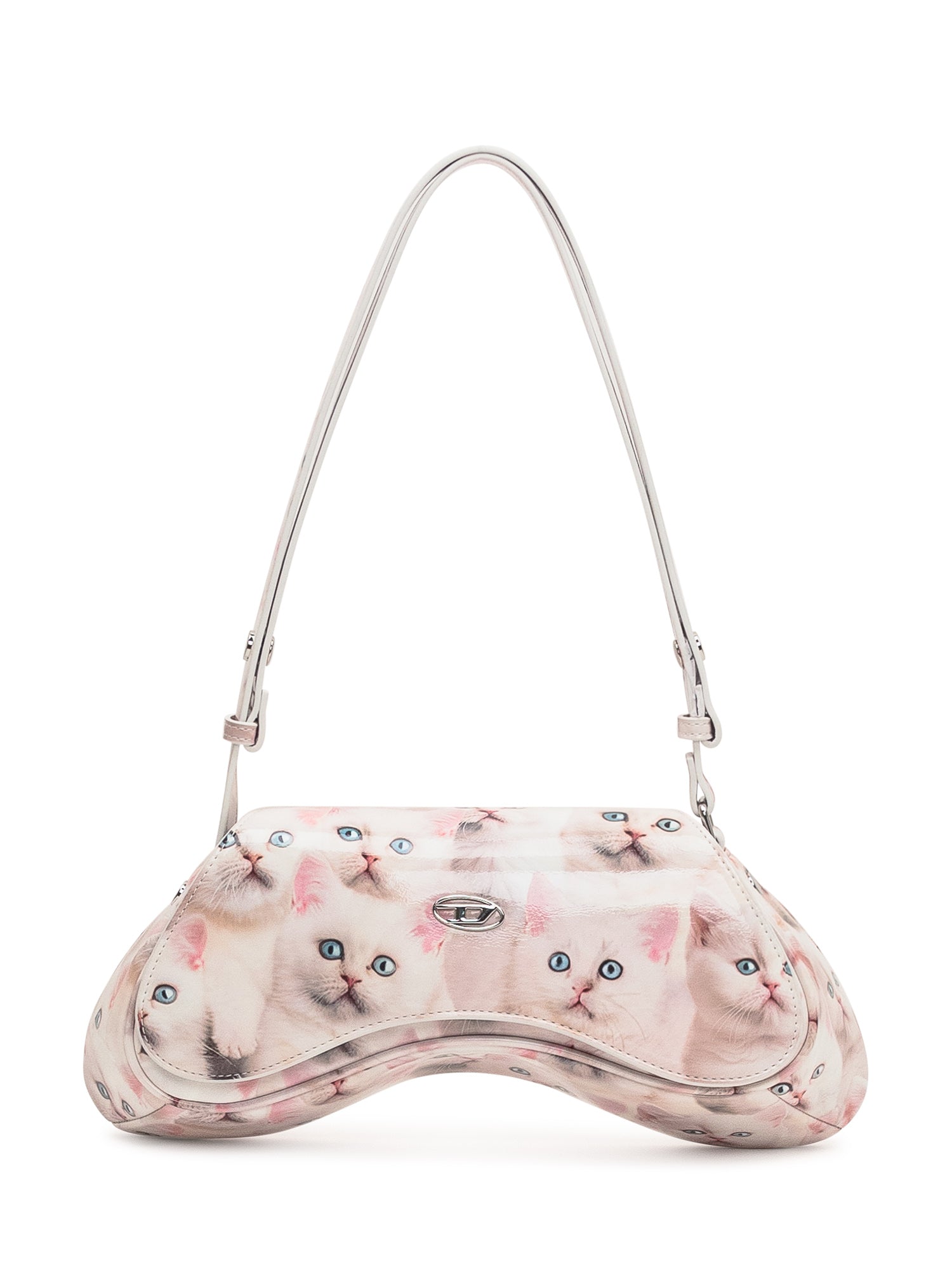 Borsa Diesel a spalla con originale stampa gattini e logo D in metallo.