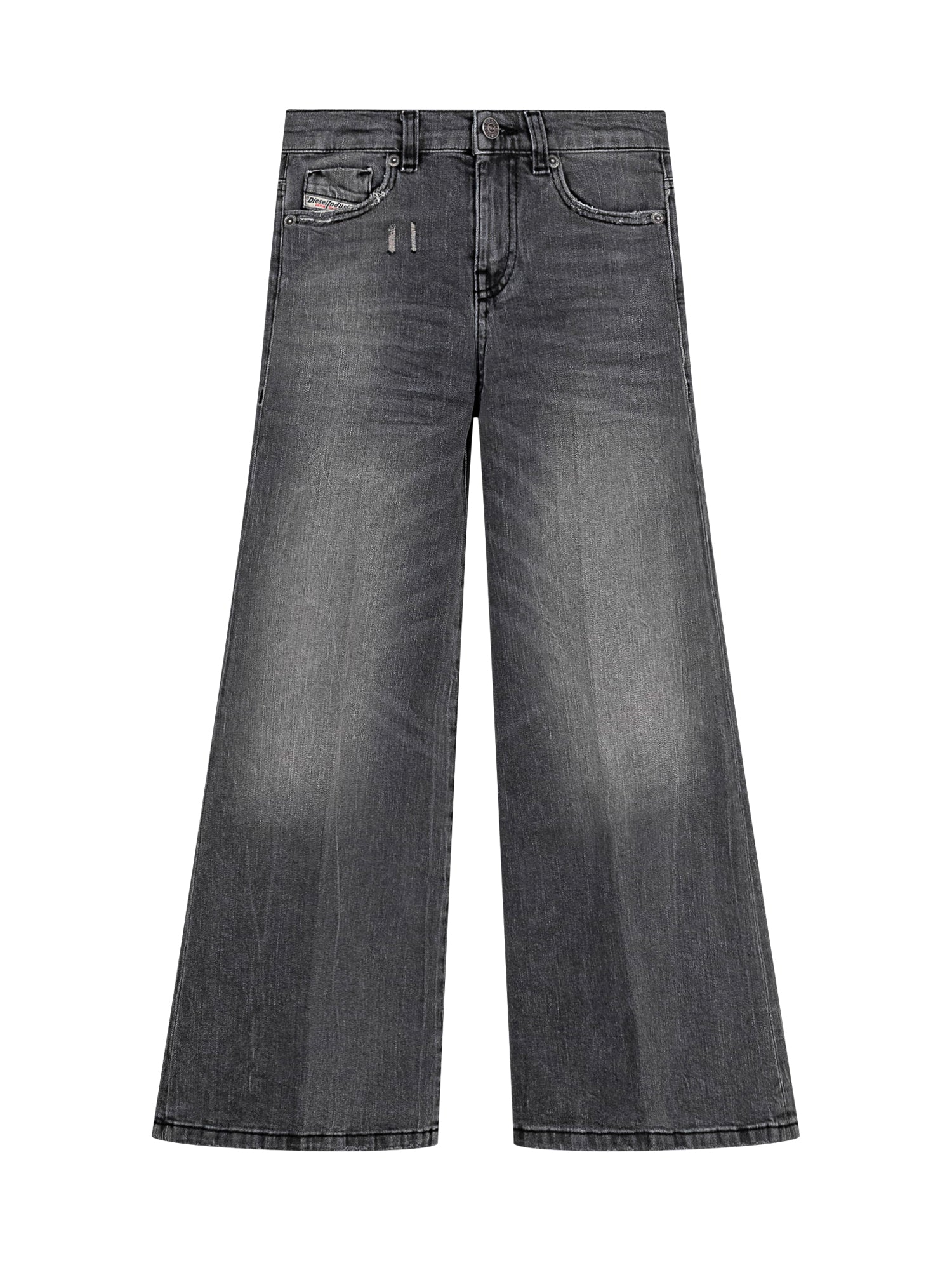 Jeans in denim blu scuro con lavaggio sfumato e taglio ampio.
