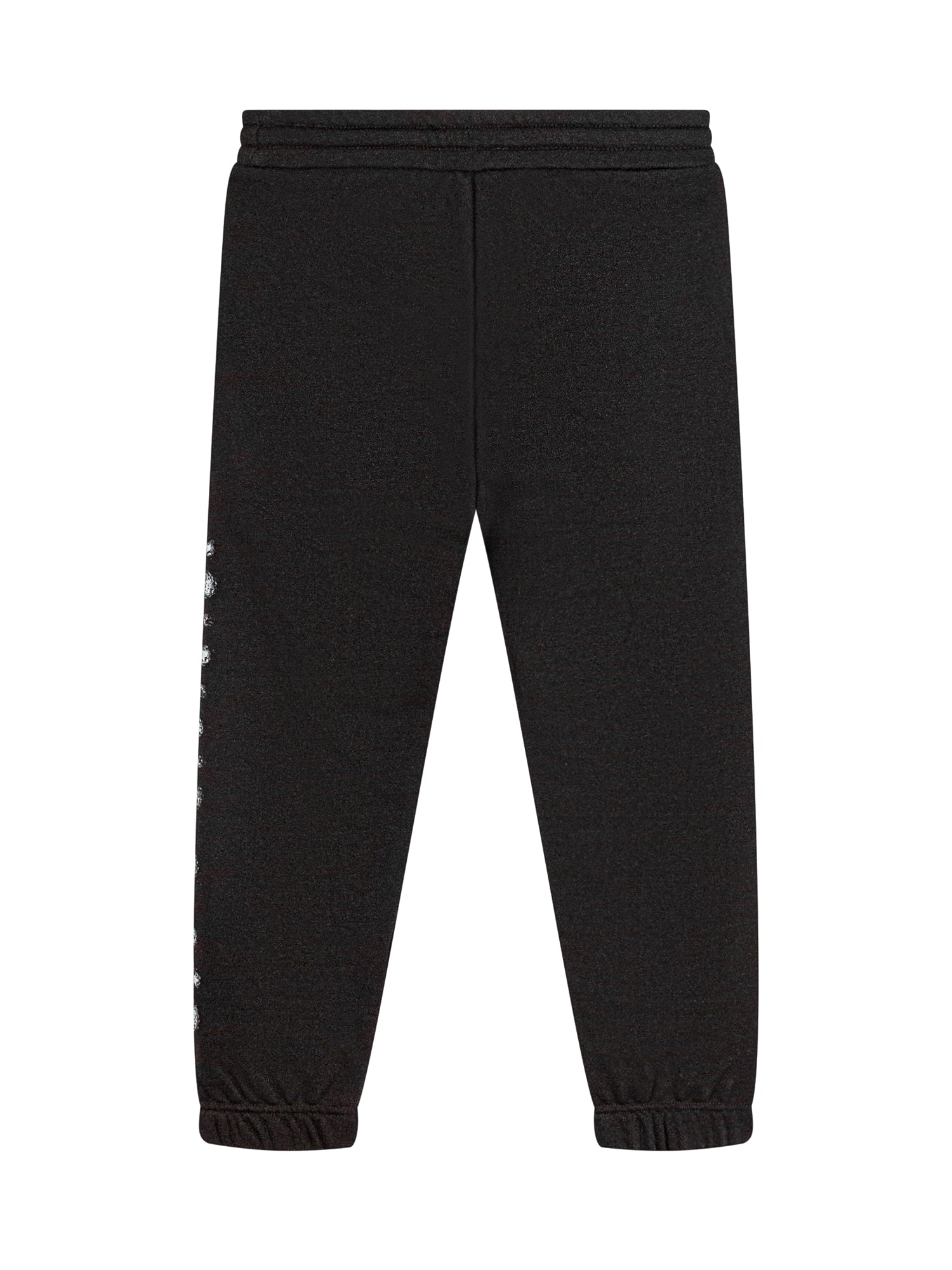 Pantaloni neri in felpa con vita elasticata e coulisse, tasche laterali e maxi logo Diesel effetto vernice sul lato.
