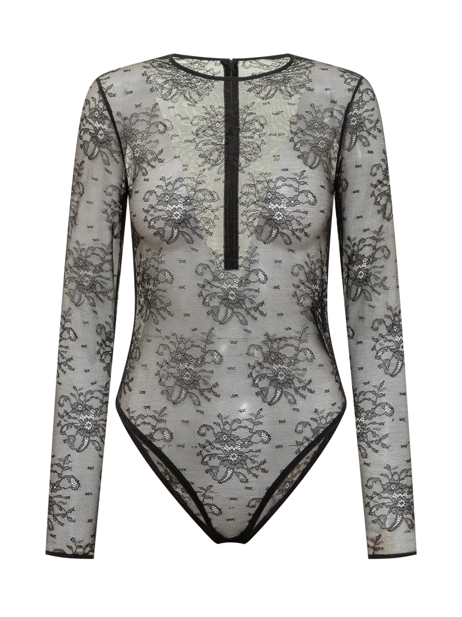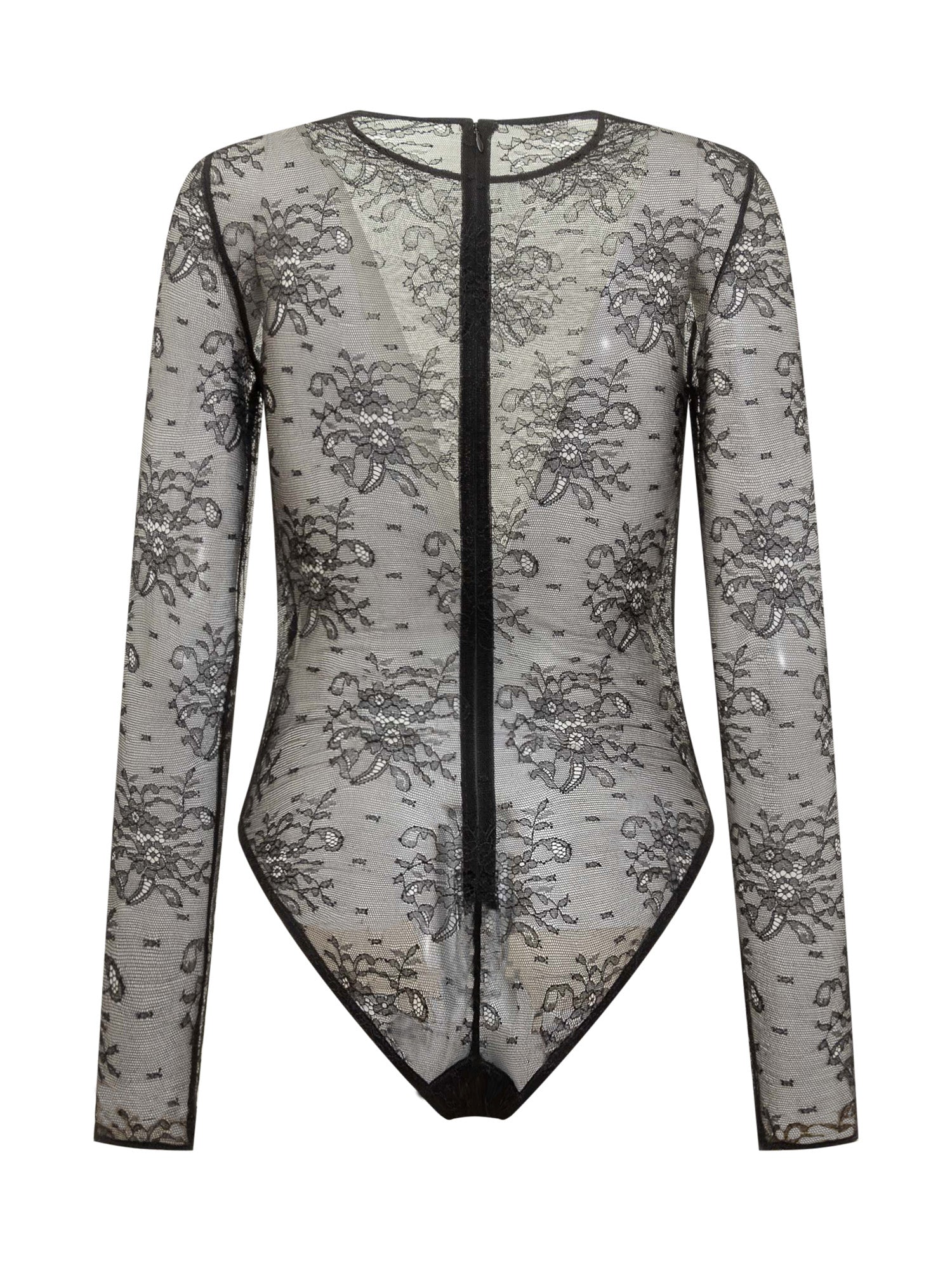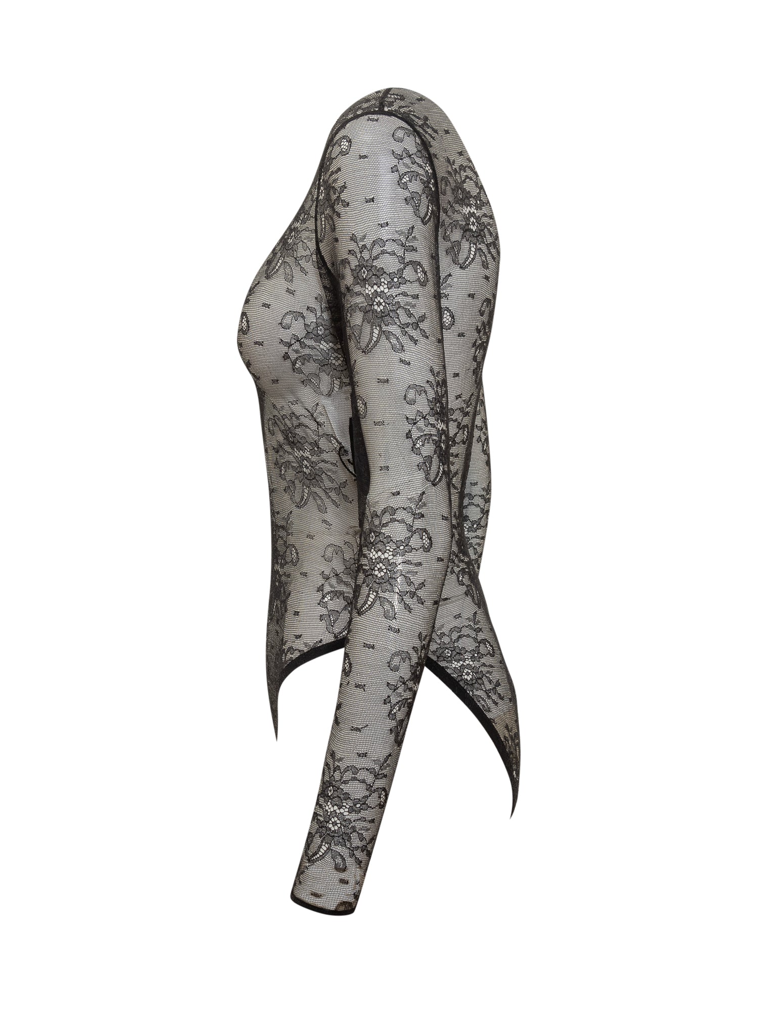 Body Dolce & Gabbana in tulle nero con raffinato ricamo floreale in pizzo. A maniche lunghe e dal taglio sensuale.