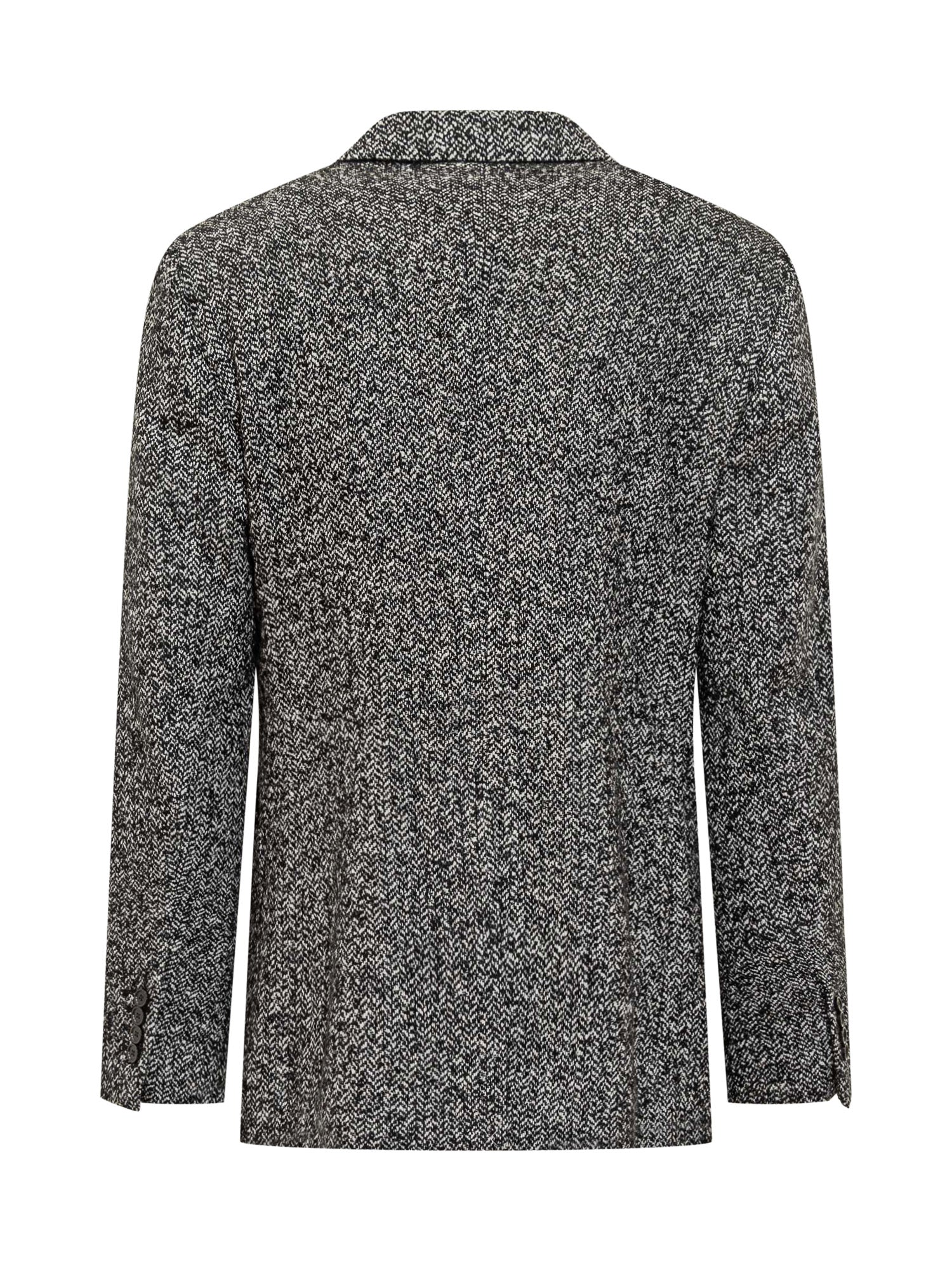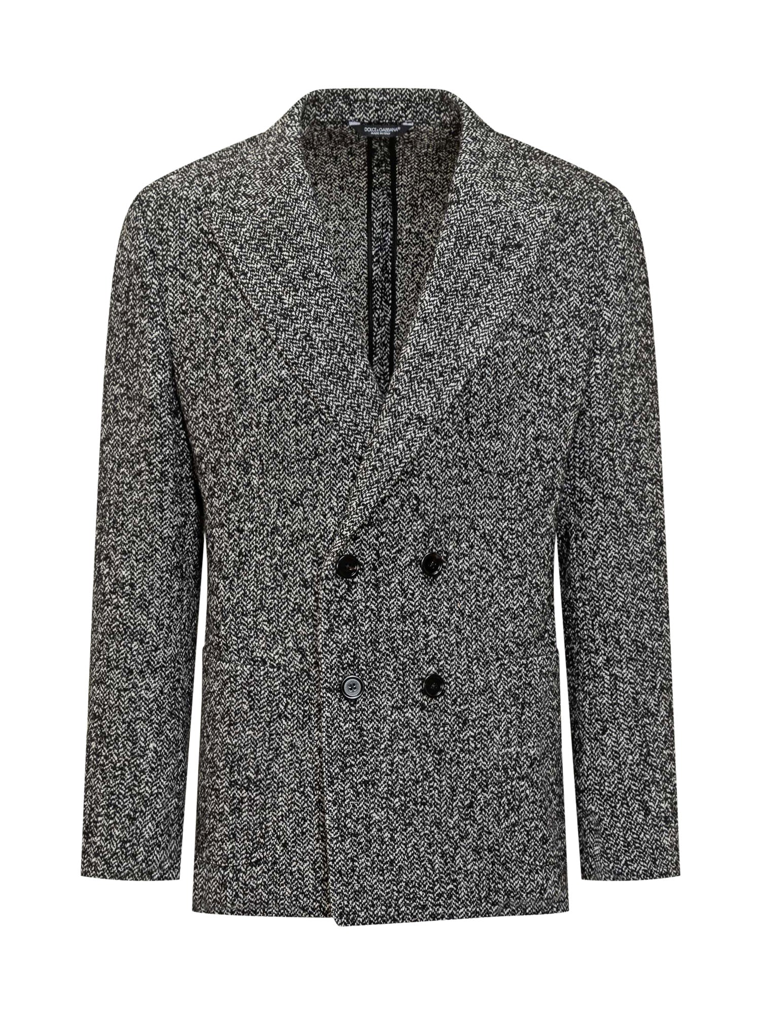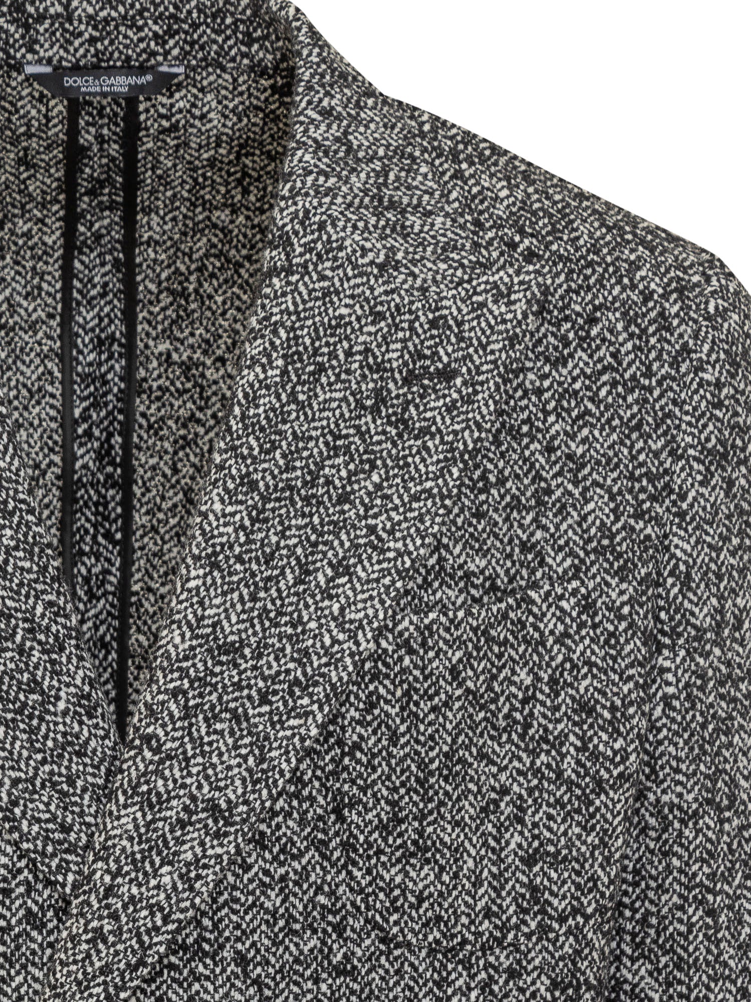 Giacca Dolce & Gabbana doppiopetto in tweed nero e bianco. Linea sartoriale con revers classici e chiusura a bottoni.