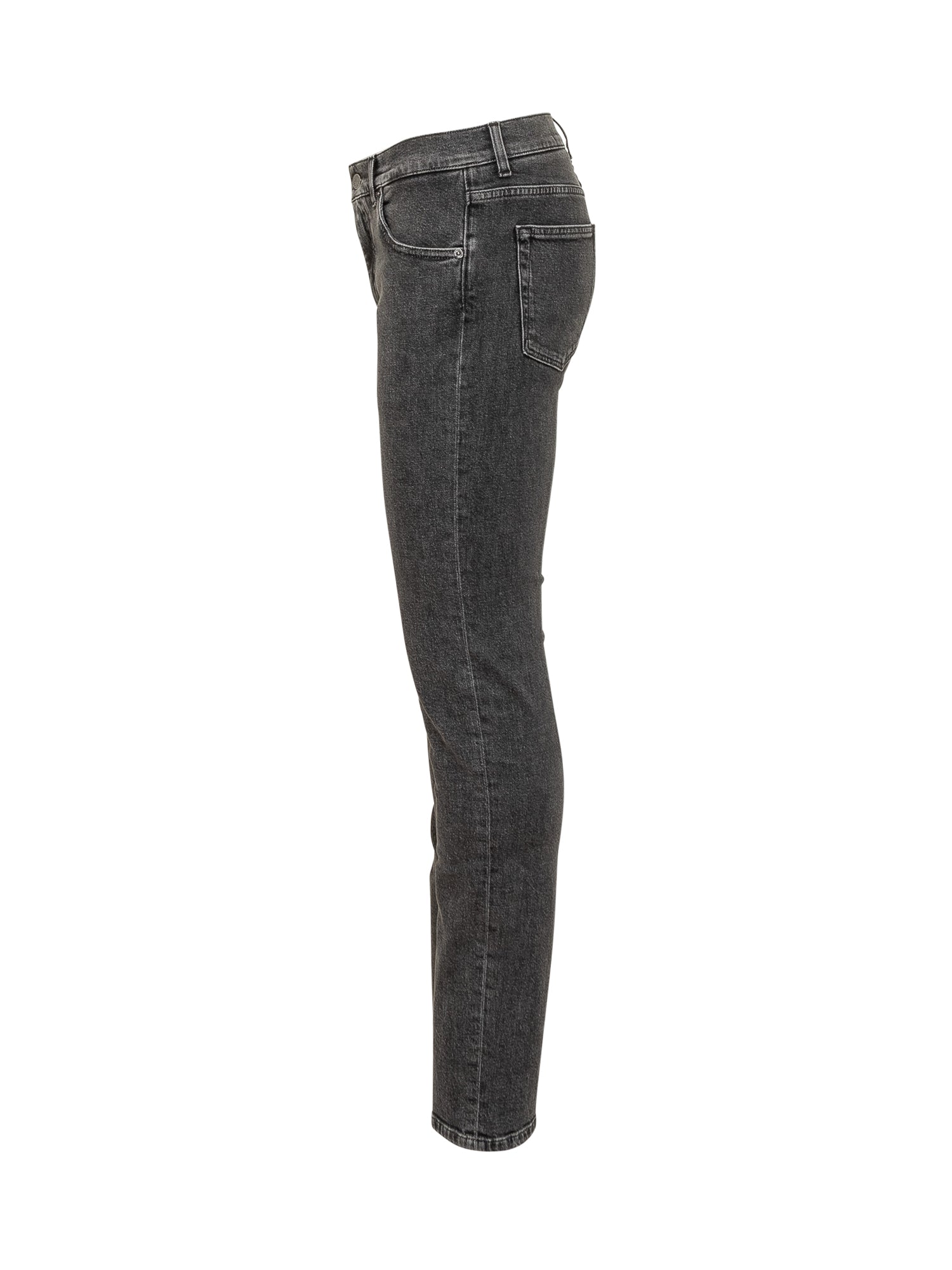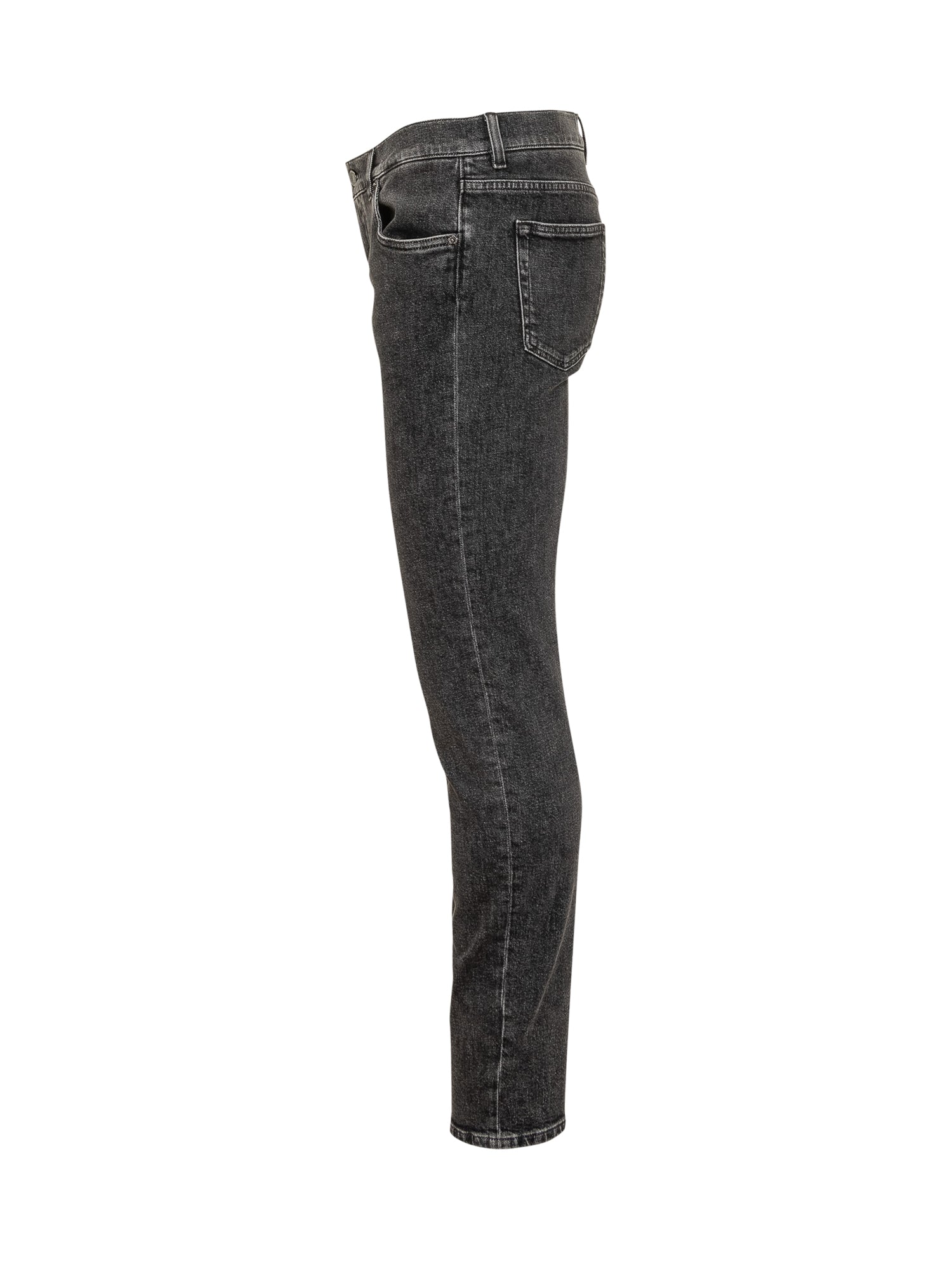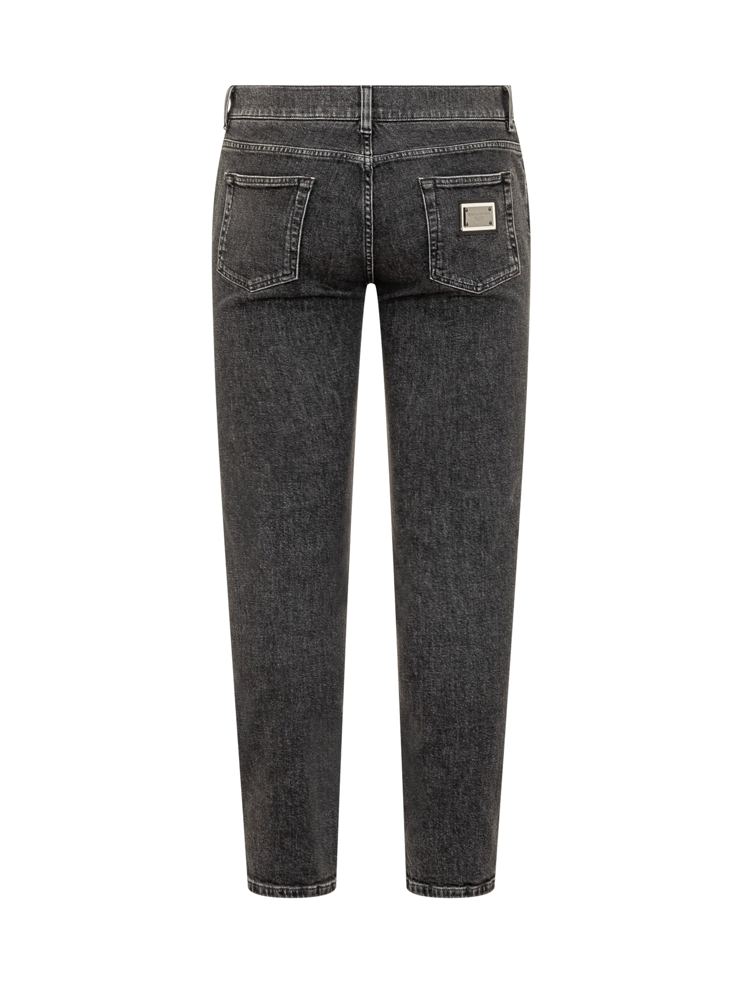 Jeans Dolce & Gabbana nero lavato con effetto used e cuciture a contrasto. Modello slim fit a cinque tasche.