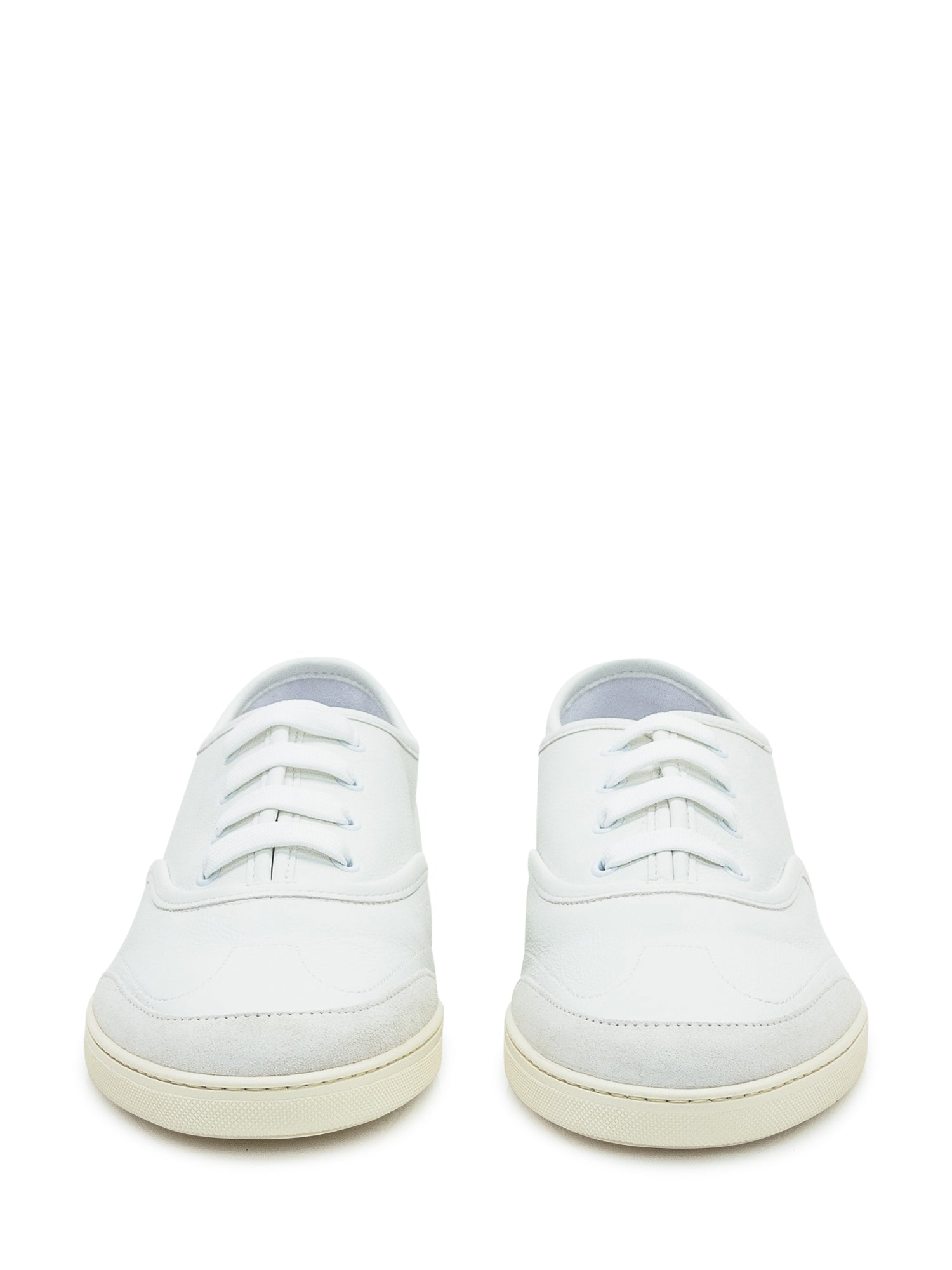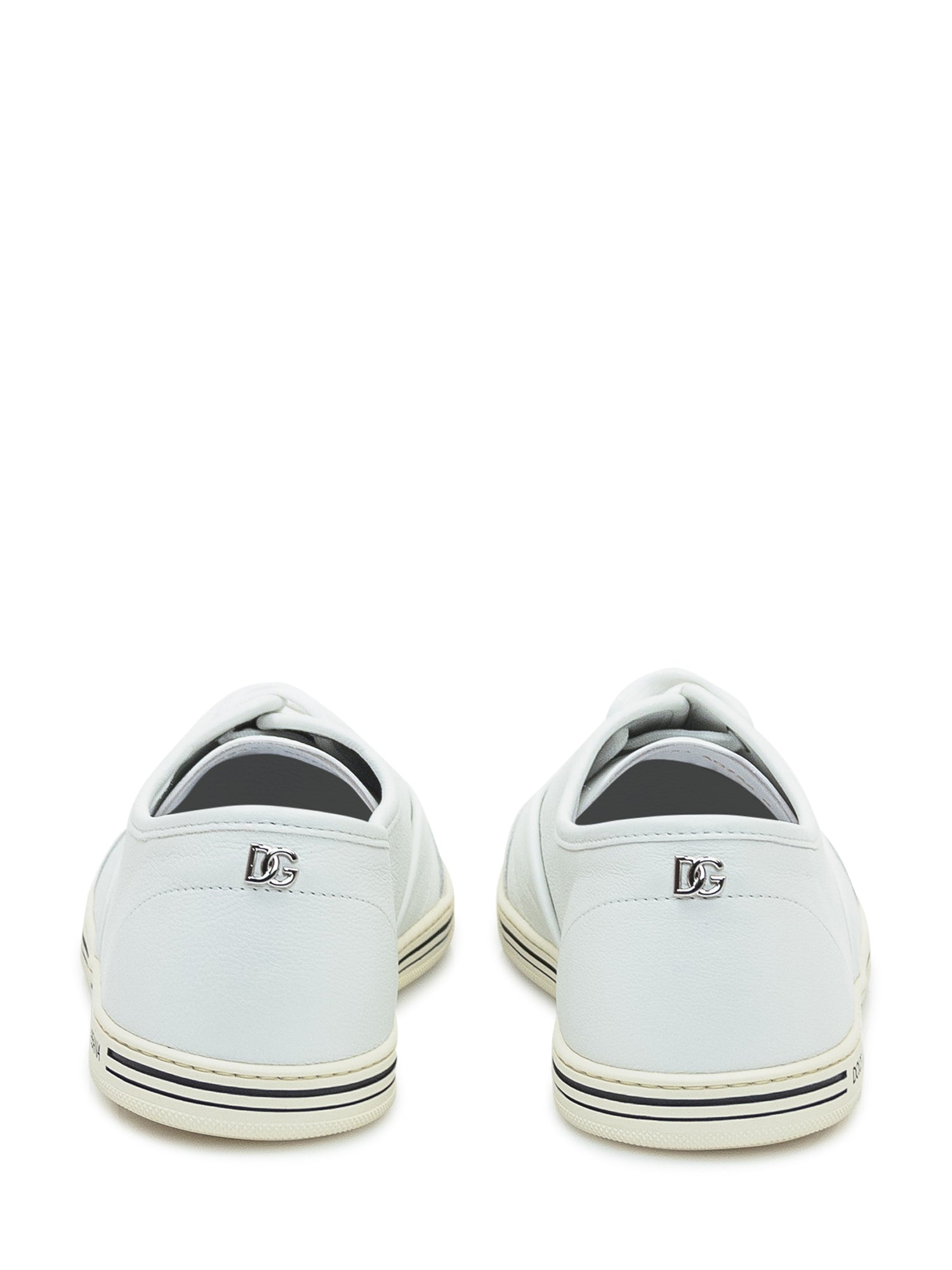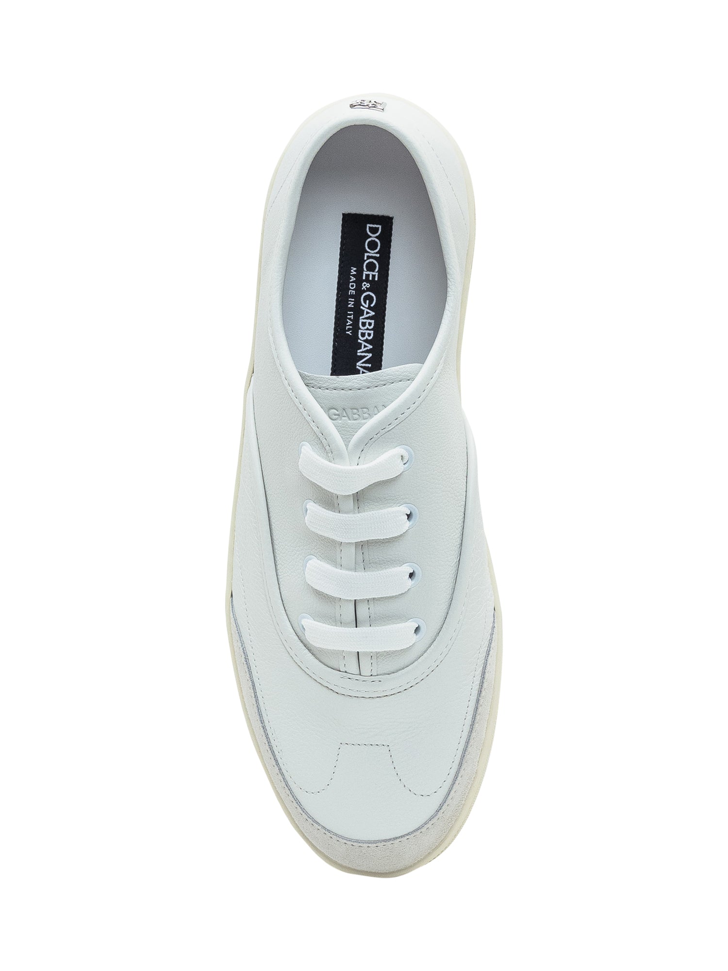 Sneakers Dolce & Gabbana in pelle bianca con suola in gomma a contrasto e logo laterale. Design essenziale e versatile.