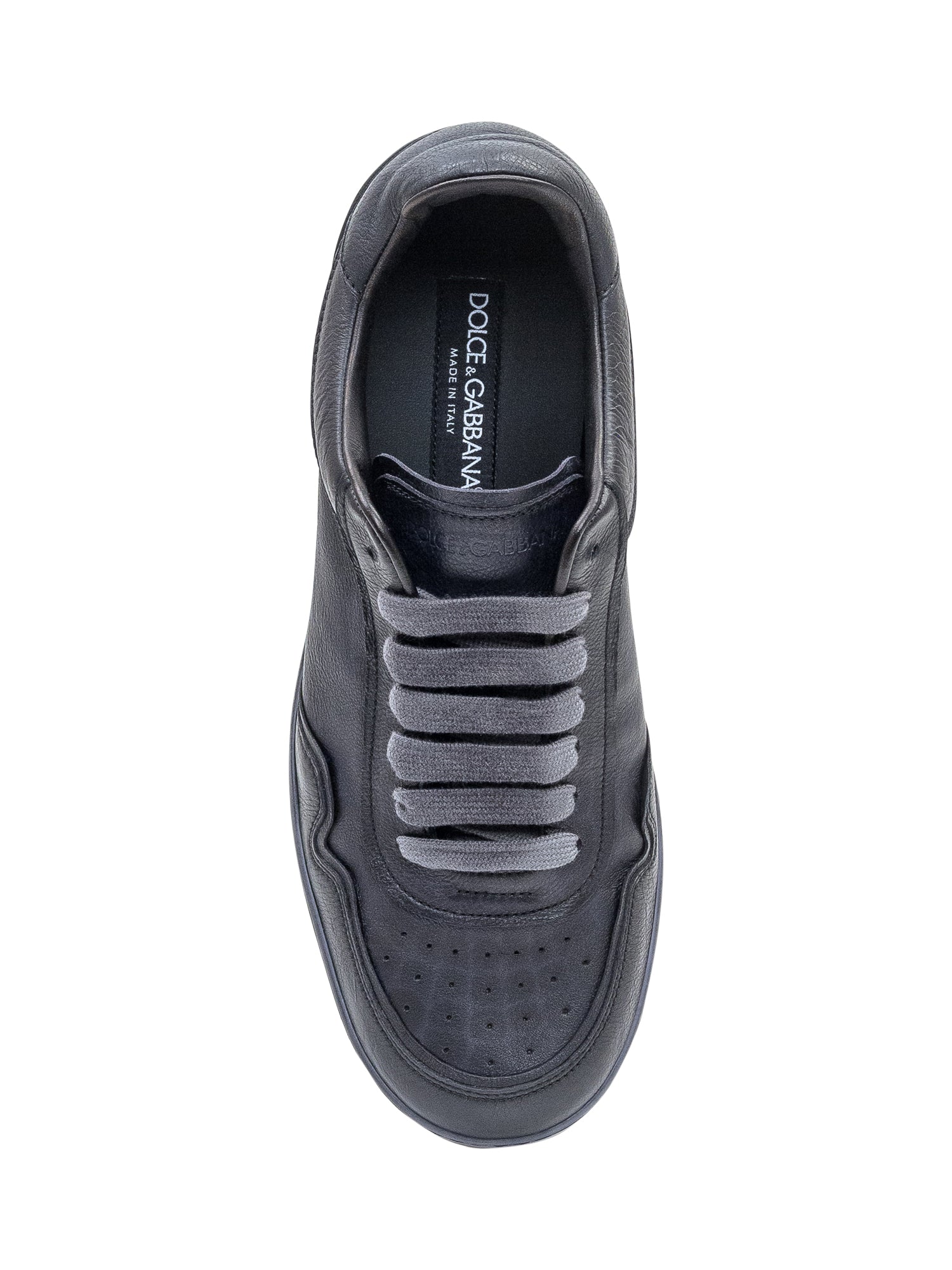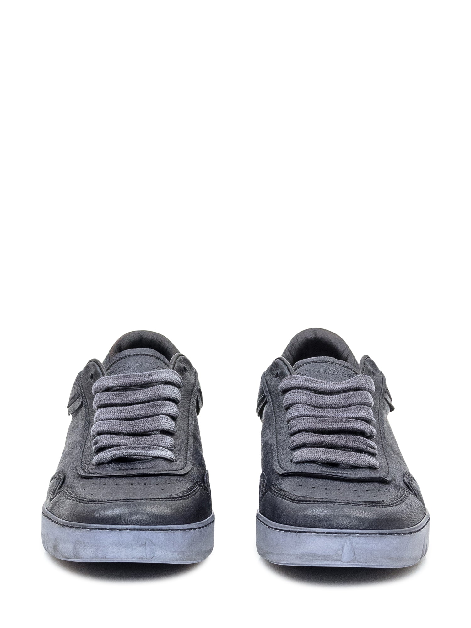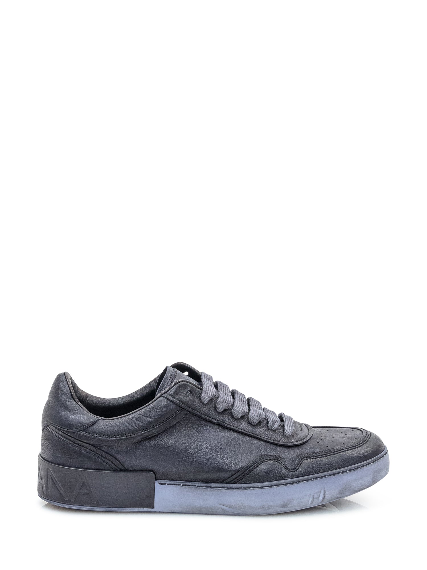 Sneakers Dolce & Gabbana in pelle nera con lacci tono su tono e suola bicolor grigia e nera con logo in rilievo.