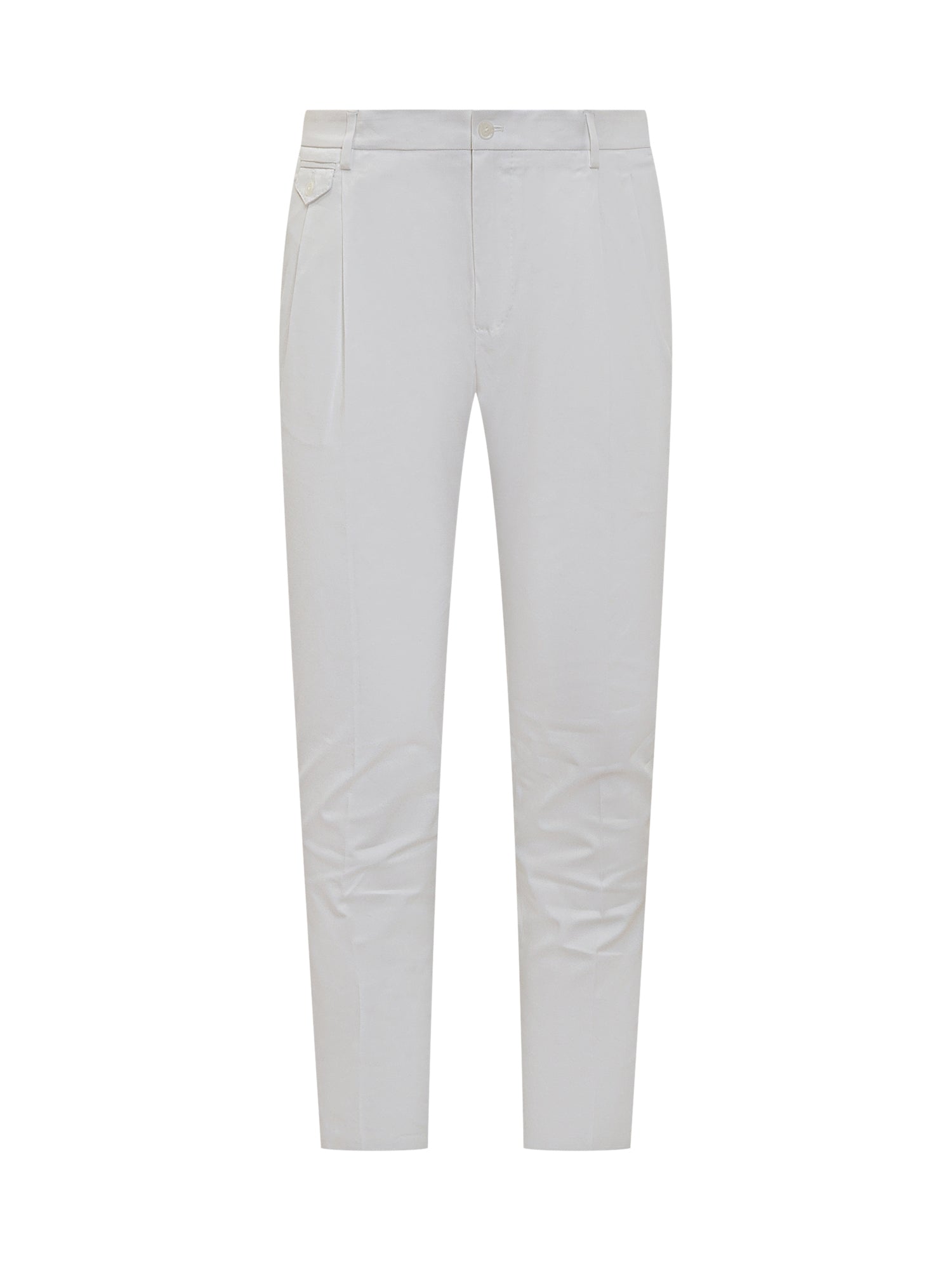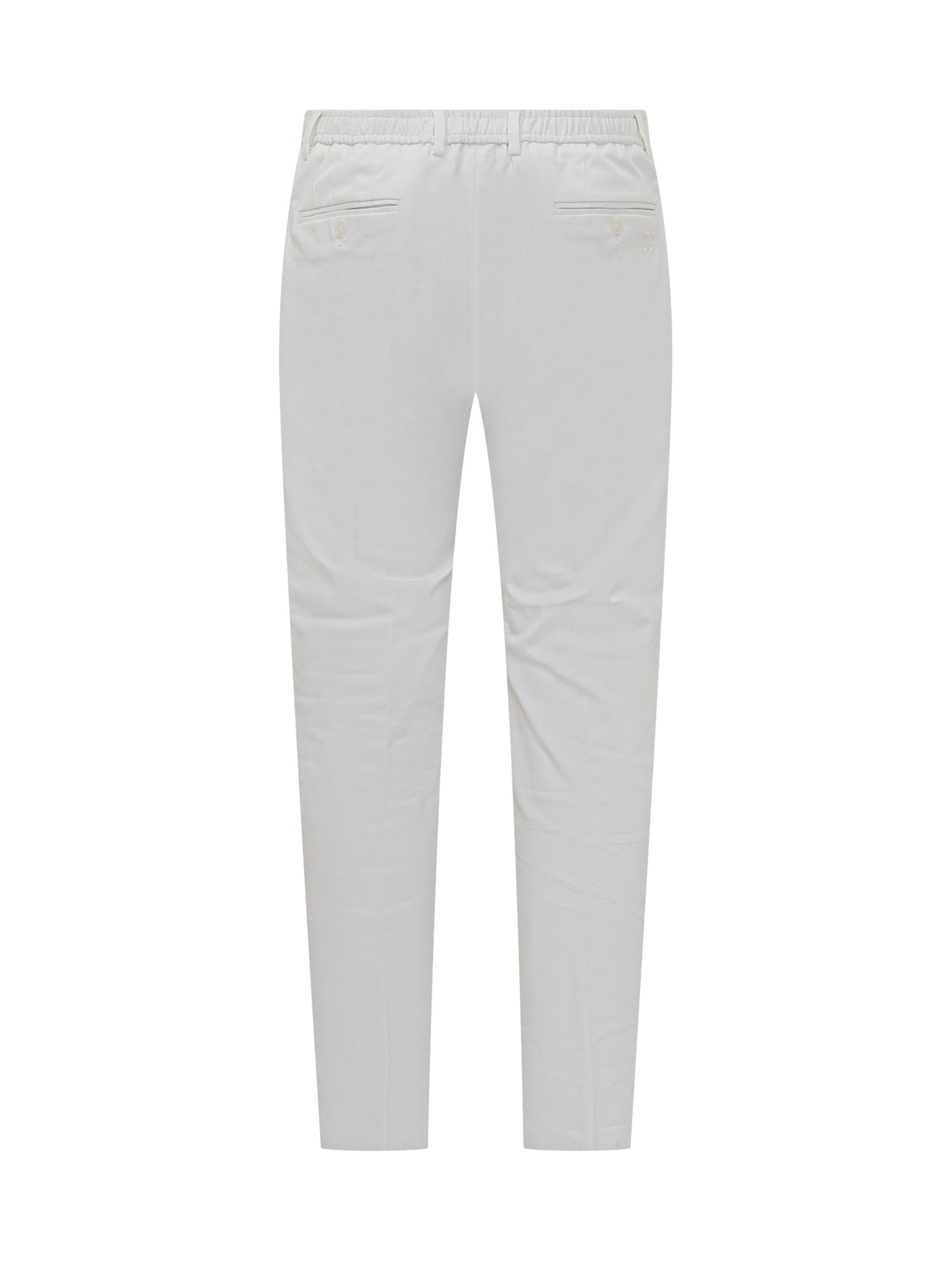 Pantaloni lunghi. Slim fit. Tasche a filo ai lati. Tasche a filo con bottone sul retro. Chiusura con bottone e zip. Elastico nel retro del punto vita.