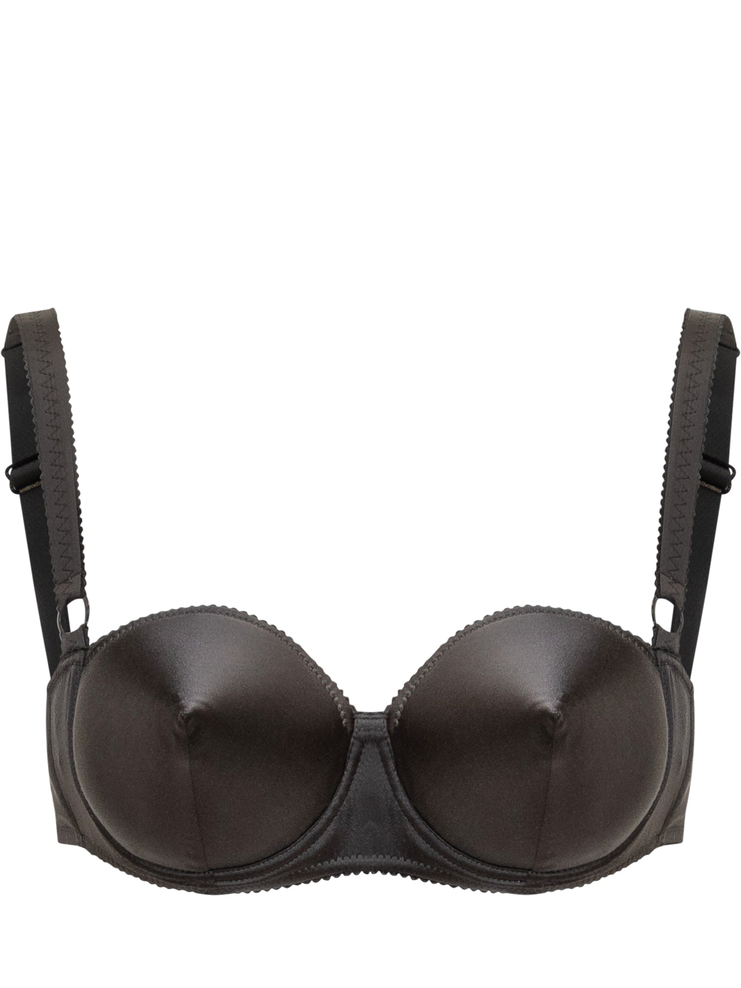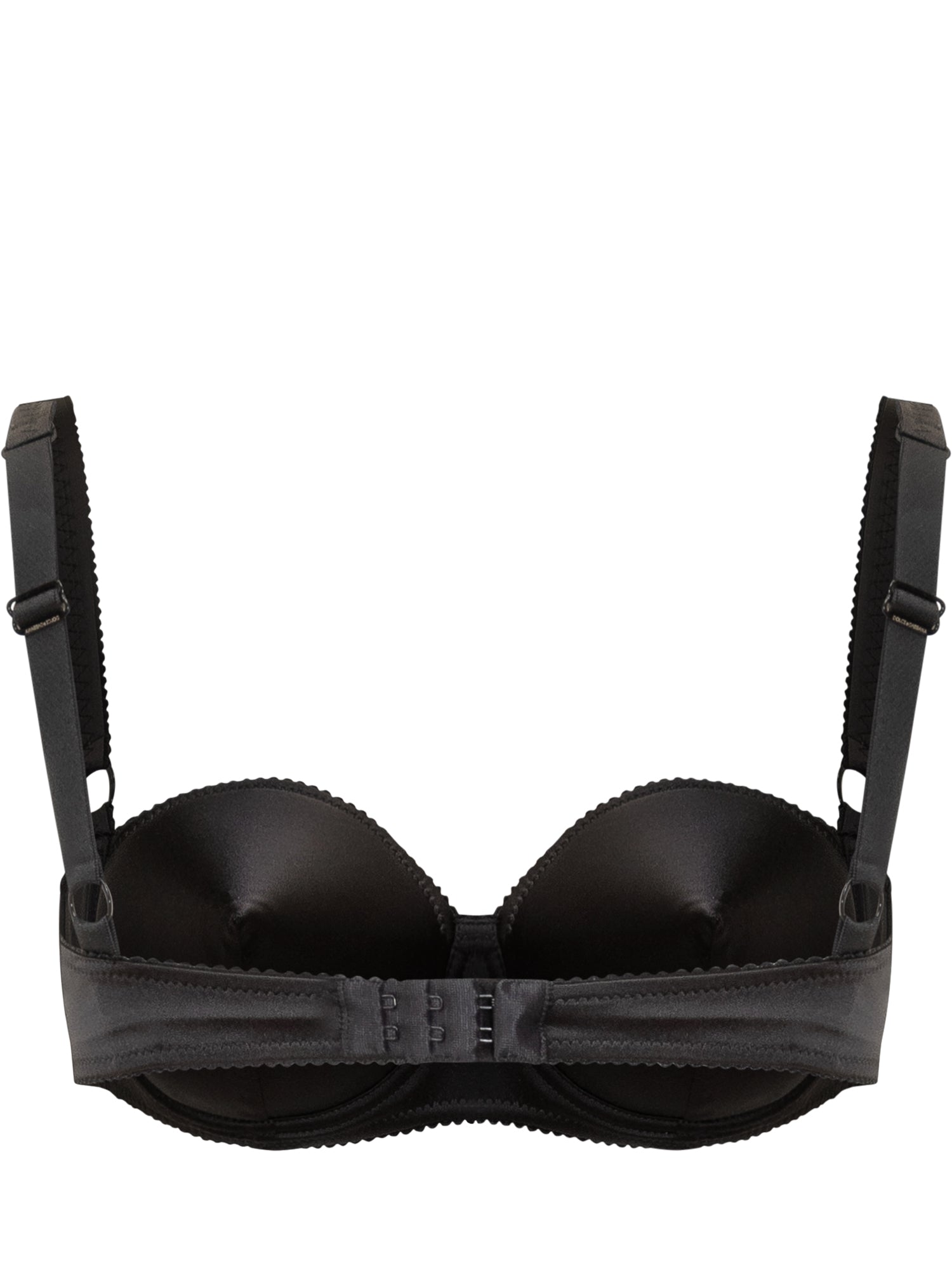 Reggiseno in misto seta. Coppe dal design a punta. Chiusura con gancini.