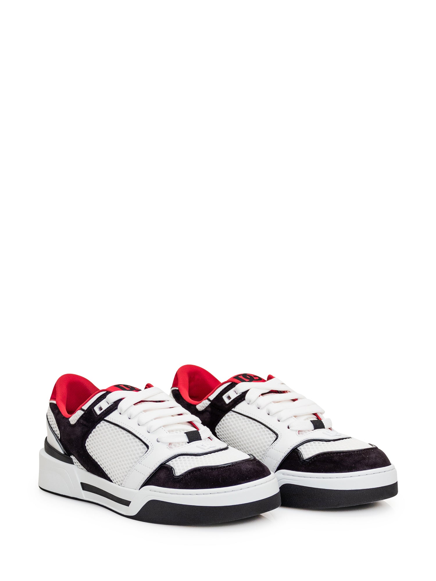 Sneaker bianca con motivo a rete. Inserti in pelle scamosciata. Chiusura con lacci. Tallone a contrasto. Patch Logo sulla linguetta. Logo sul retro.