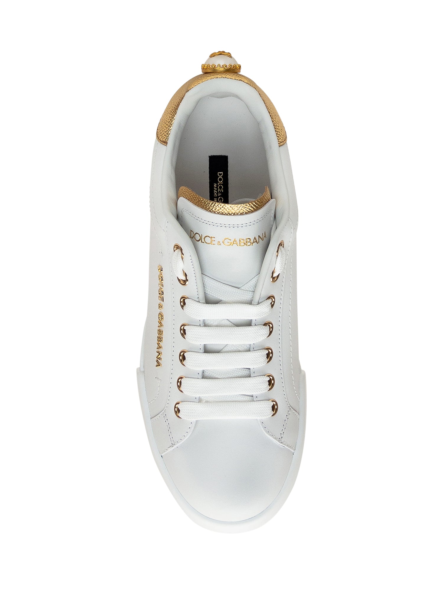 Sneaker bassa bianca. Chiusura con lacci. Dettaglio perla con logo sul tallone. Logo su lato e linguetta.