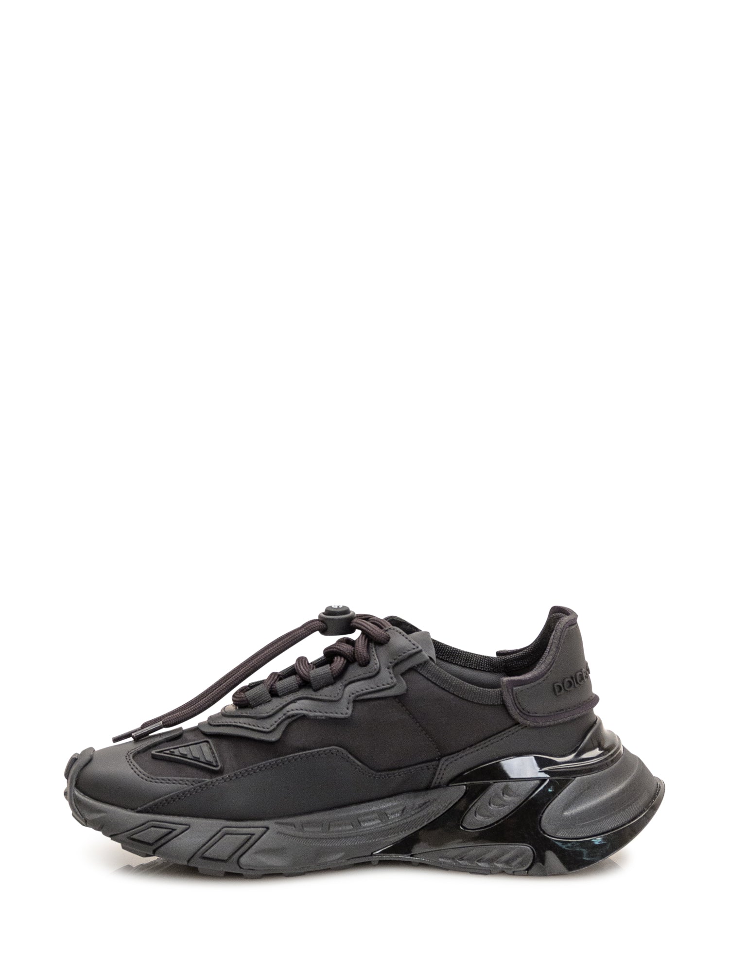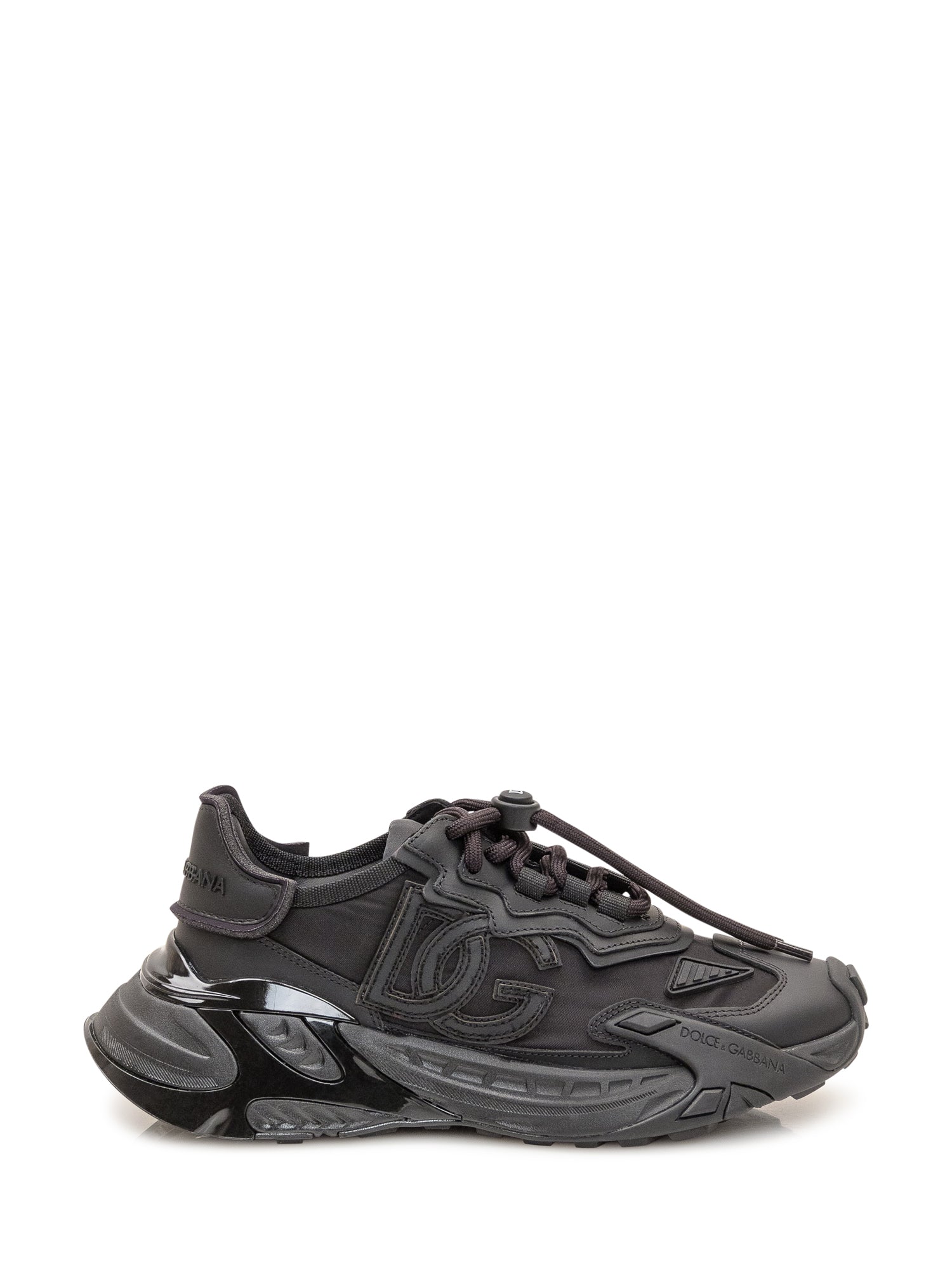 Sneakers Dolce & Gabbana in total black con logo DG in rilievo, suola chunky scolpita e sistema di allacciatura rapida.