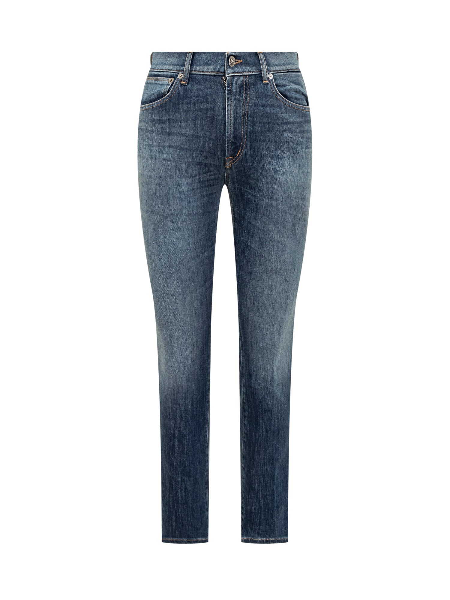Jeans Dondup in denim blu con lavaggio leggermente sfumato. Modello skinny a vita alta che valorizza la silhouette.