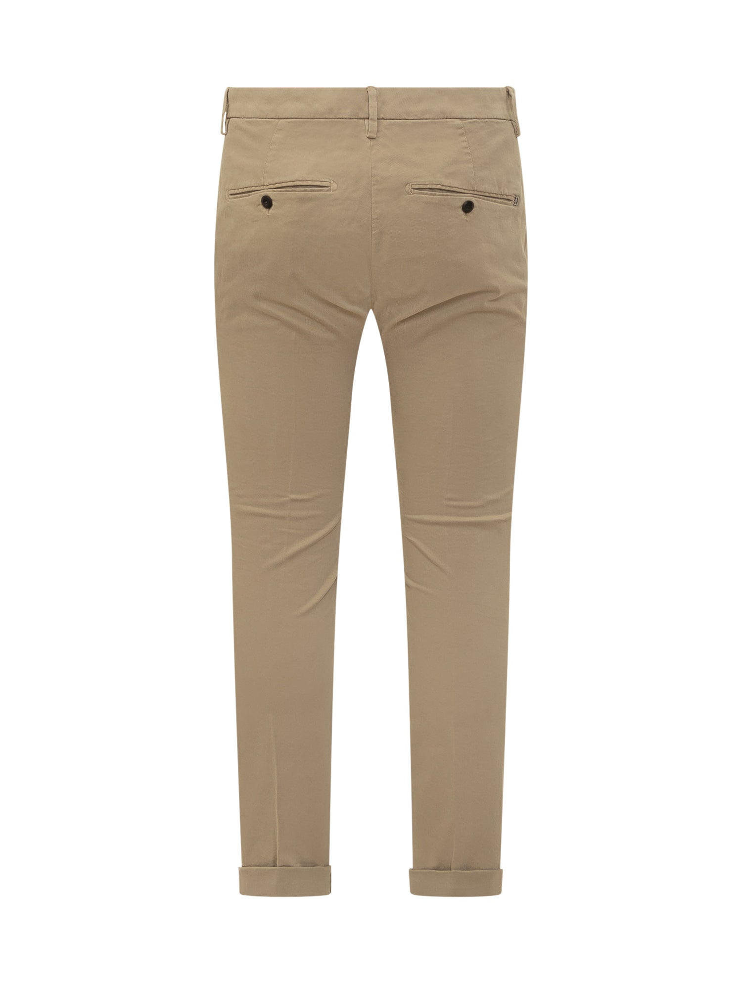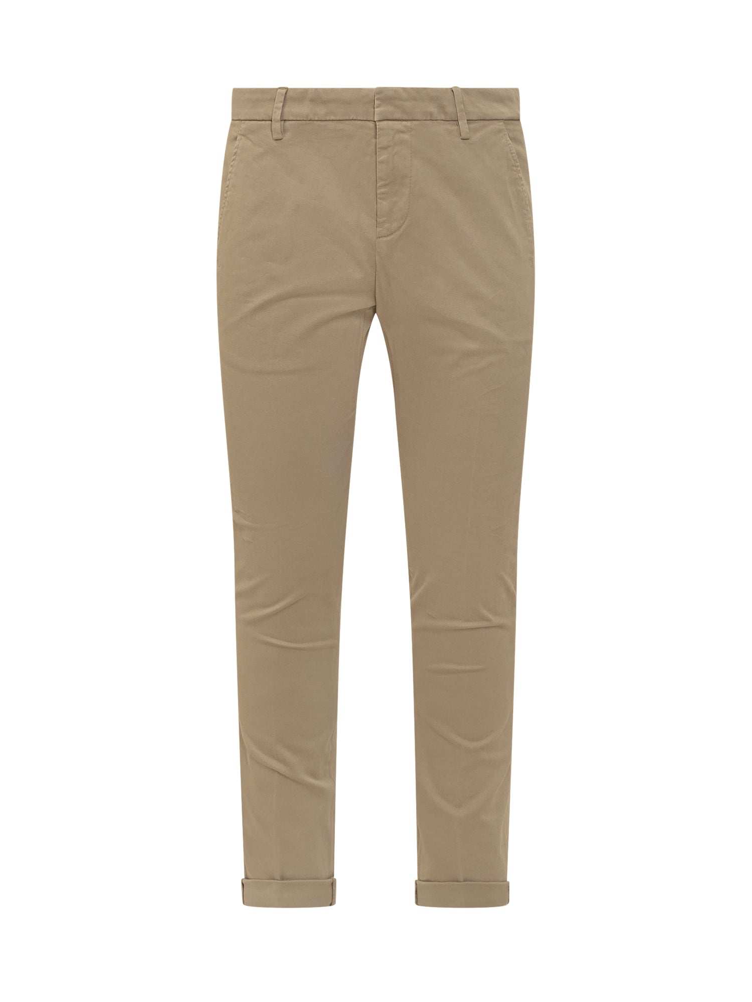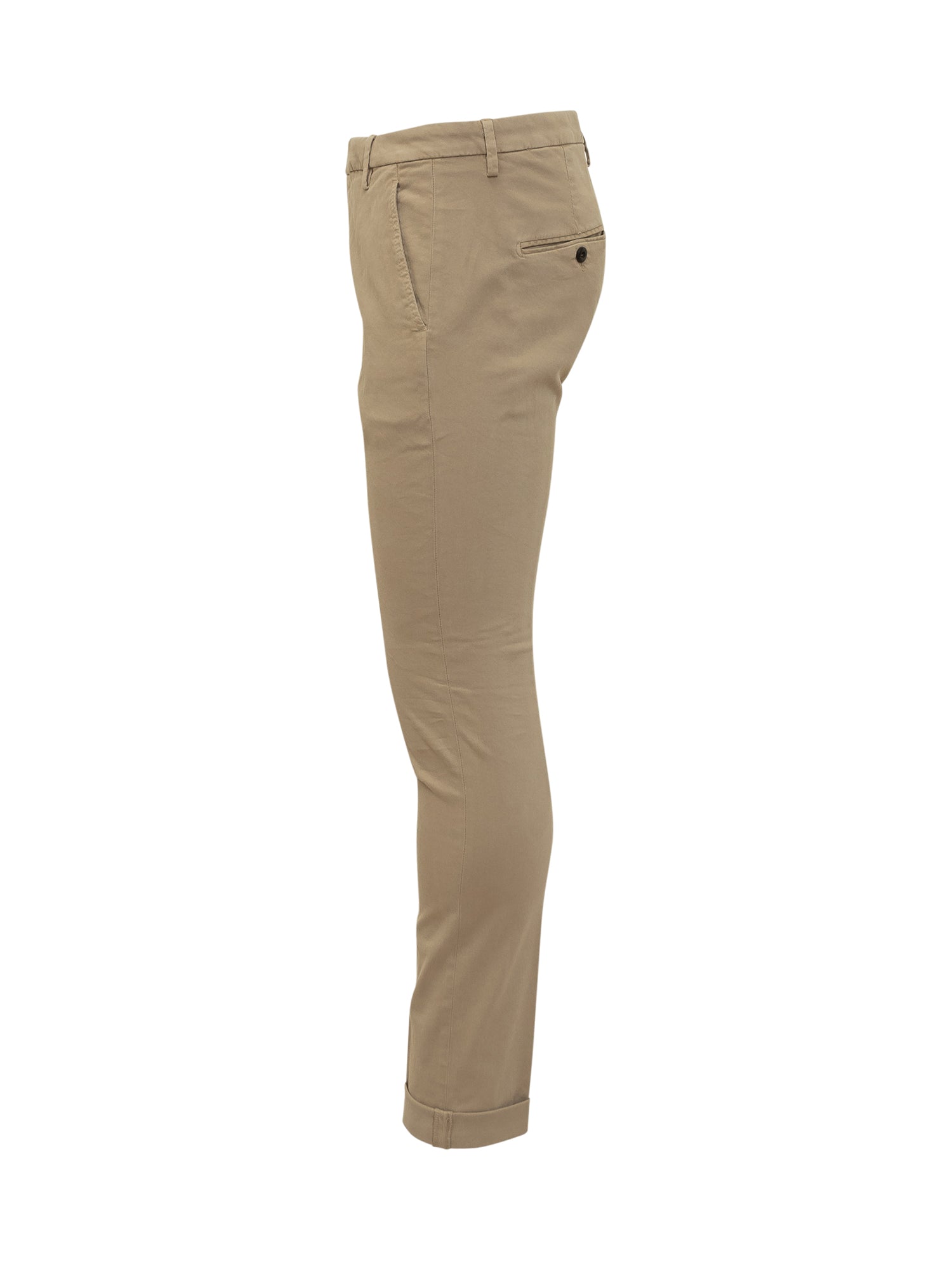 Pantaloni Dondup modello Gaubert in cotone stretch beige sabbia. Taglio slim con risvolto al fondo e chiusura con zip e bottone.