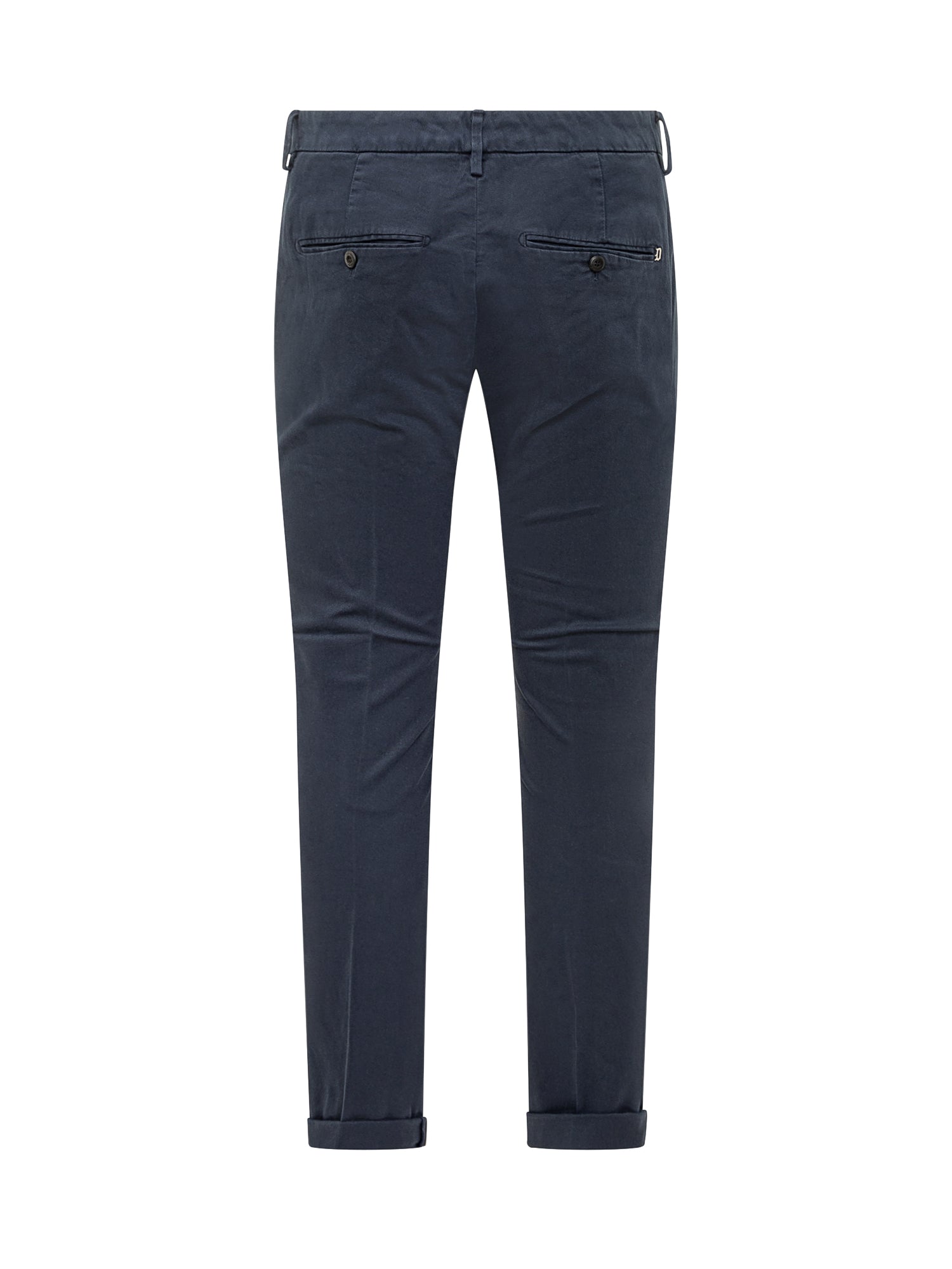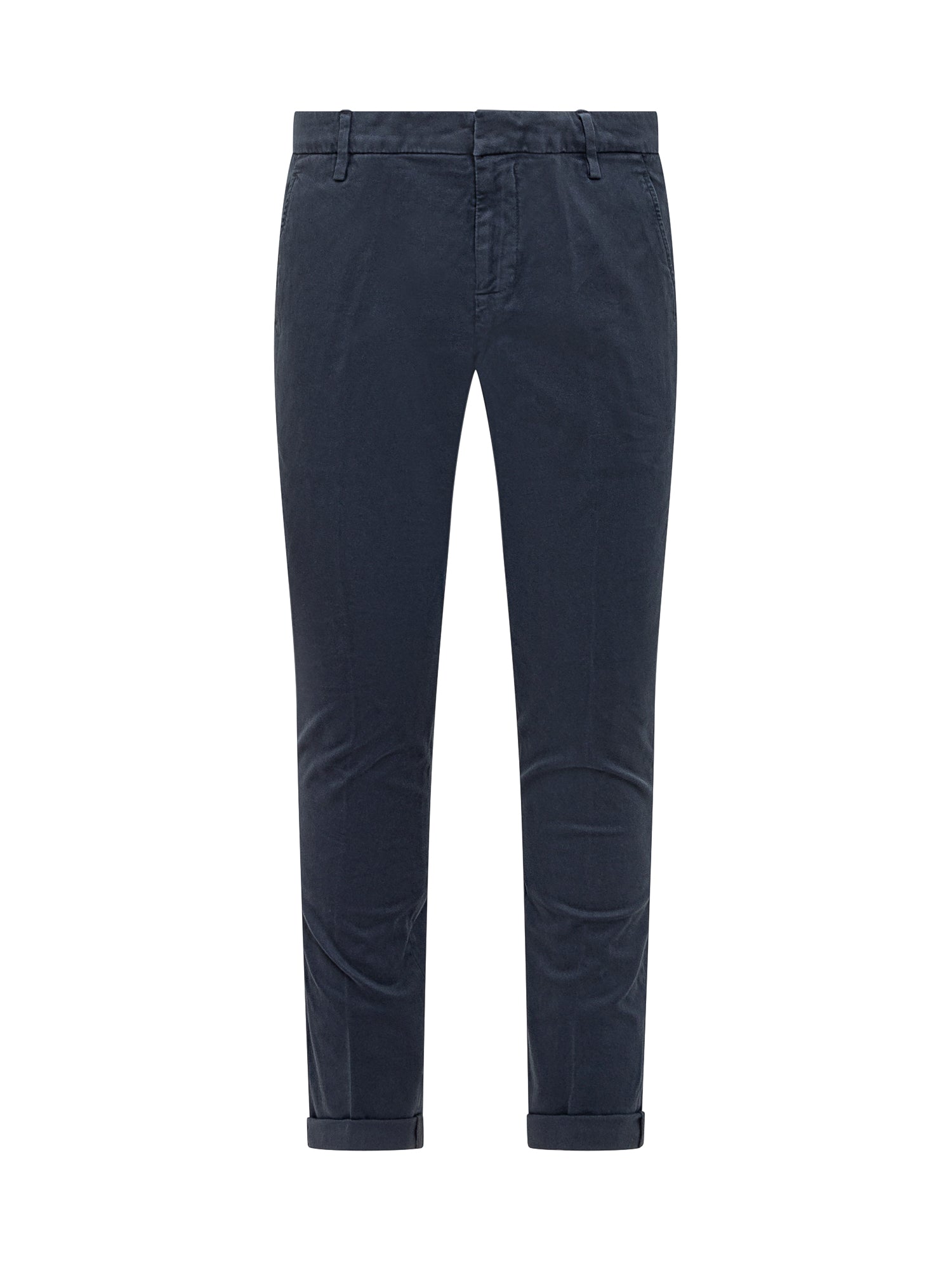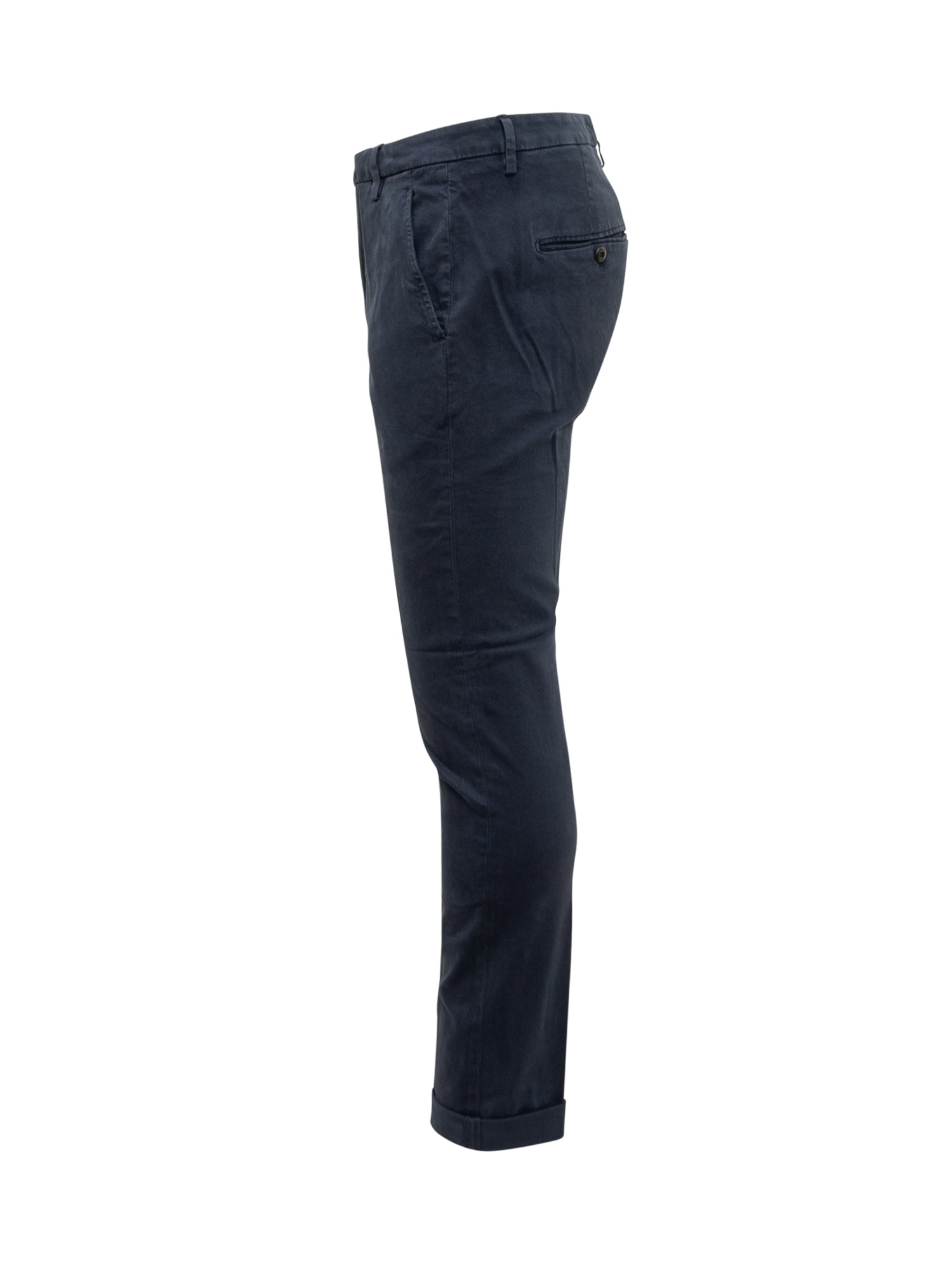 Pantaloni Dondup modello Gaubert in cotone stretch blu navy. Vestibilità slim, tasche posteriori a filetto con bottoni e fondo risvoltato.