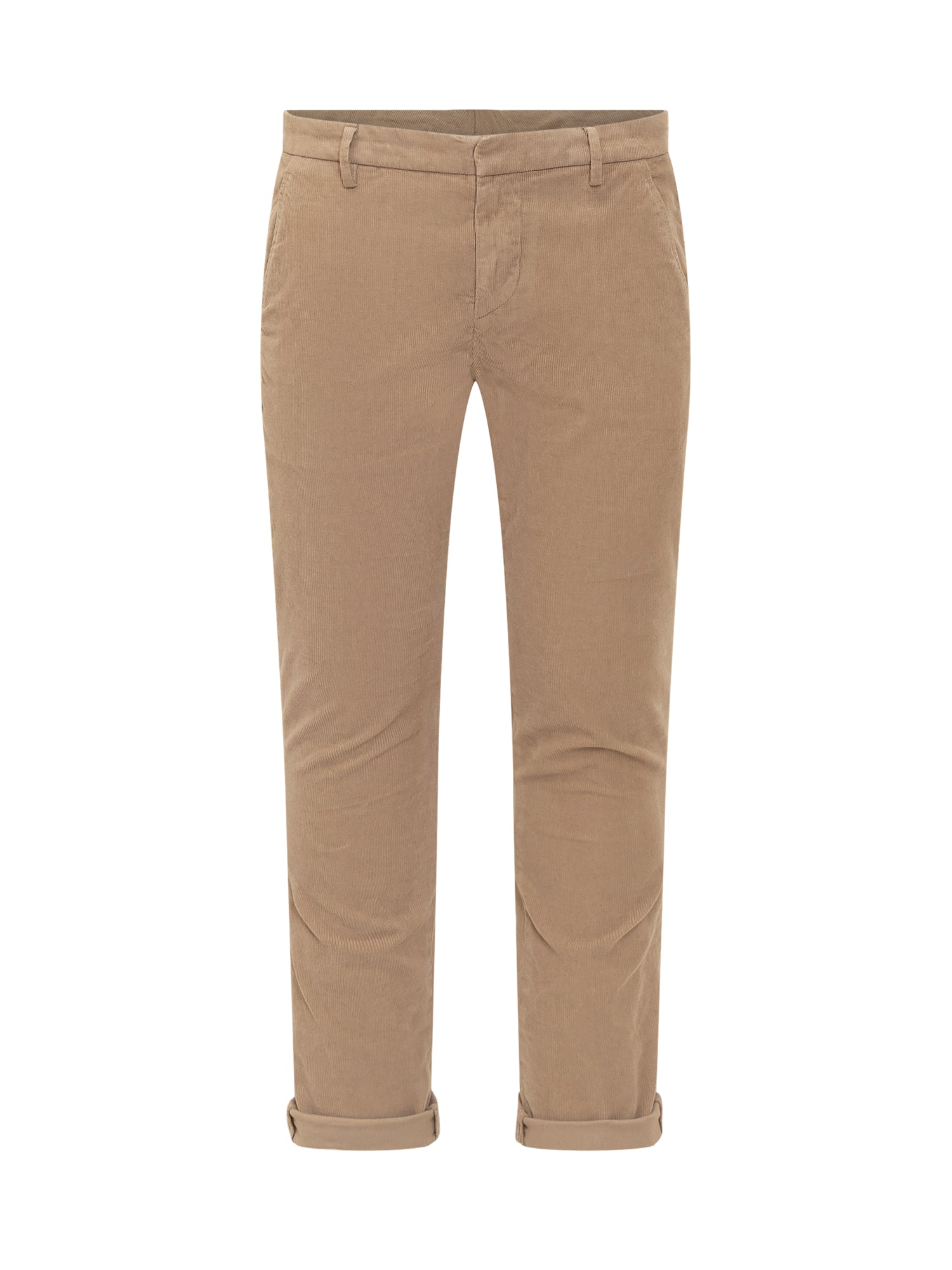 Pantalone con chiusura bottoni e zip. Passanti per cintura. Quattro tasche.