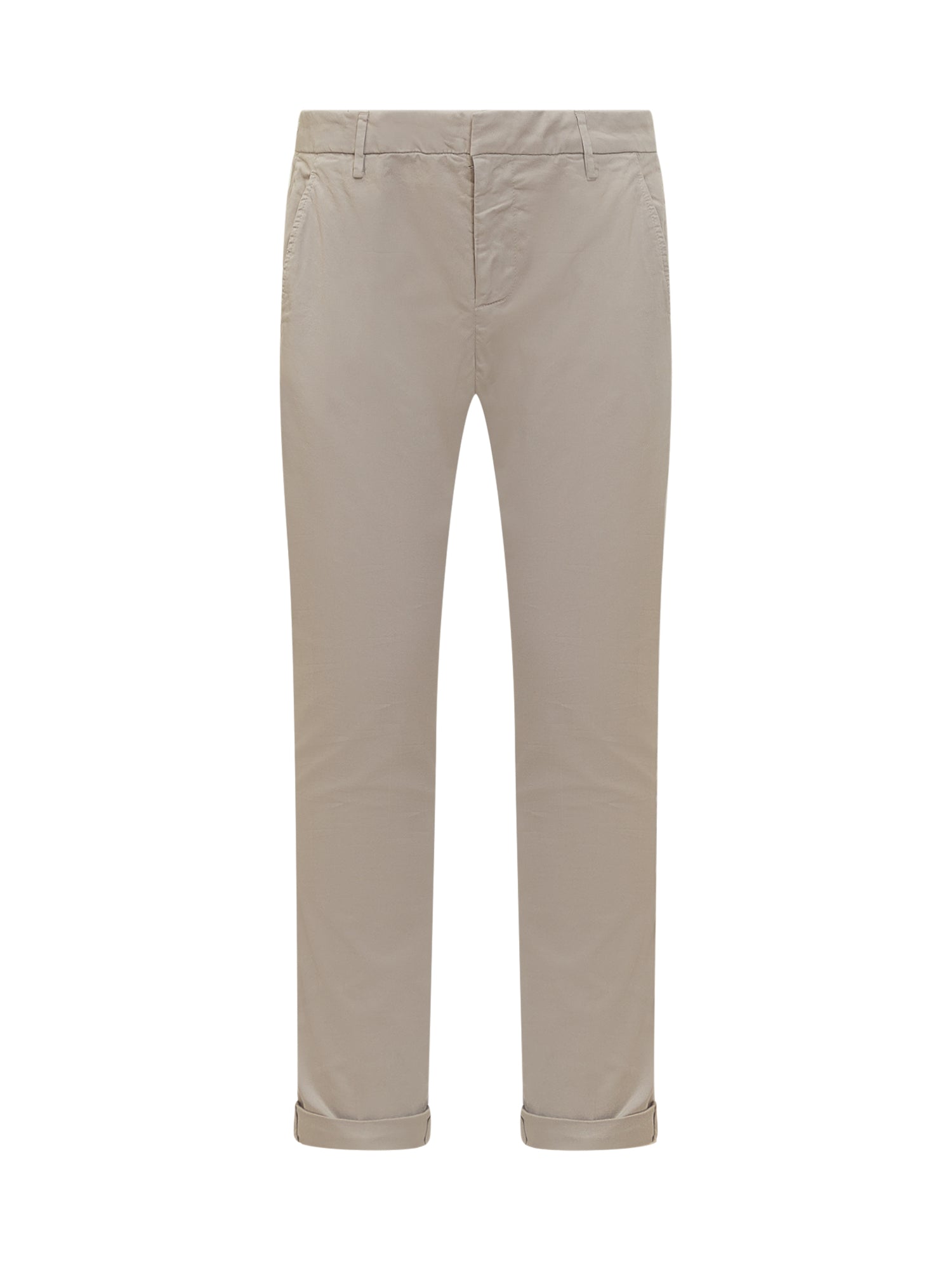Pantalone beige in cotone. Passanti per cintura. Quattro tasche. Chiusura con zip e bottone.