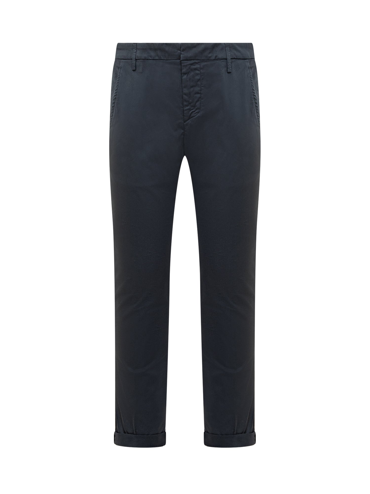 Pantalone blu in cotone. Passanti per cintura. Quattro tasche. Chiusura con zip e bottone.
