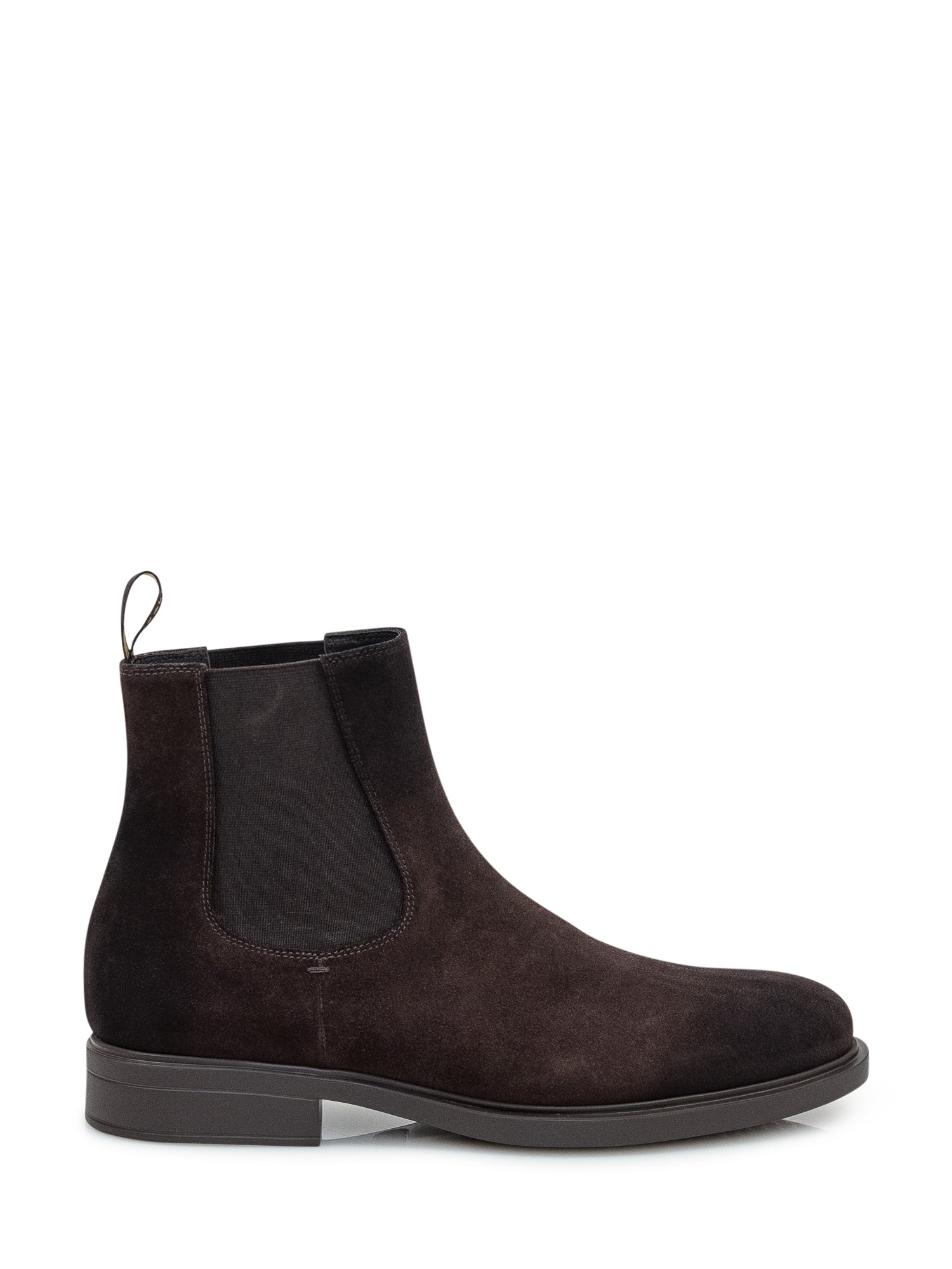 Chelsea boots Doucal's in morbido camoscio marrone con inserti elastici laterali e suola in gomma.