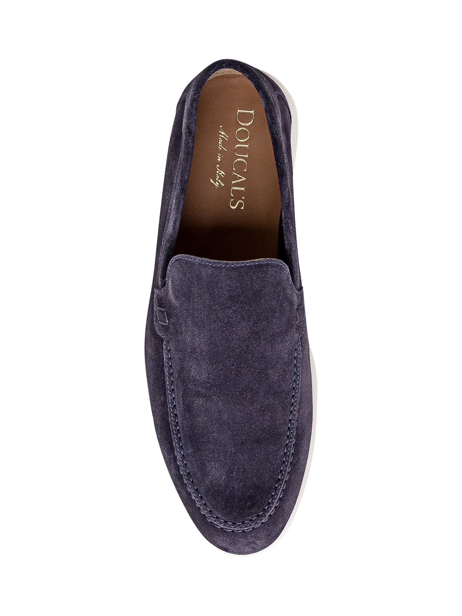 Mocassino blu in pelle scamosciata. Slip-on. Logo sulla suola interna.
