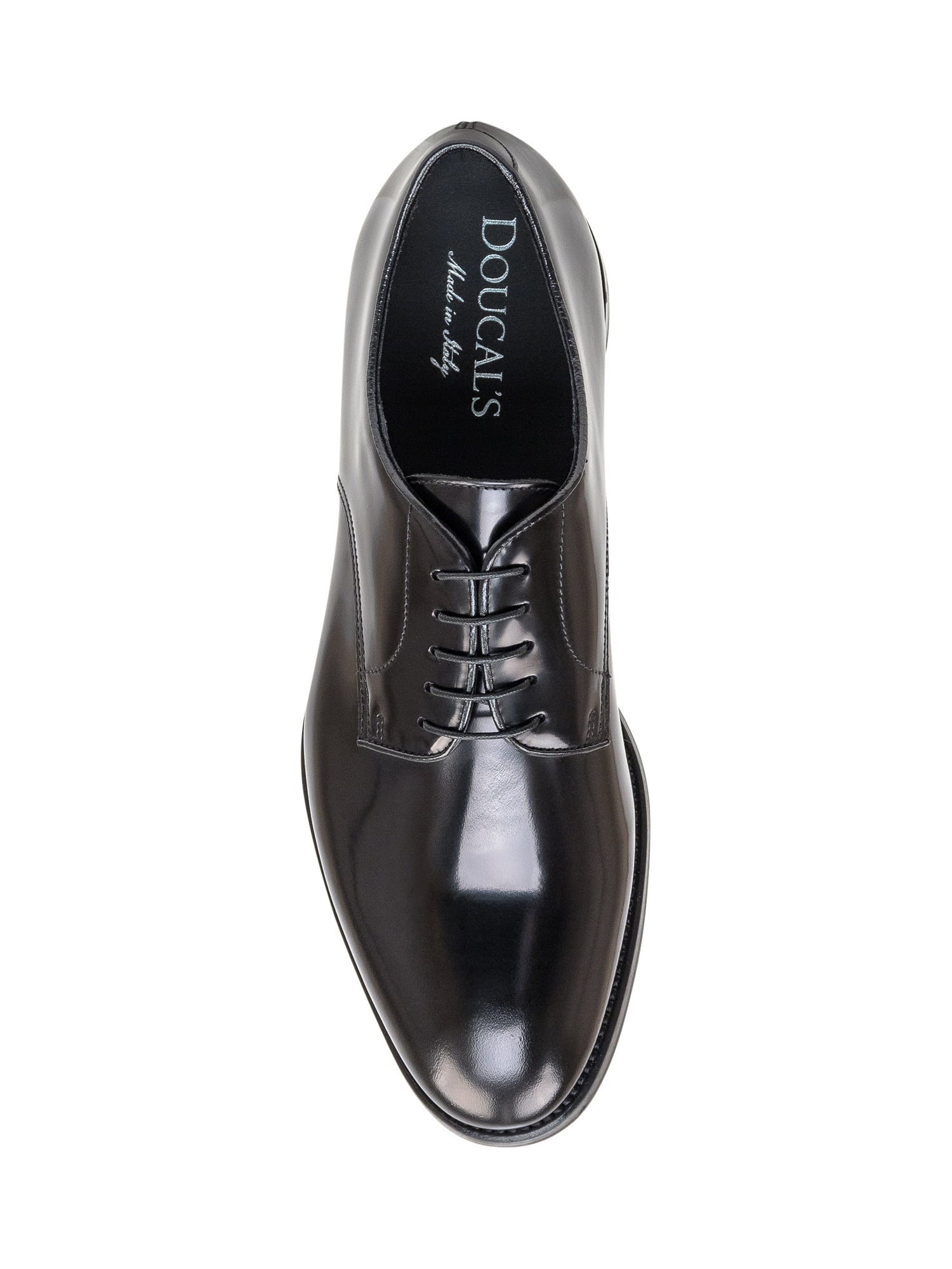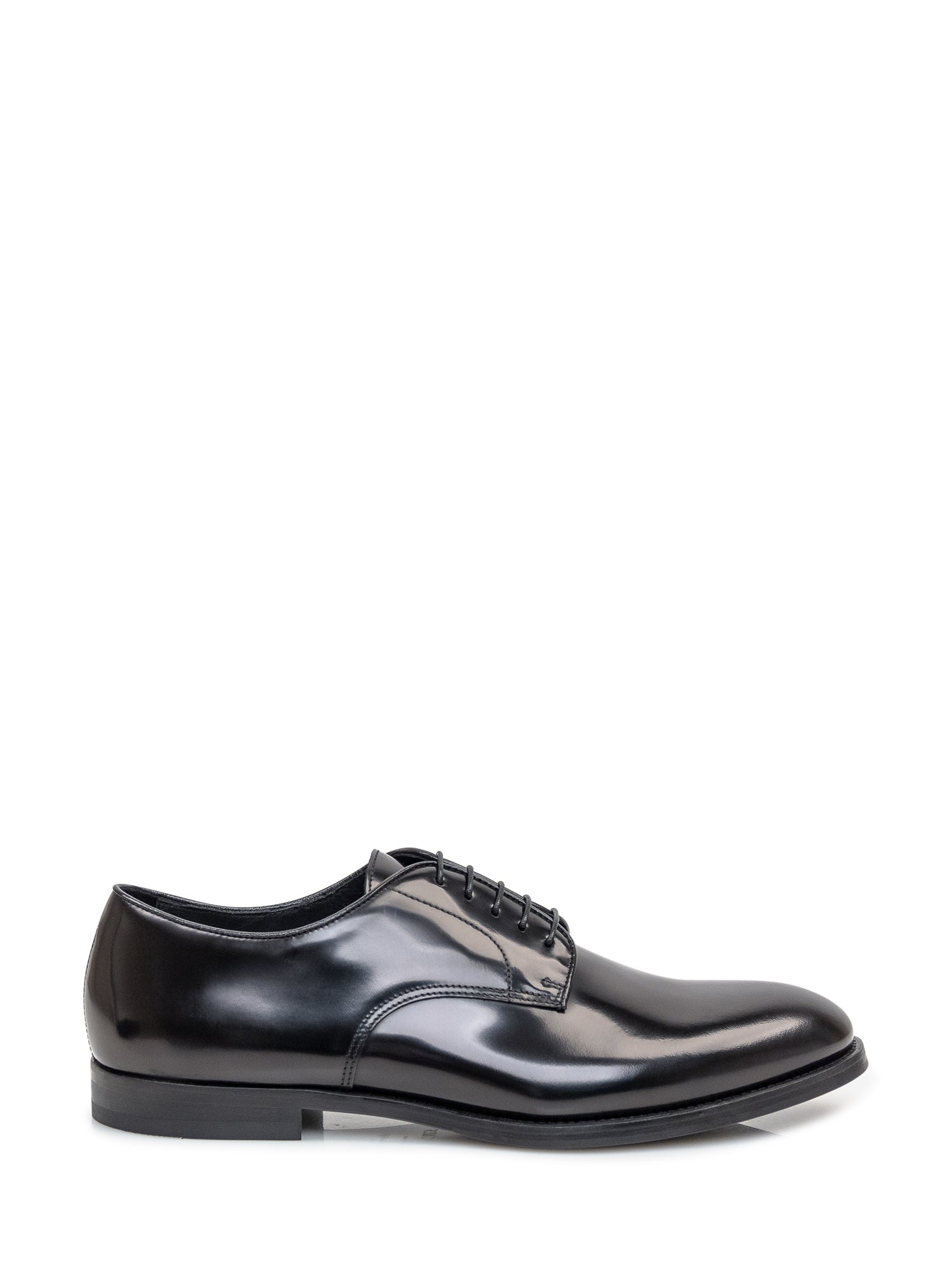 Stringata in pelle nera. Chiusura con lacci. Punta tonda.