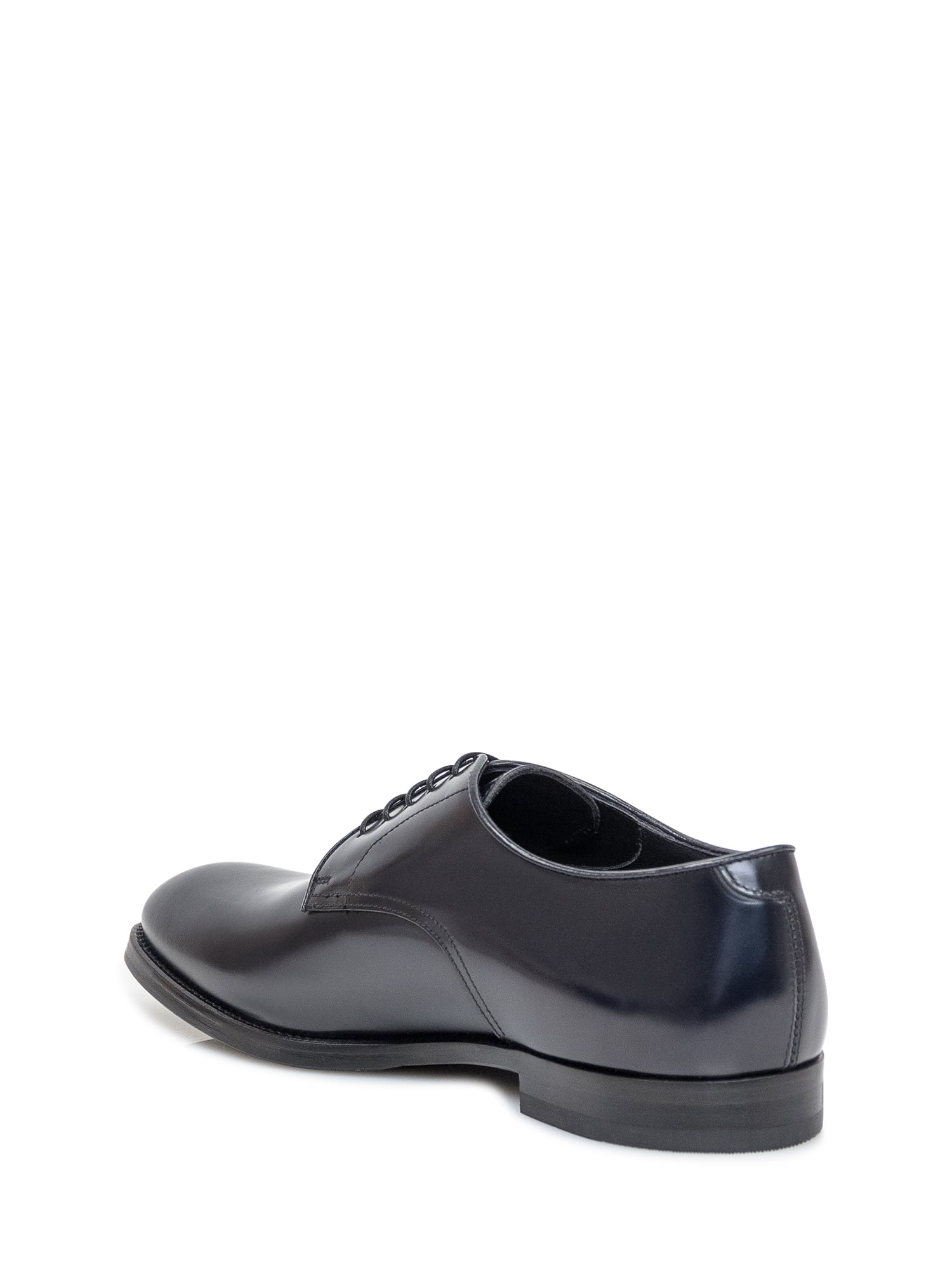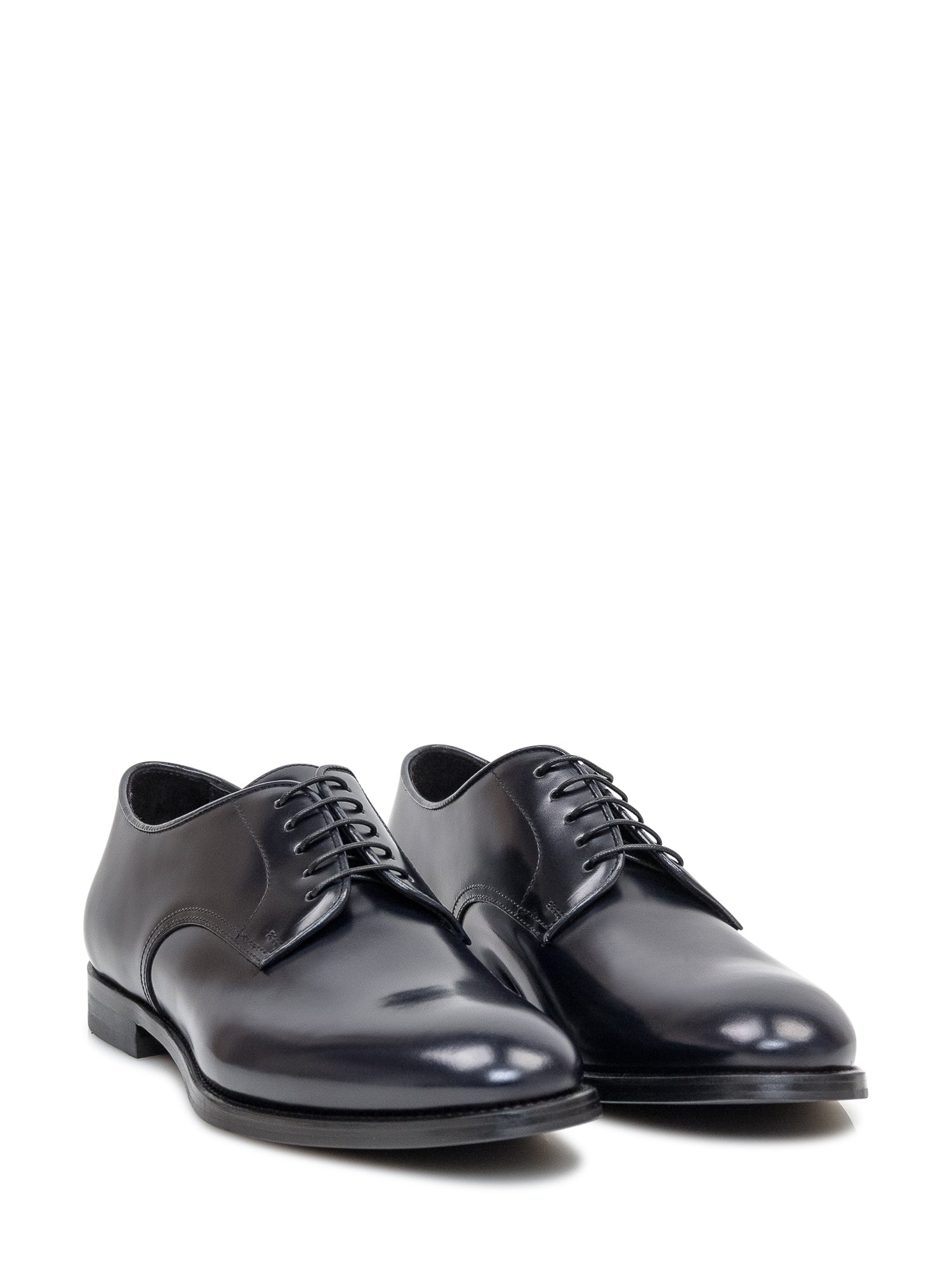 Stringata in pelle nera. Chiusura con lacci. Punta tonda.