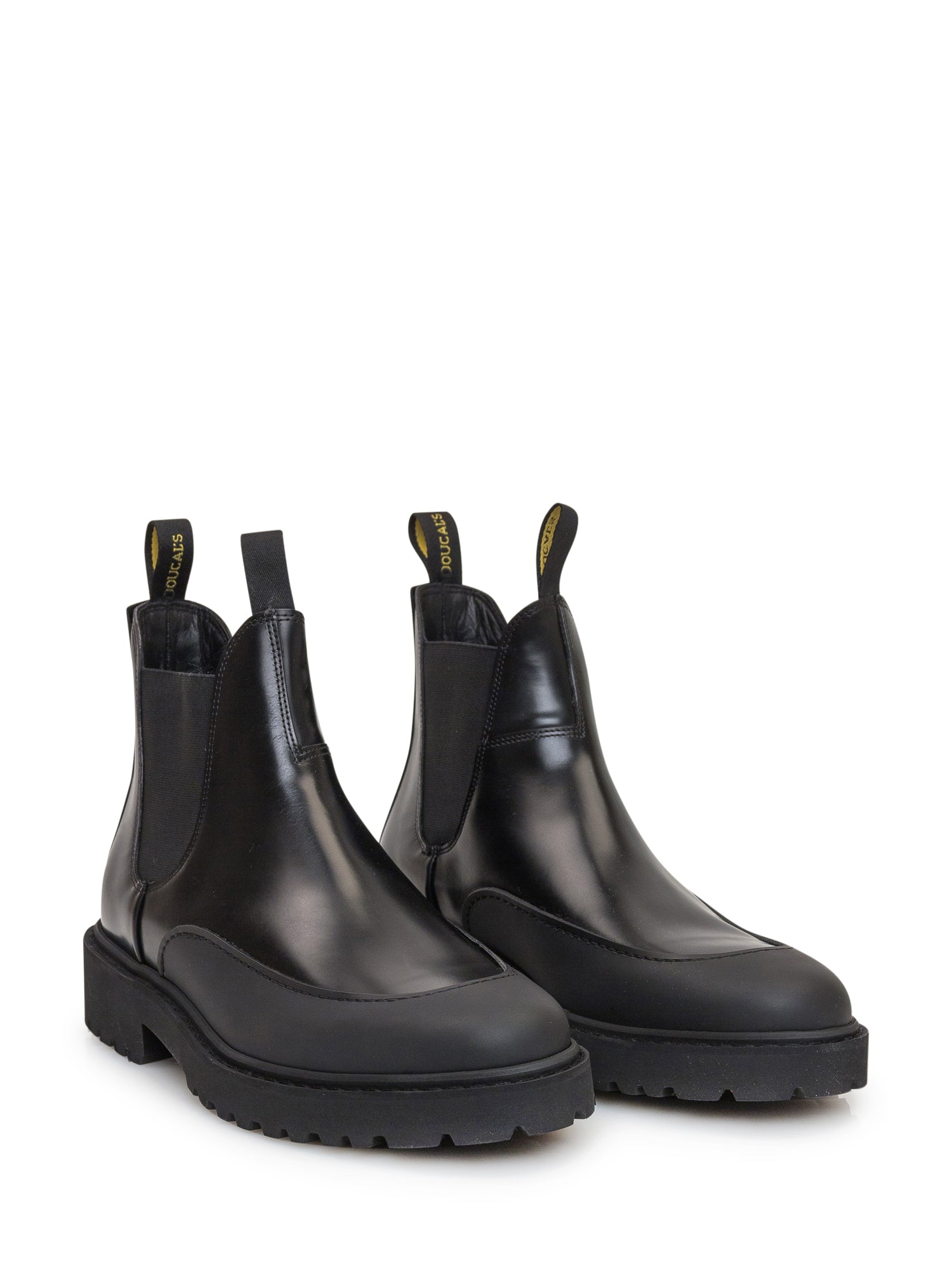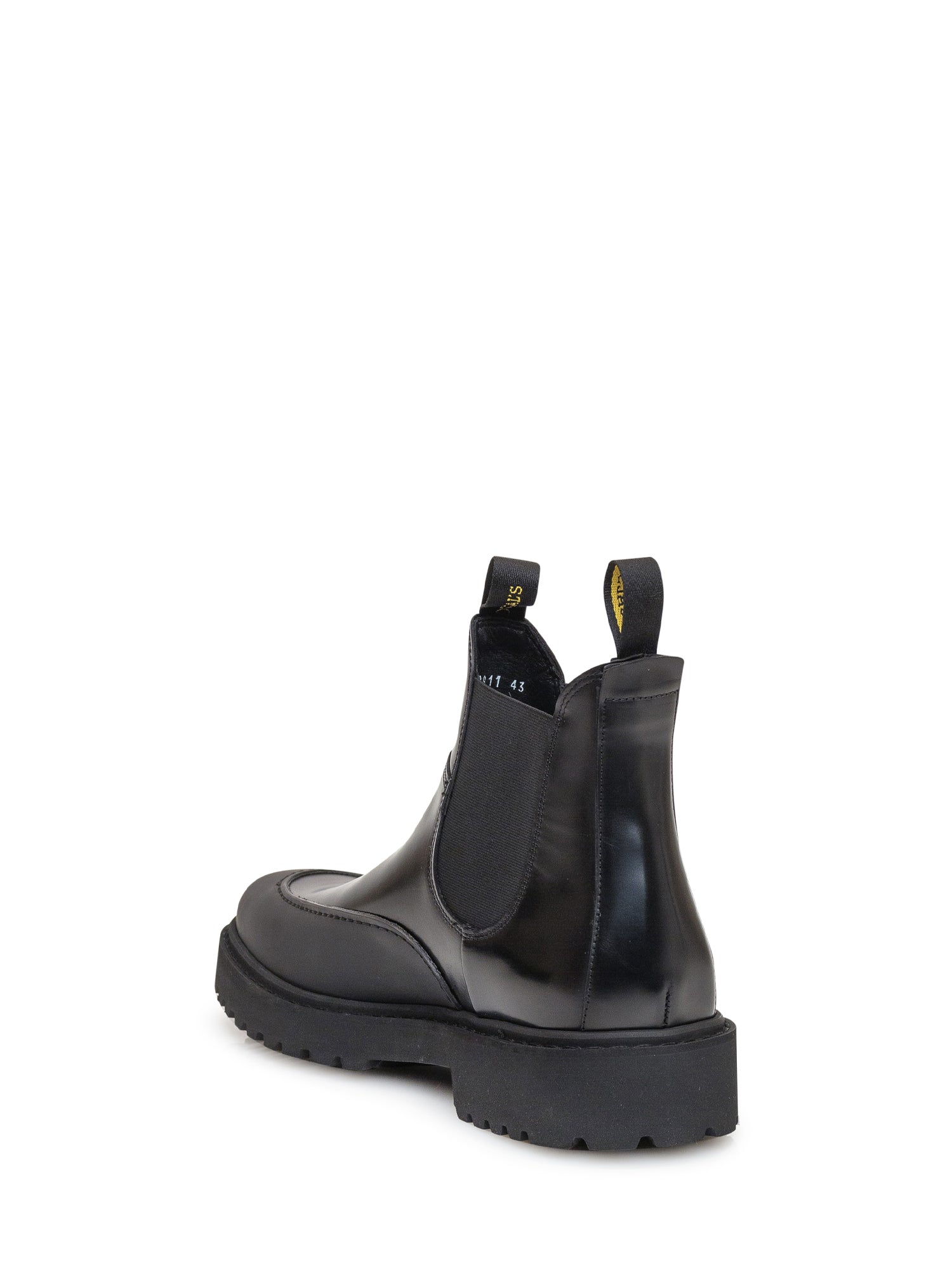 Stivaletto nero in pelle. Inserti elastici laterali. Inserti in gomma.