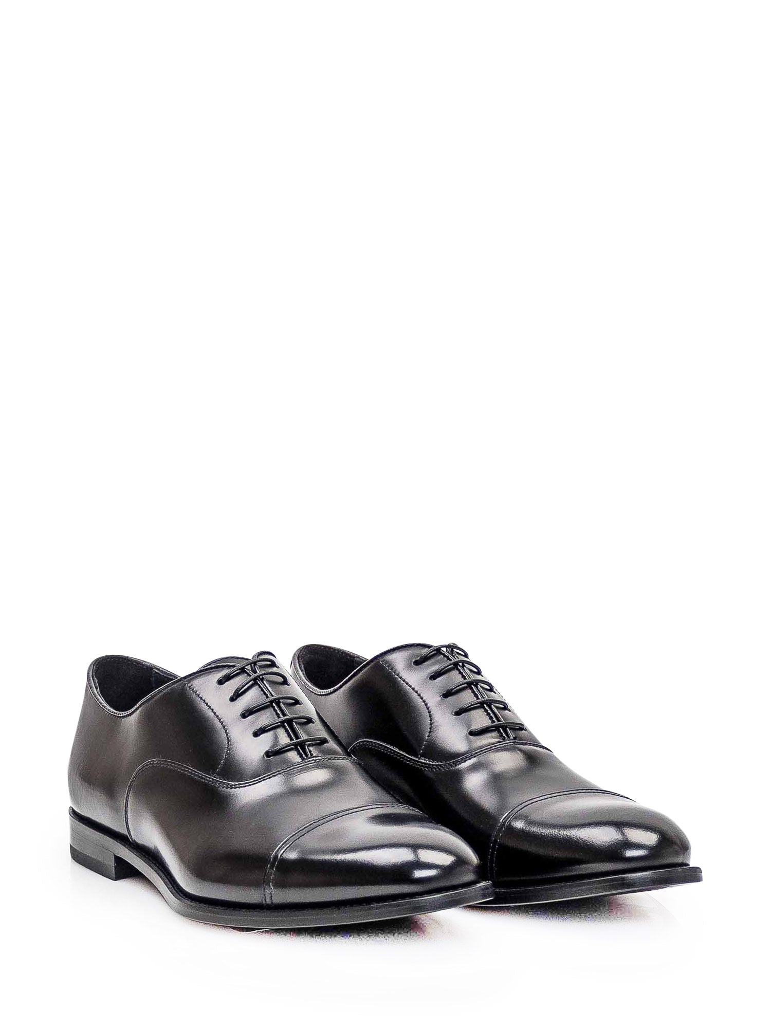 Stringata nera in pelle. Chiusura con lacci. Logo dorato sulla suola interna.