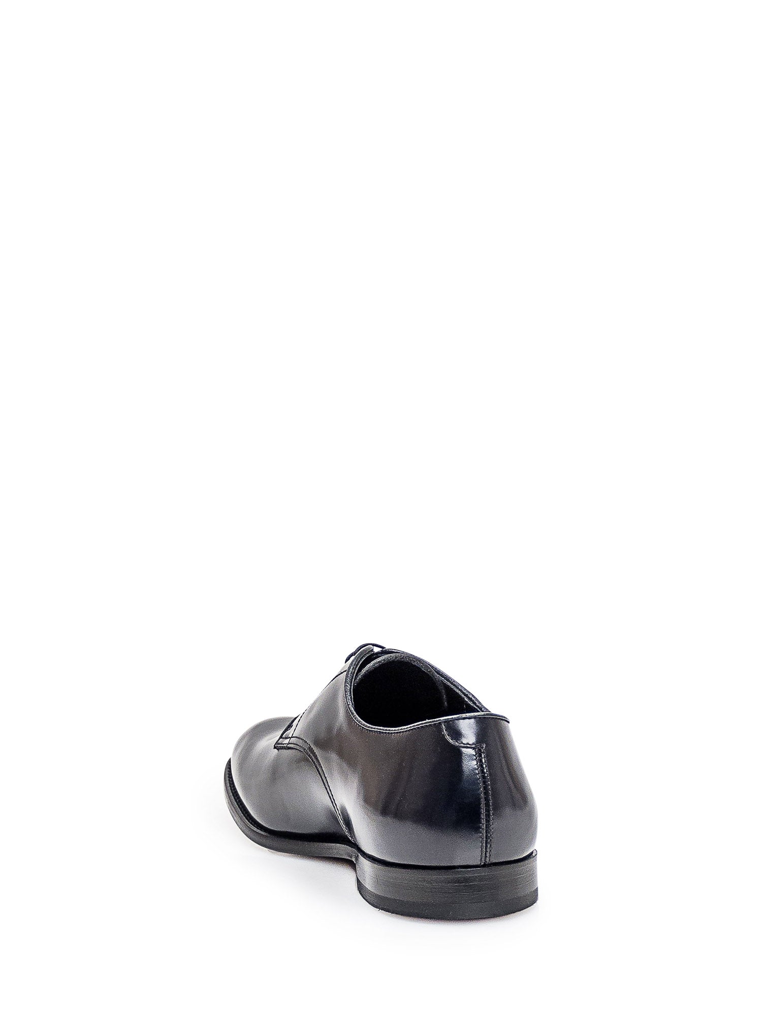 Stringata nera in pelle. Chiusura con lacci. Logo dorato sulla suola interna.