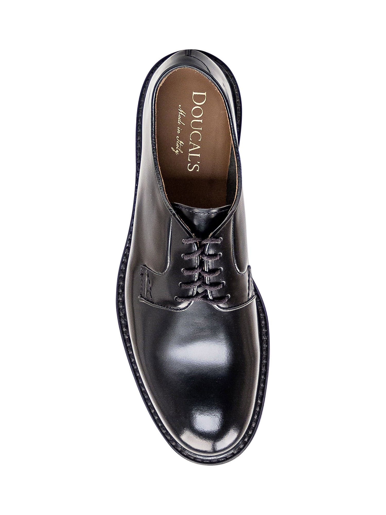 Stringata nera in pelle. Chiusura con lacci. Logo dorato sulla suola interna.